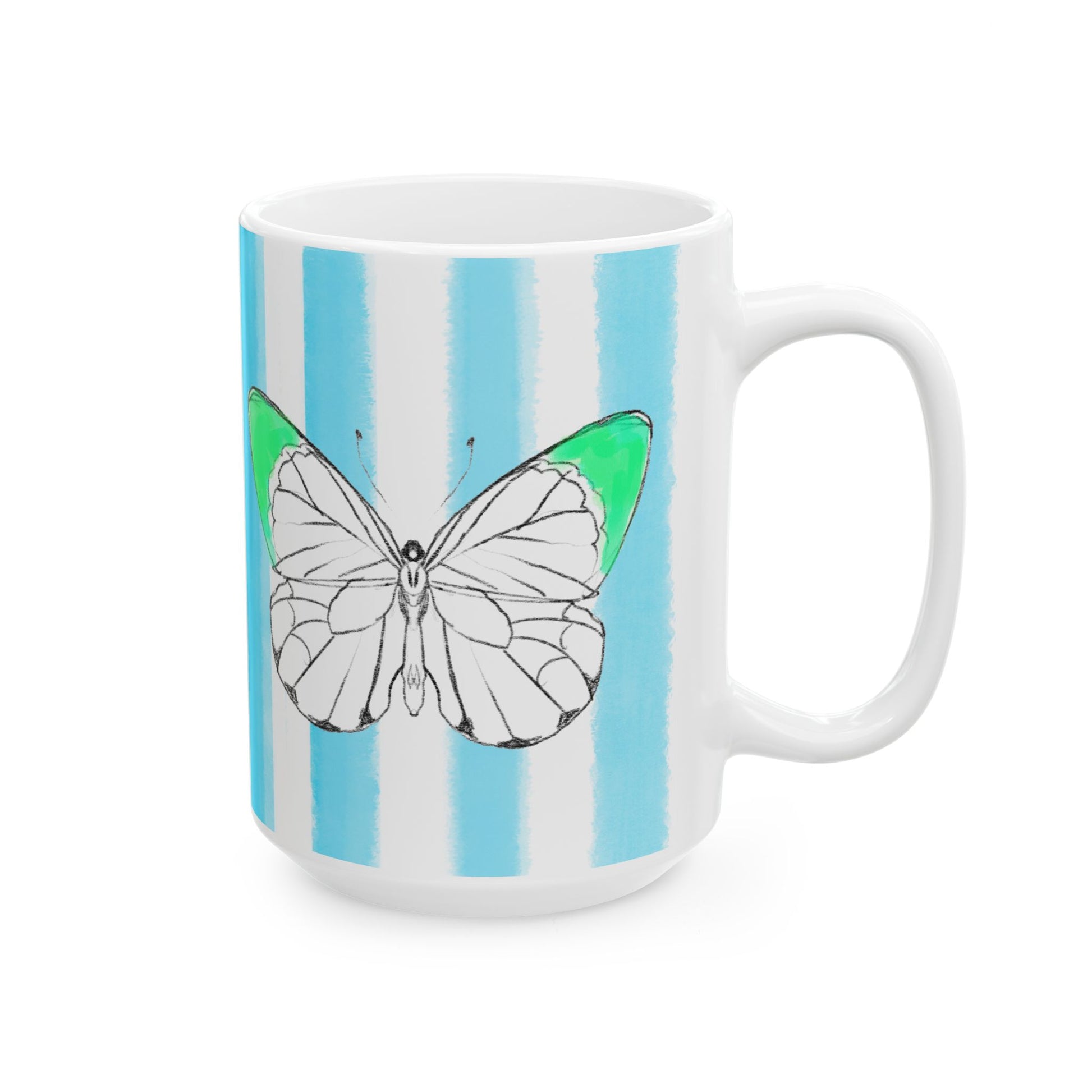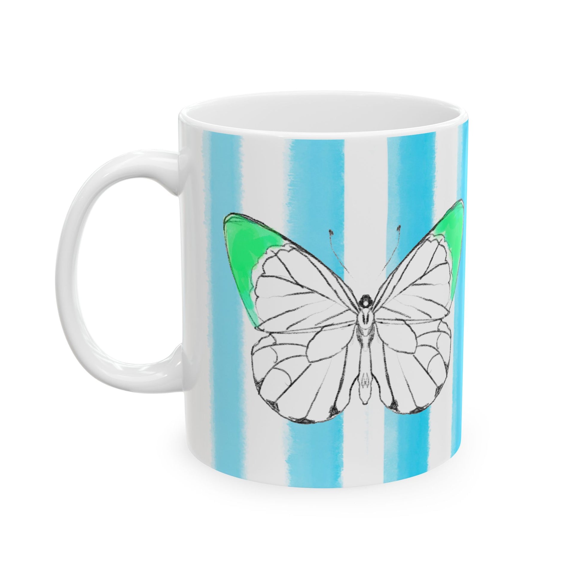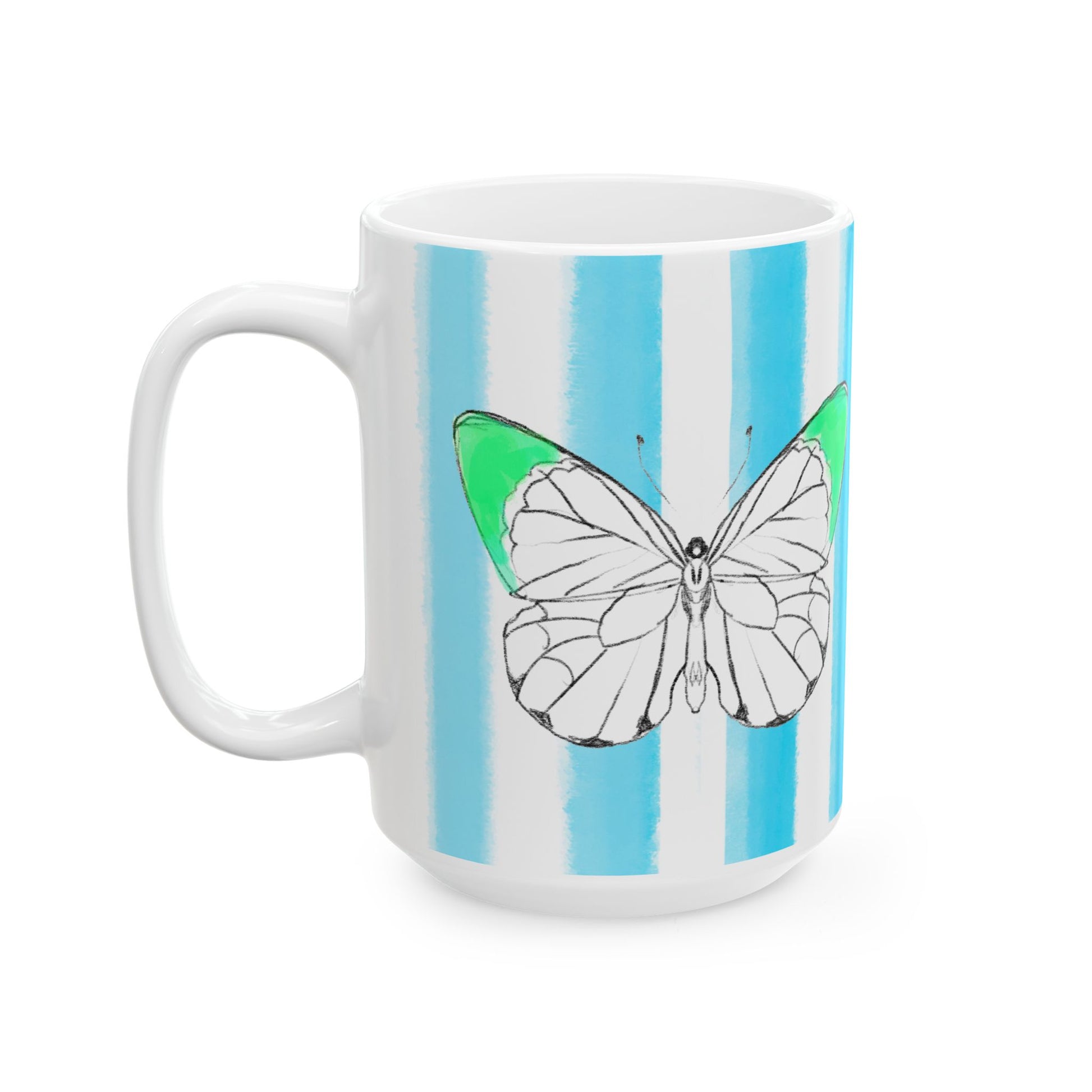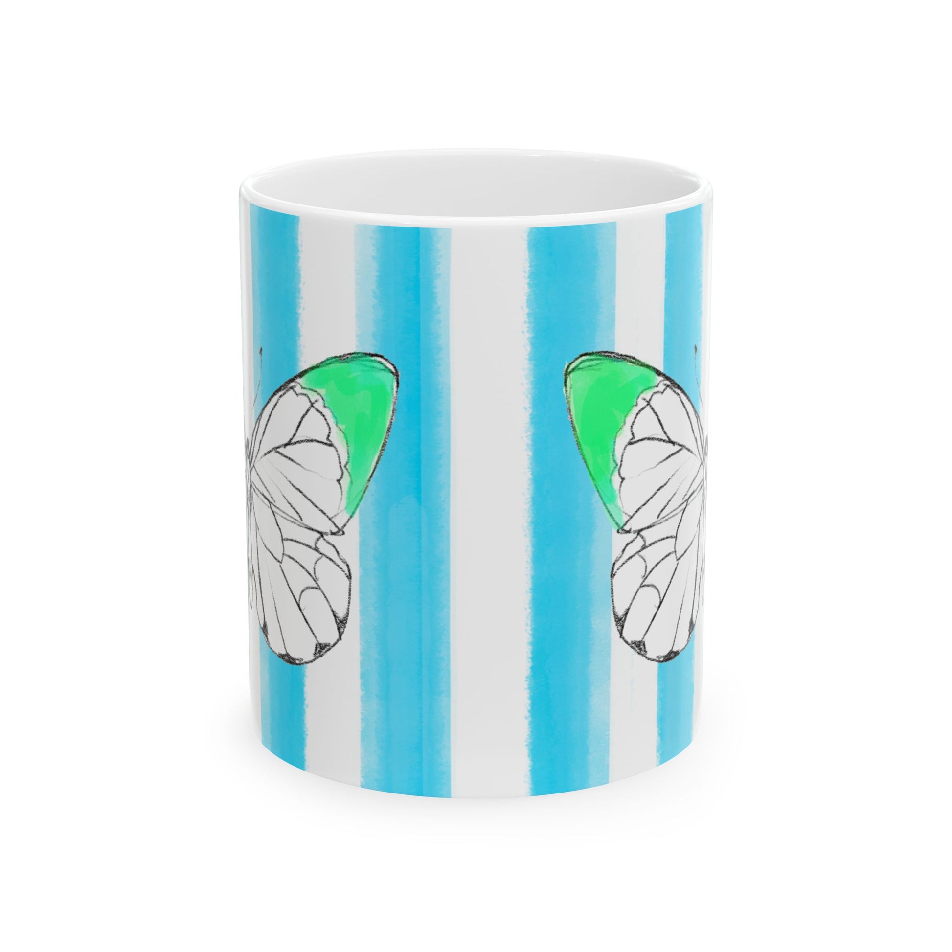 Mugs Butterfly Stripes Flutter in Light Green with Aqua Stripes