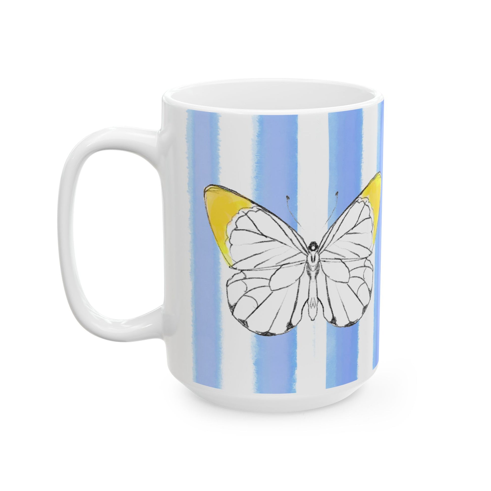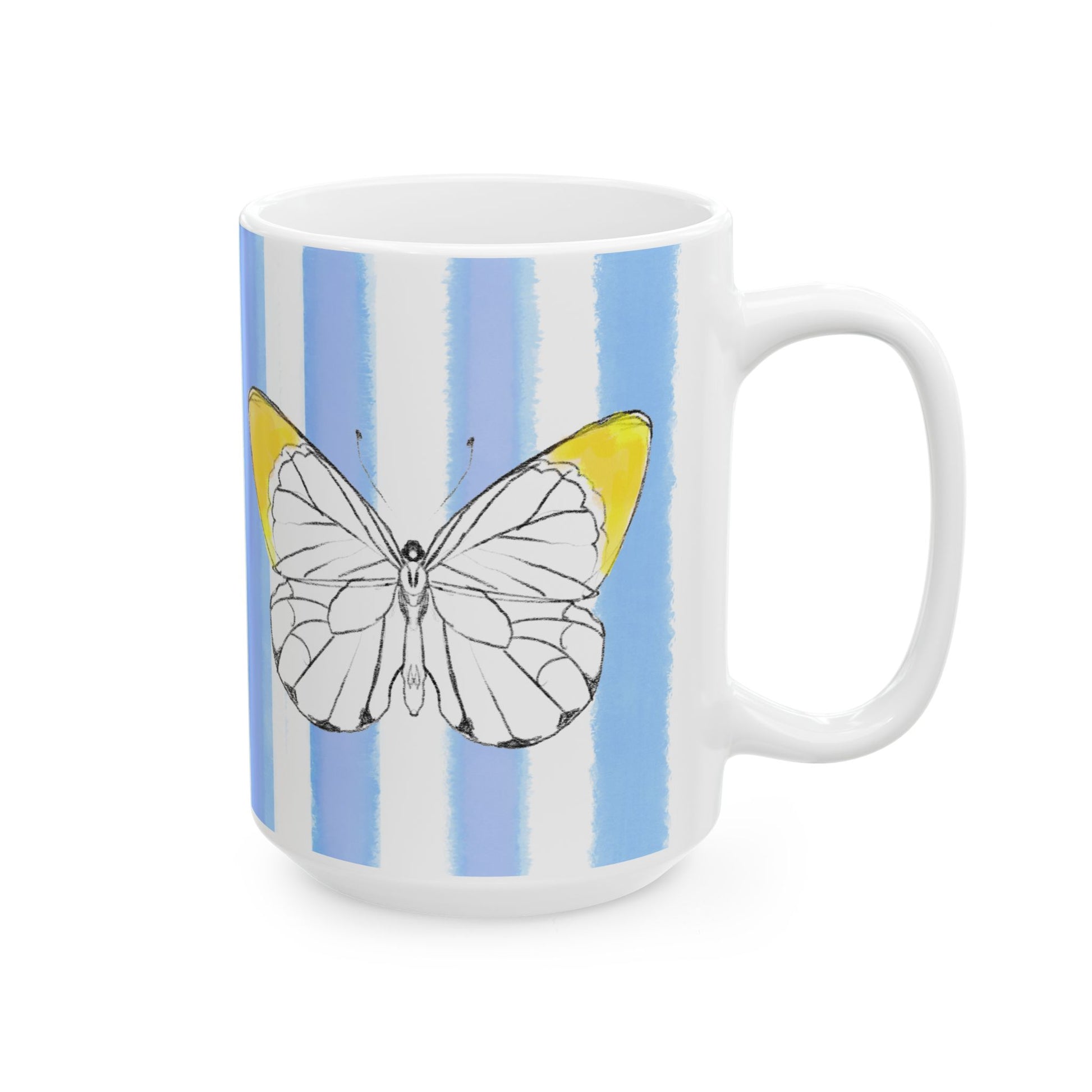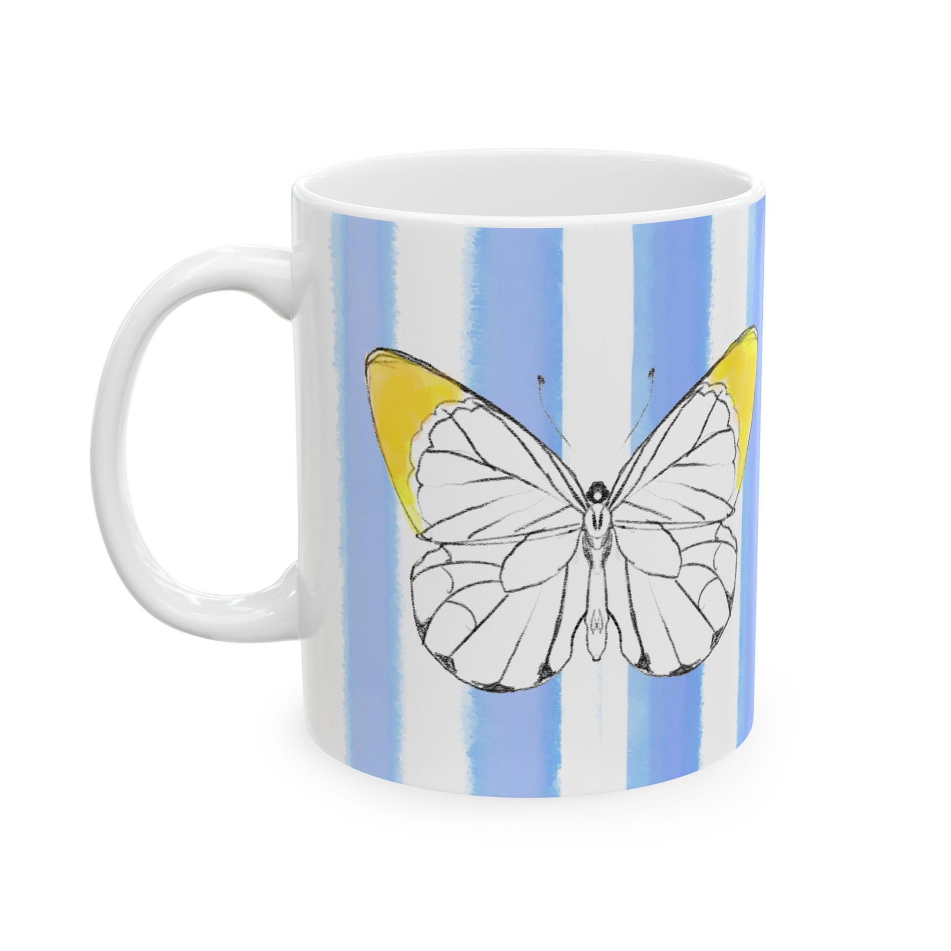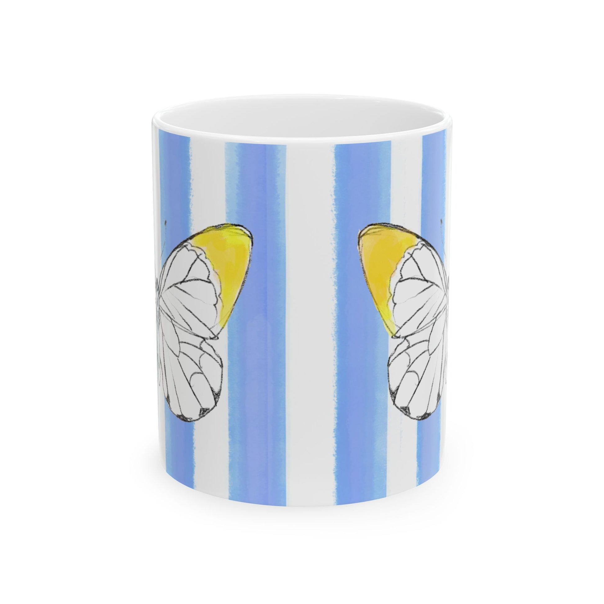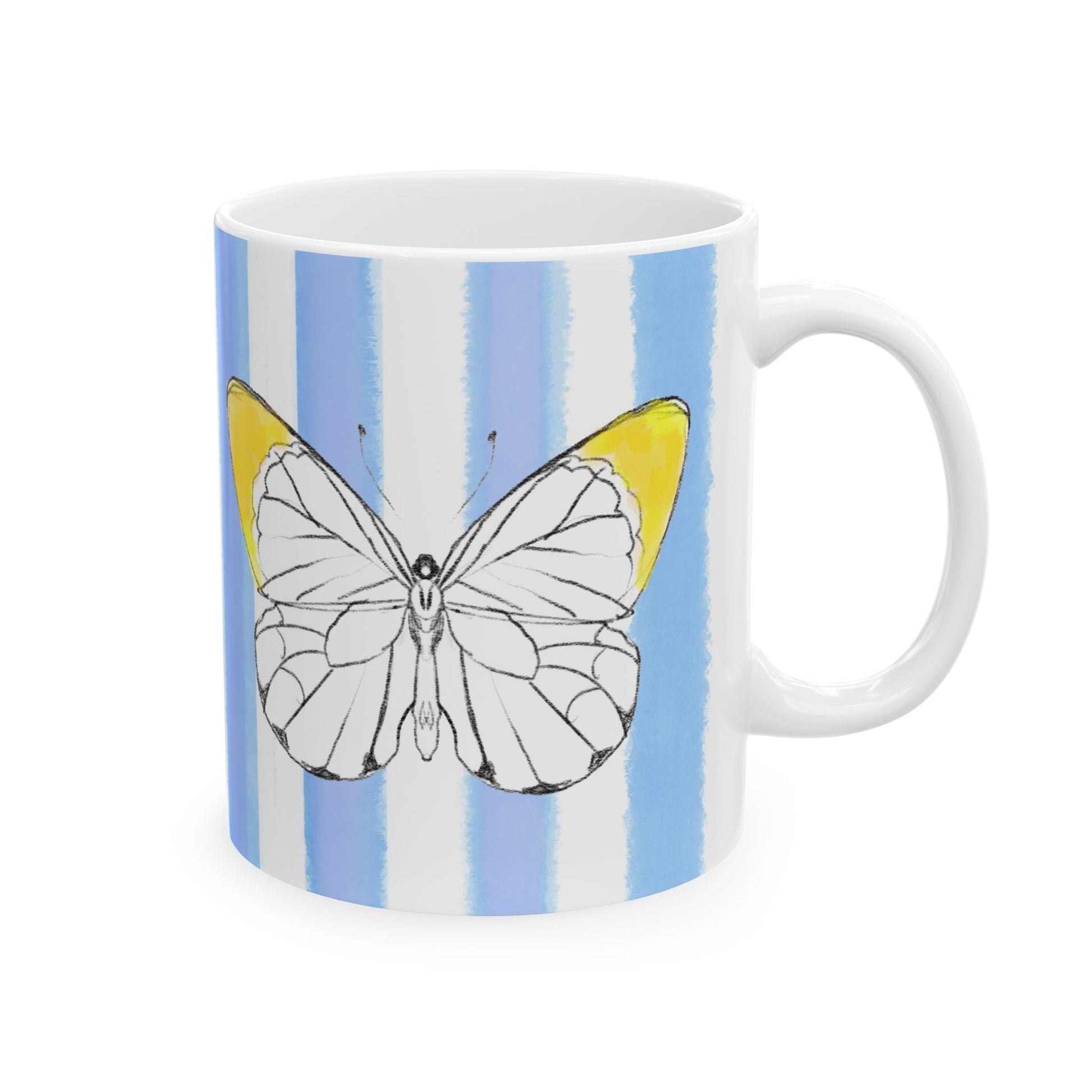 Mugs Butterfly Stripes Flutter in Yellow with Periwinkle Blue Stripes