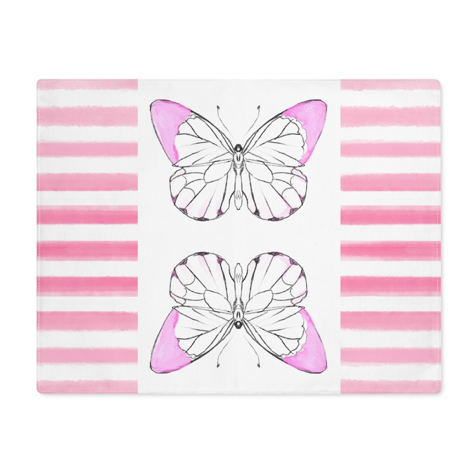 Butterfly Chroma Stripe, Placemat, 1pc, Pink, Cotton, ( Background Color Creamy White)