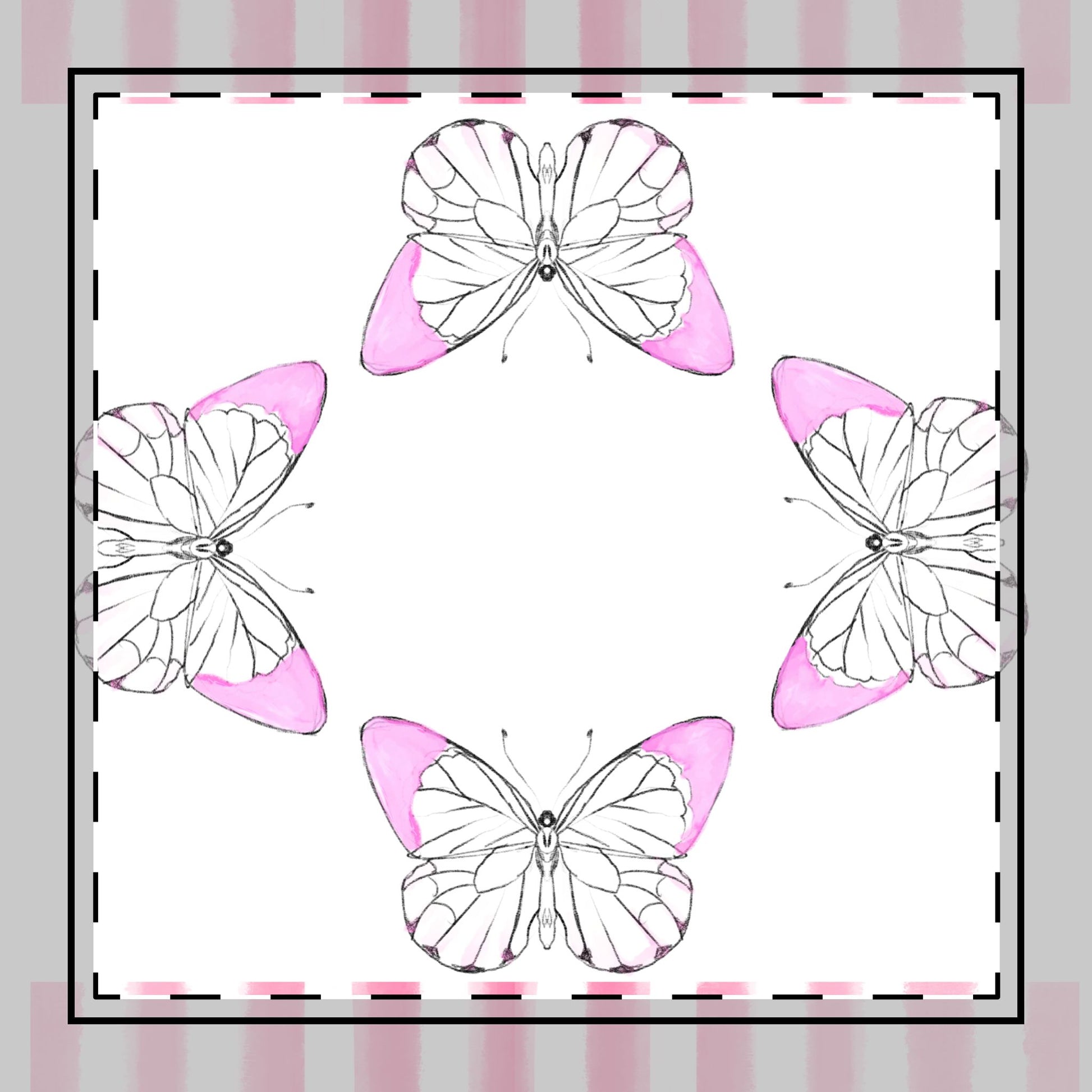 Butterfly Chroma Stripes, Cotton Twill Napkin, Pink , Fabric Background Creamy White