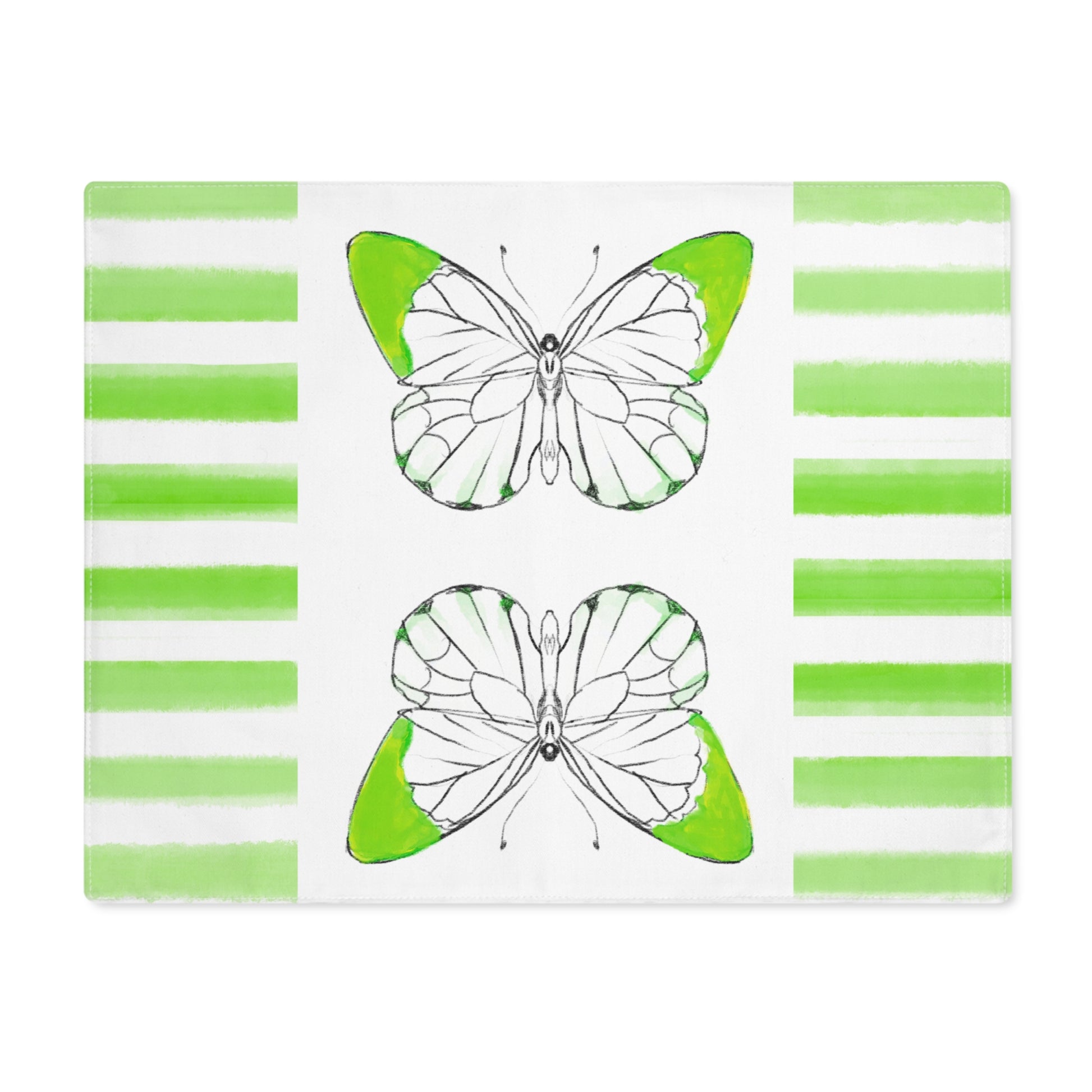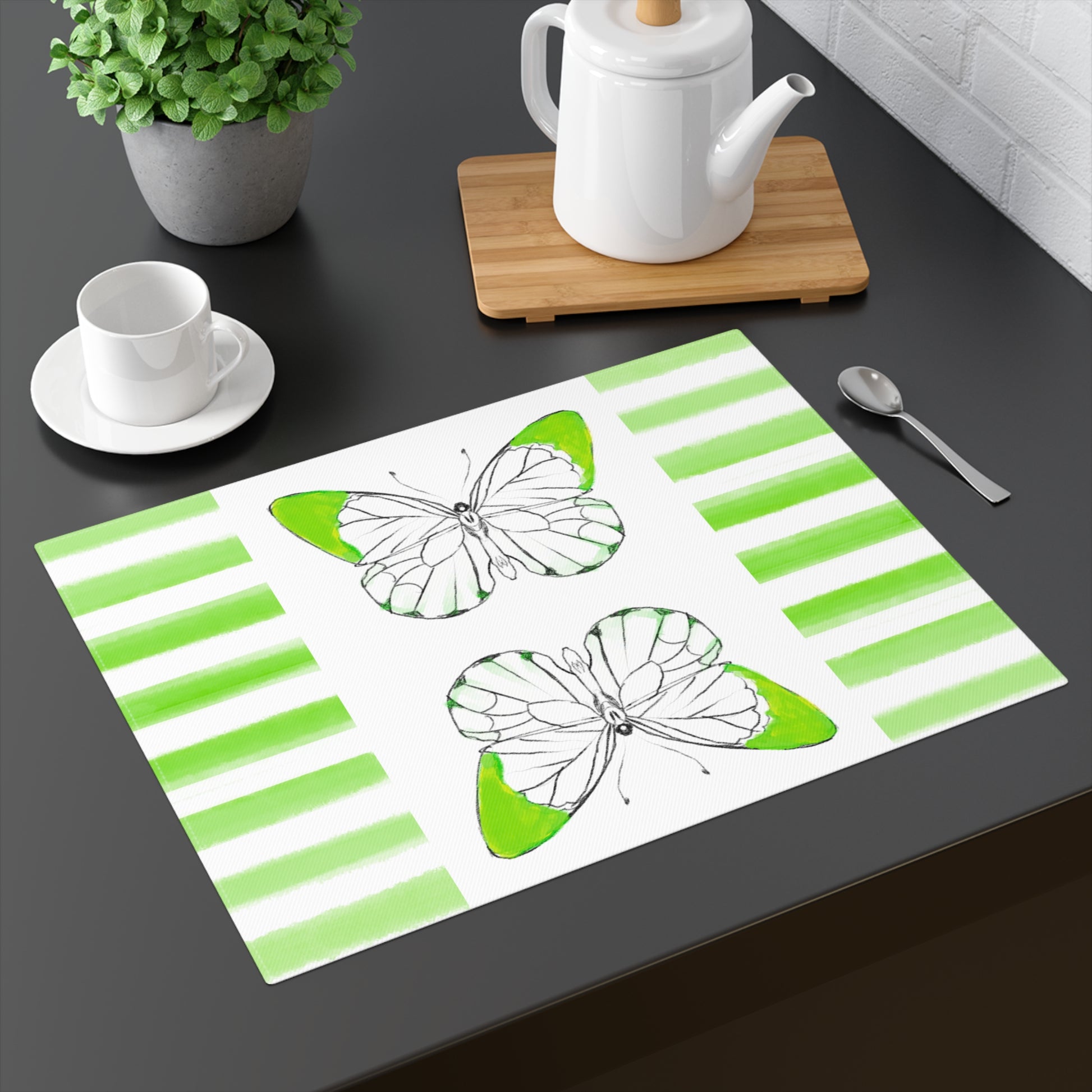 Butterfly Chroma Stripes Cotton Twill Placemat, Yellow/Green, (Fabric Background Creamy White )