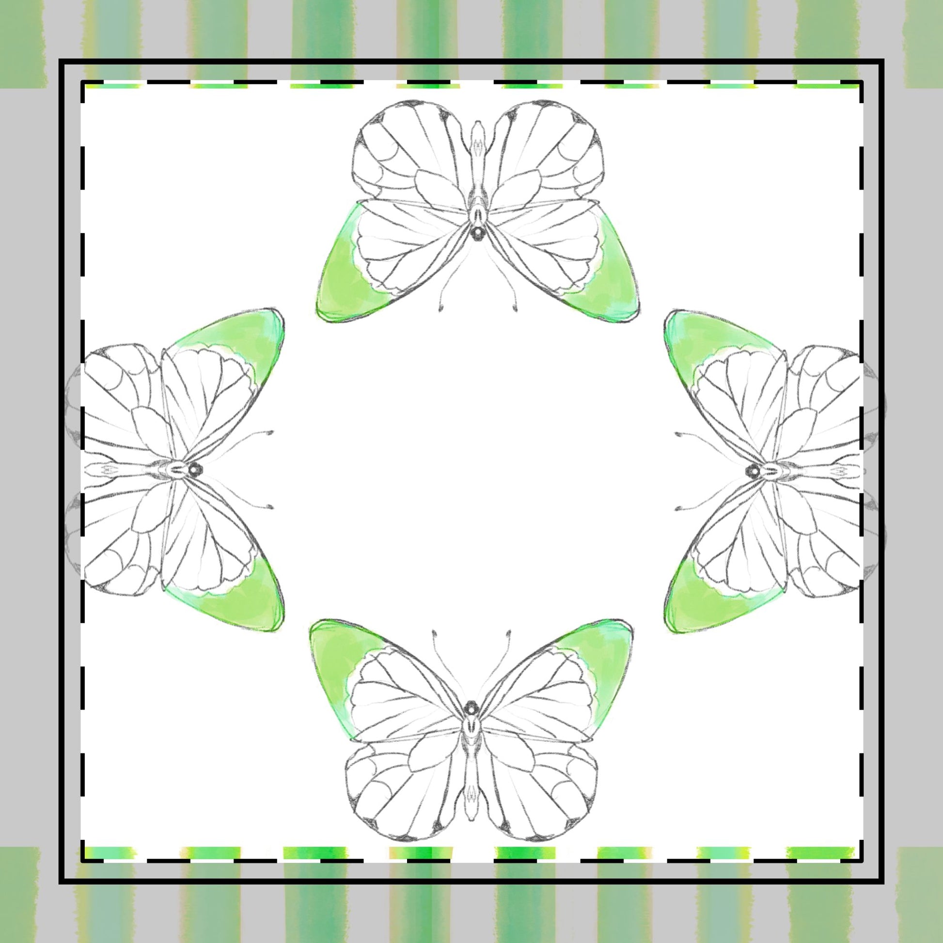 Butterfly Chroma Stripes Poly Twill Napkin, Darker Green, Fabric Background Bright White