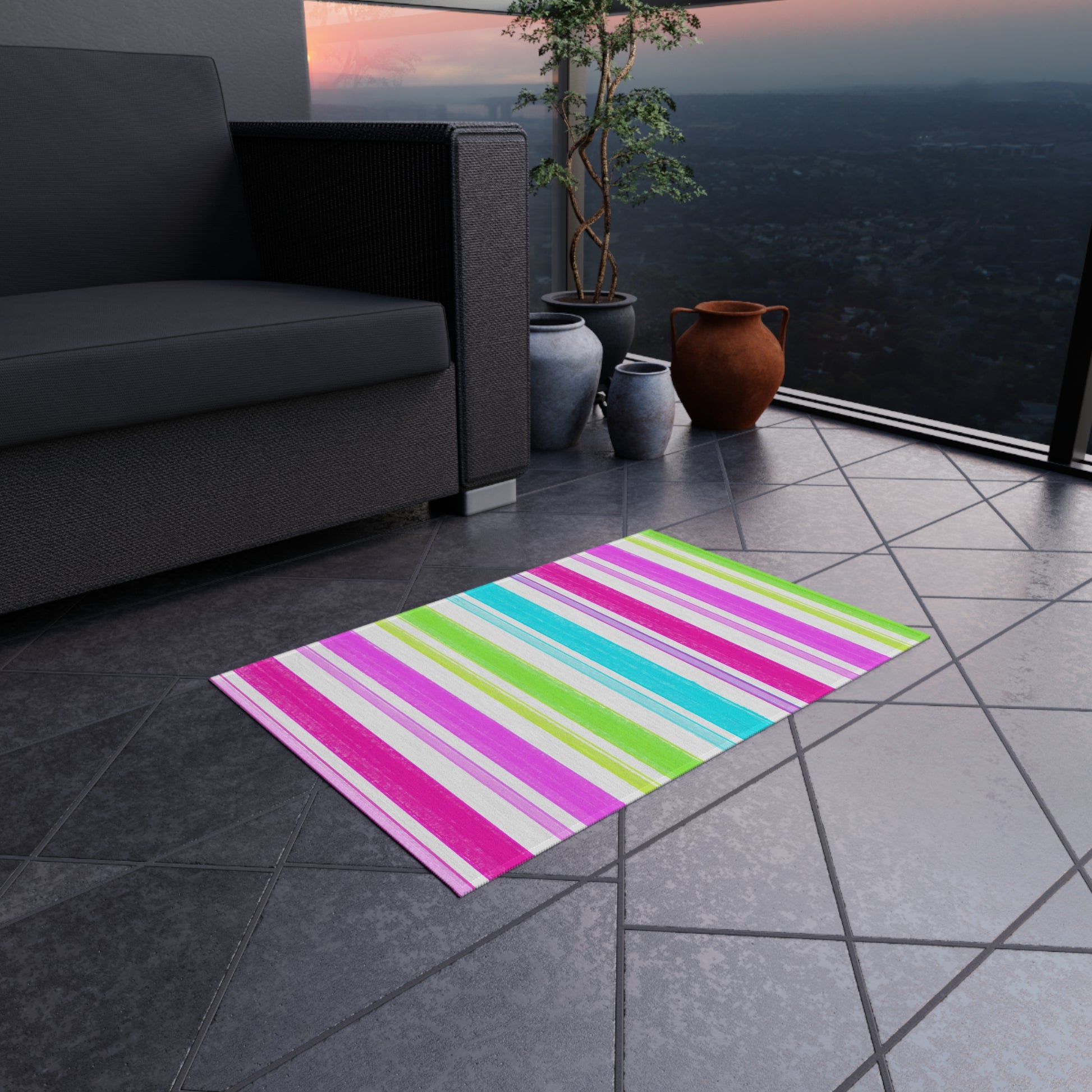 Butterfly Flutterstripe Outdoor Rug , Pinks, Greens, Aqua