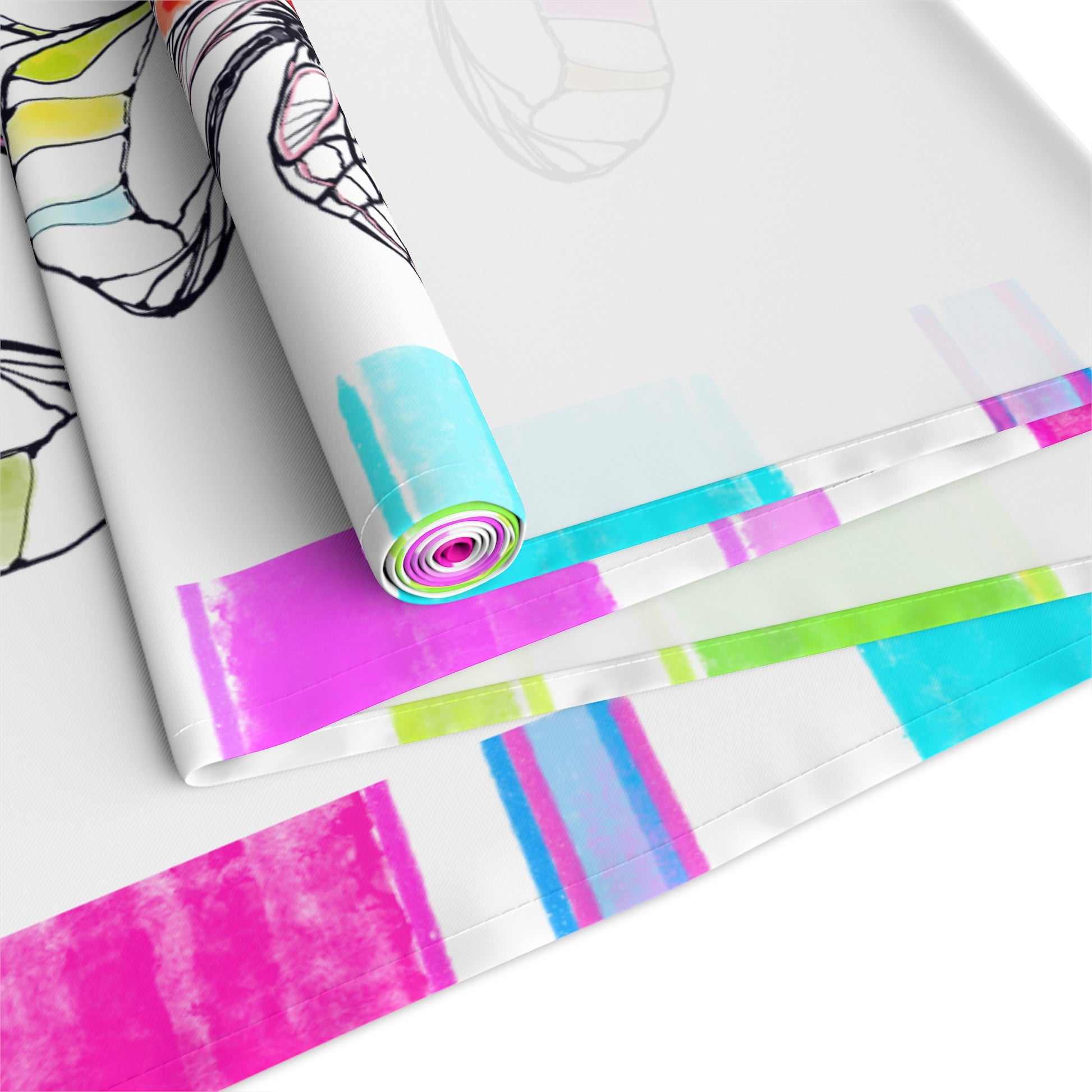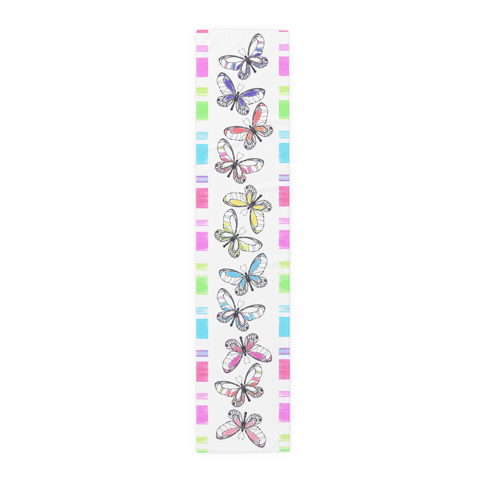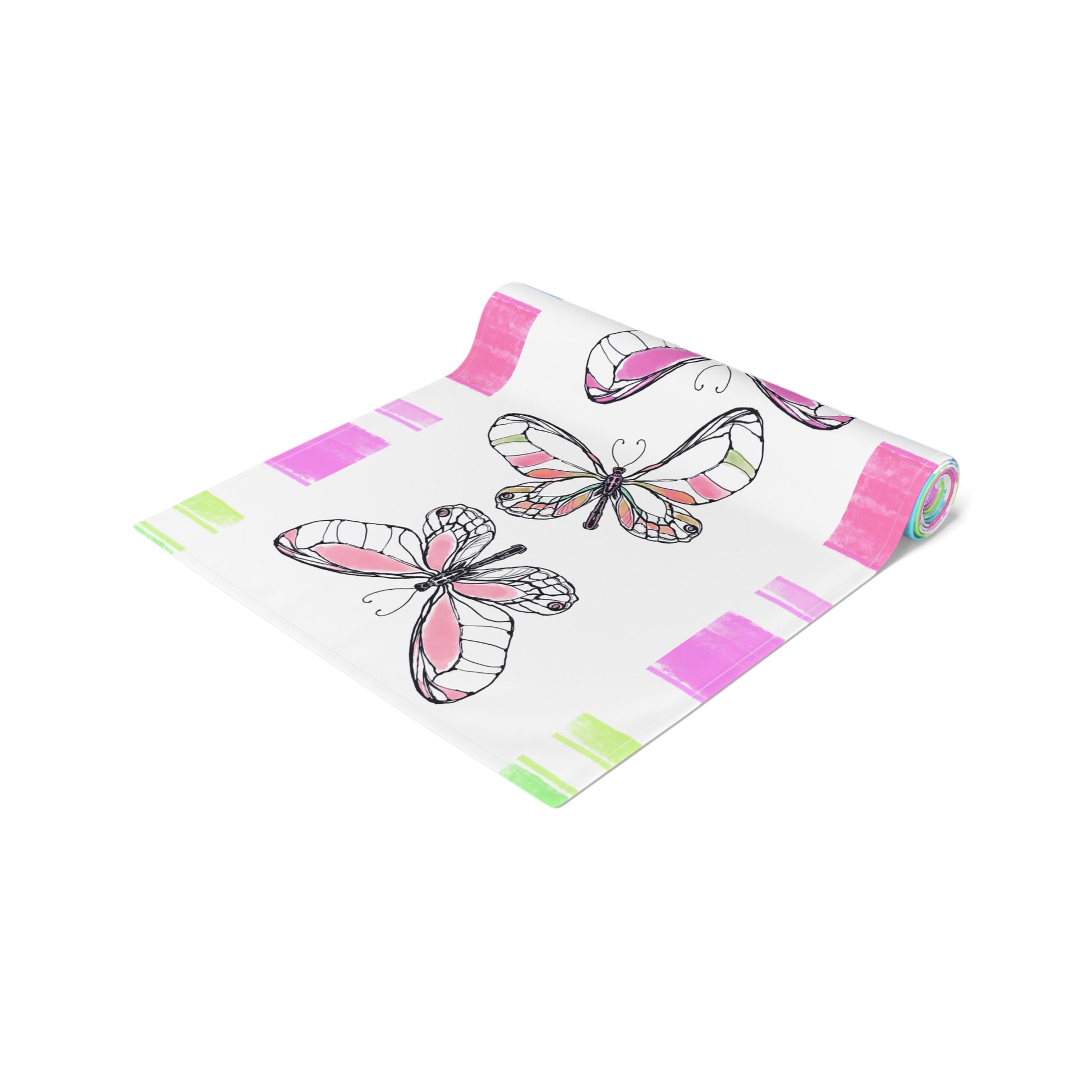 Transform your dining space with a stylish and artful table runner from Periwinkles Design! Hand-designed by local artists who adore color, this runner16"x72", features Joel’s playful butterflies fluttering down the center, beautifully framed by Lois’ watercolor stripes—an explosion of whimsical expression for your table.