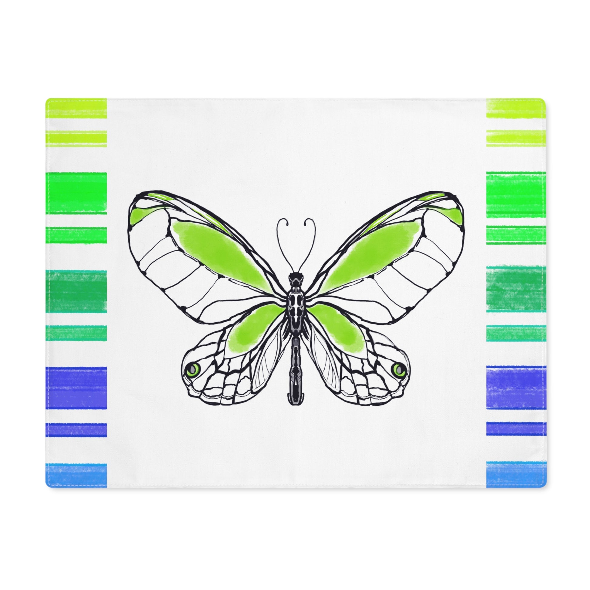 Butterfly Flutterstripe with Multi-color Stripe Border, Cotton Placemat, Yellow/Green, Fabric Background Creamy White