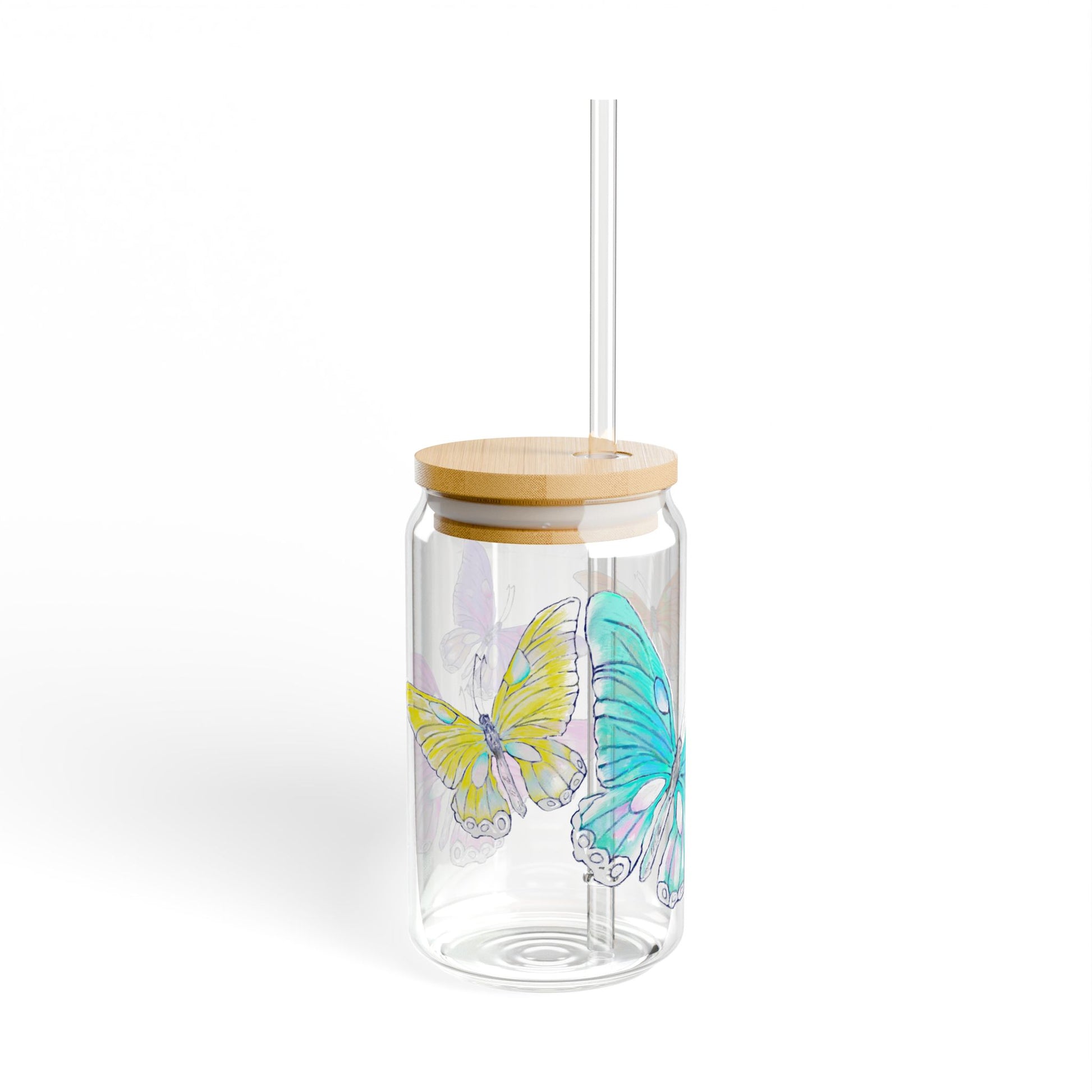 Butterfly Swing, Largest Butterfly is Aqua, Sipper Glass, 16oz, Choose With or Without lid