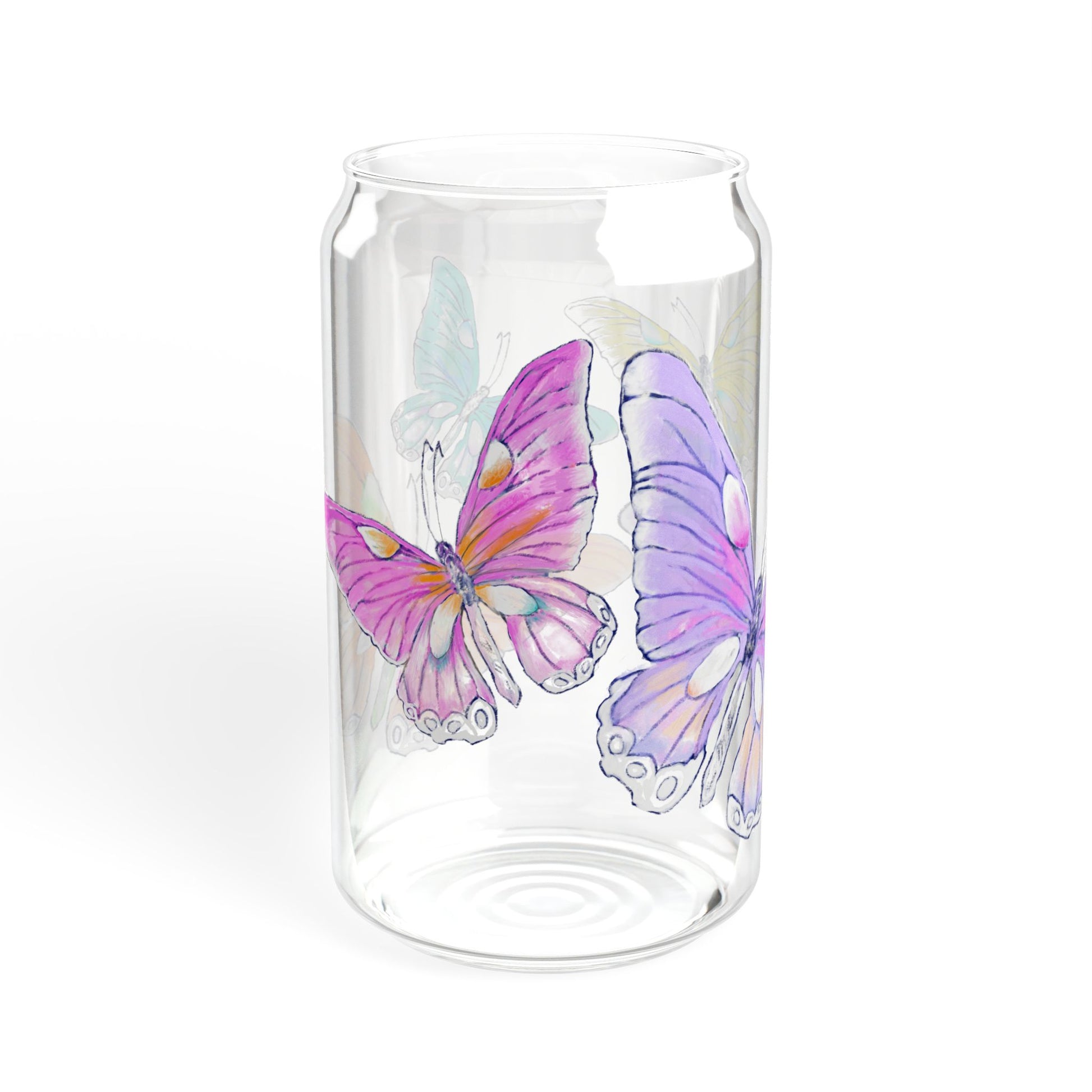 Butterfly Swing, Largest Butterfly is Lilac, Sipper Glass, 16oz, Choose With or Without lid