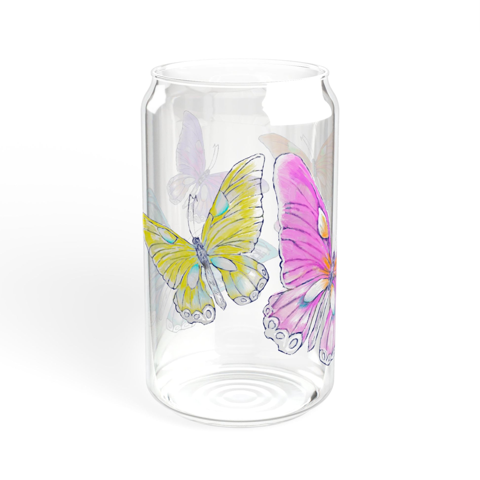 Butterfly Swing, Largest Butterfly is Pink, Sipper Glass, 16oz Choose With or Without lid