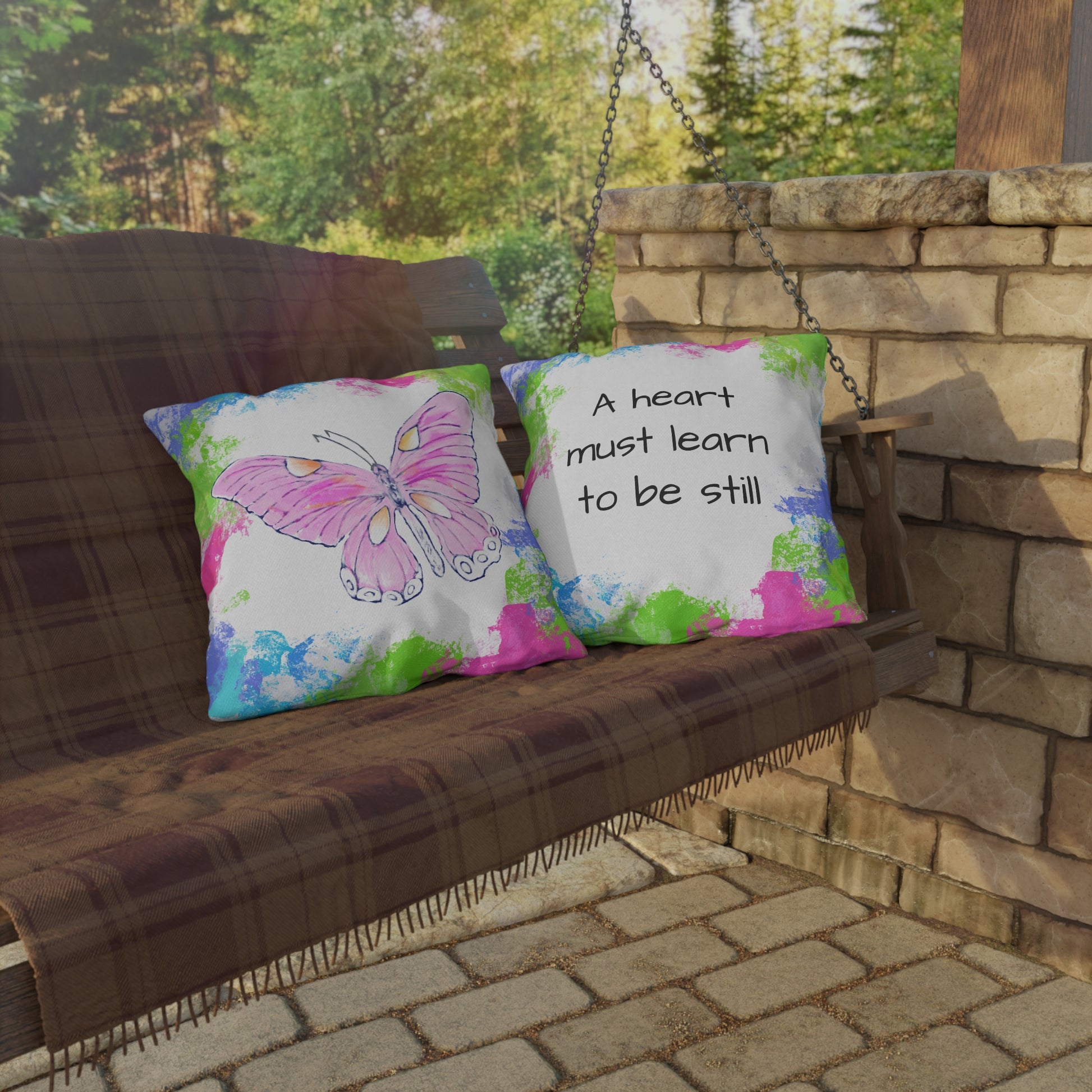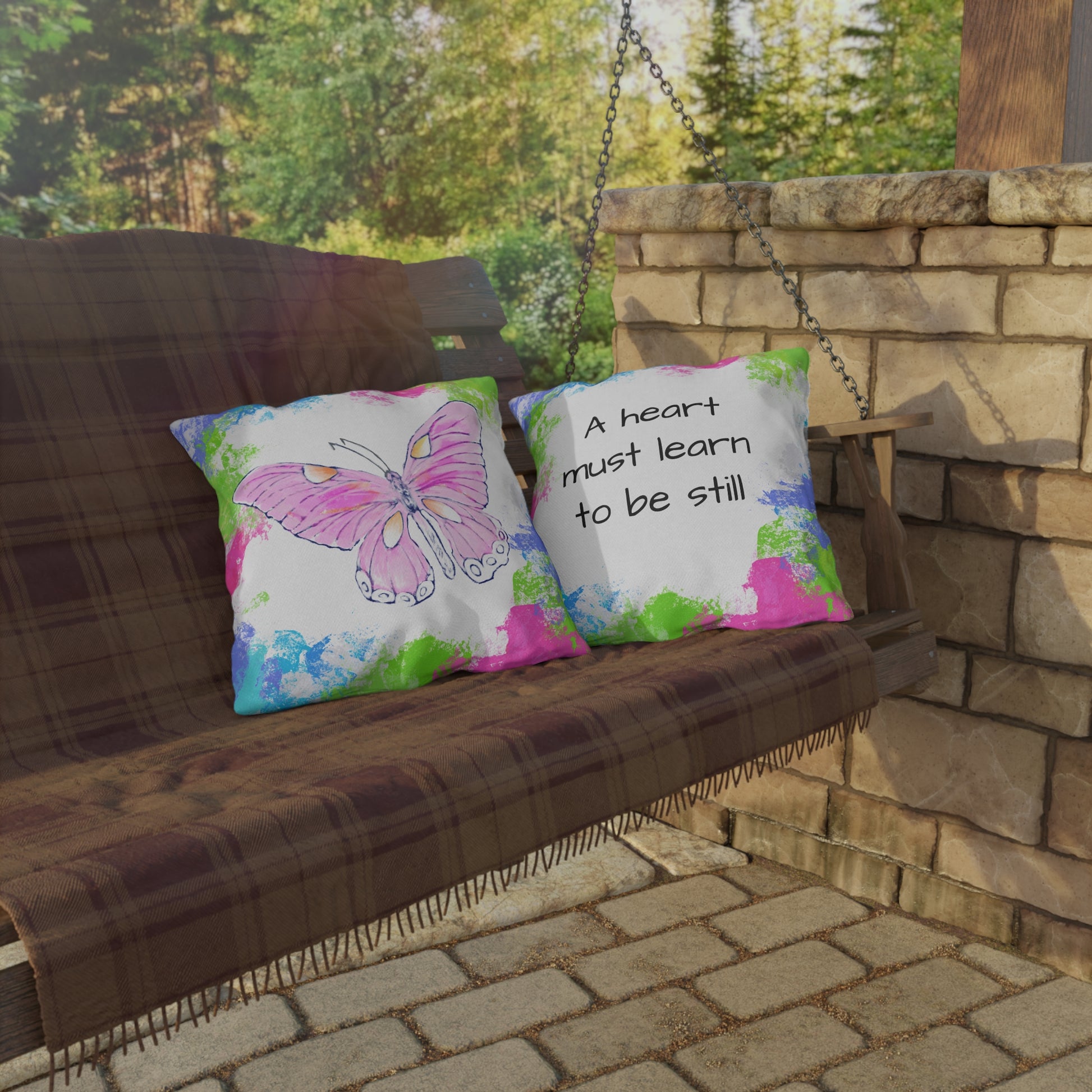 Butterfly Swing Outdoor Pillow A heart must learn to be still