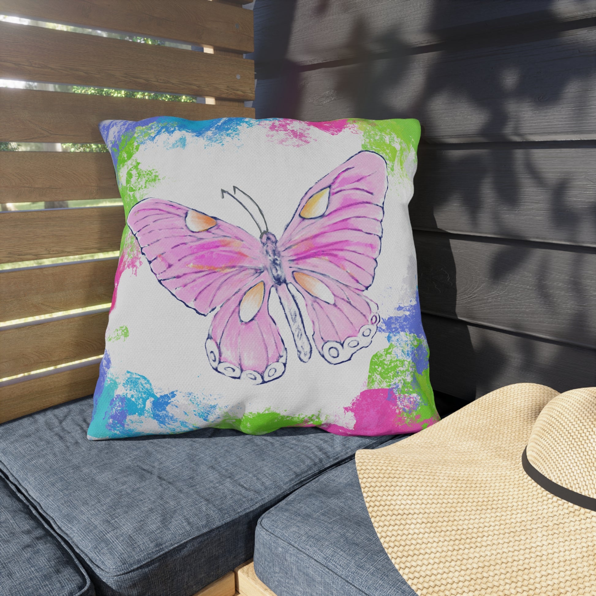 The simple beauty of a hand-drawn butterfly brings a breath of peace to your outdoor space. Whether resting on a porch swing, nestled into a garden chair, or placed by the door to greet you with joy, this pillow offers both charm and encouragement.