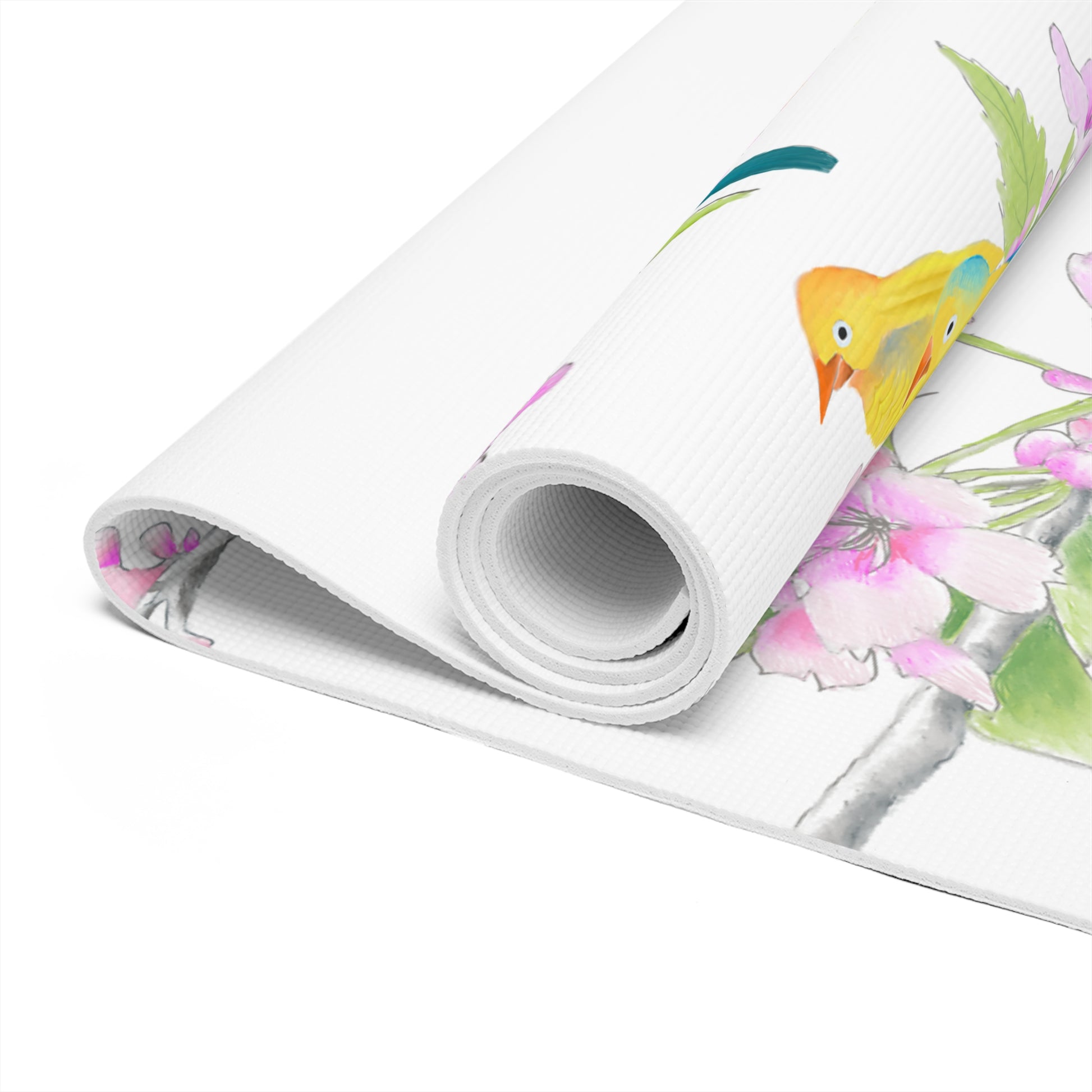 🧘♀️ Periwinkles Design – “Jolly Birds & Cherry Branches” Exercise Mat