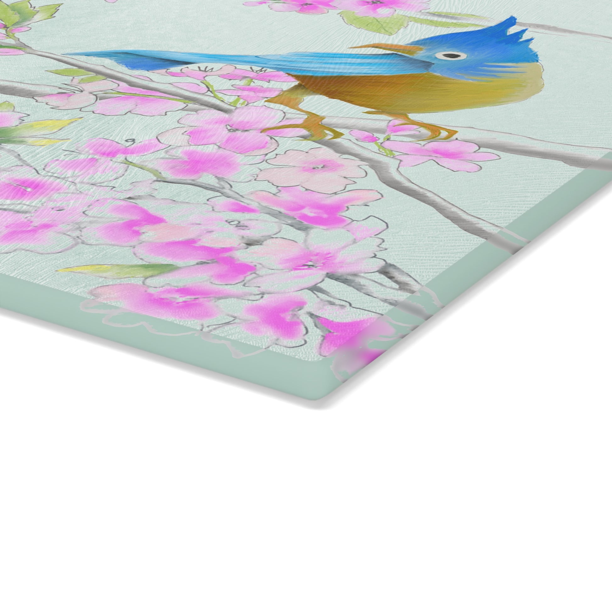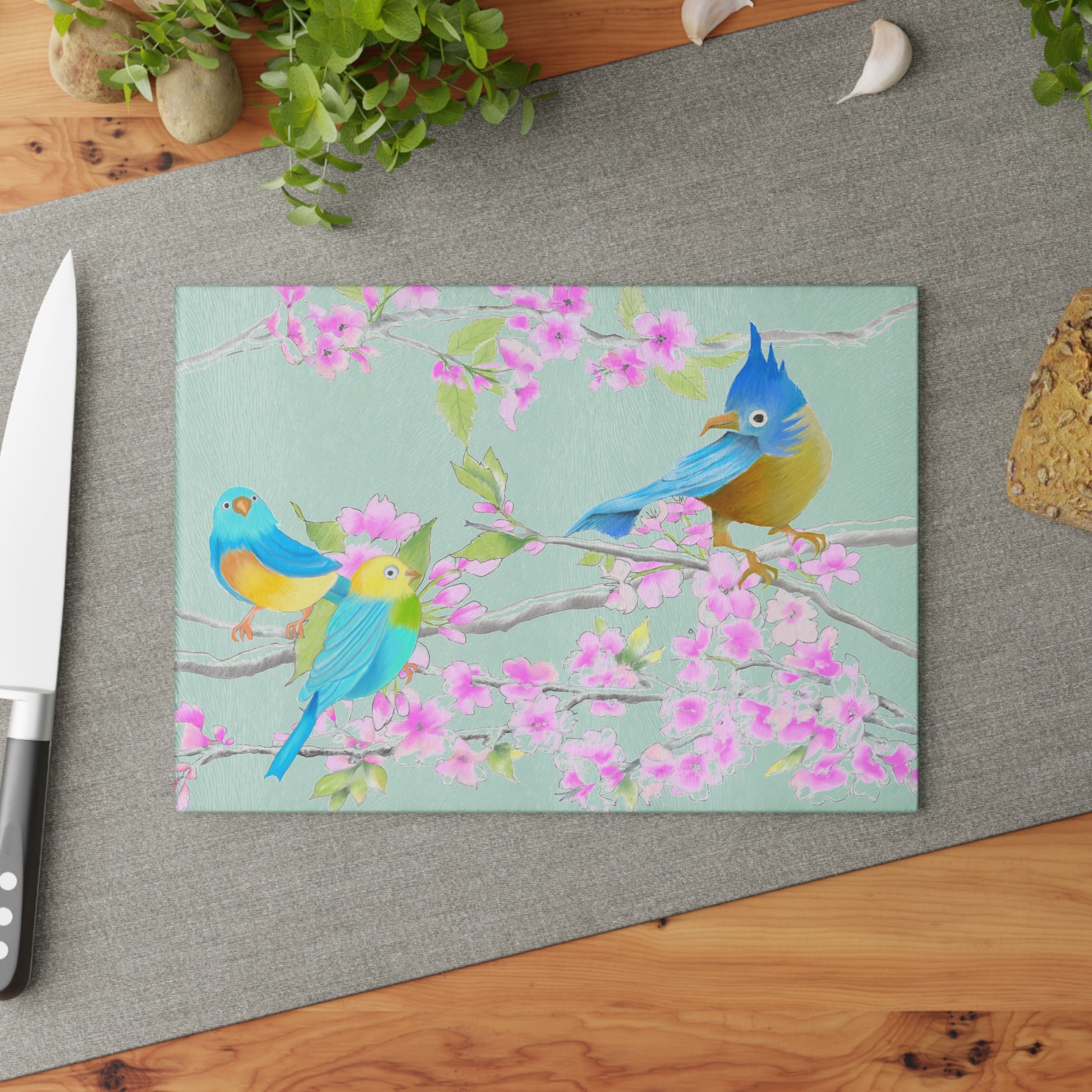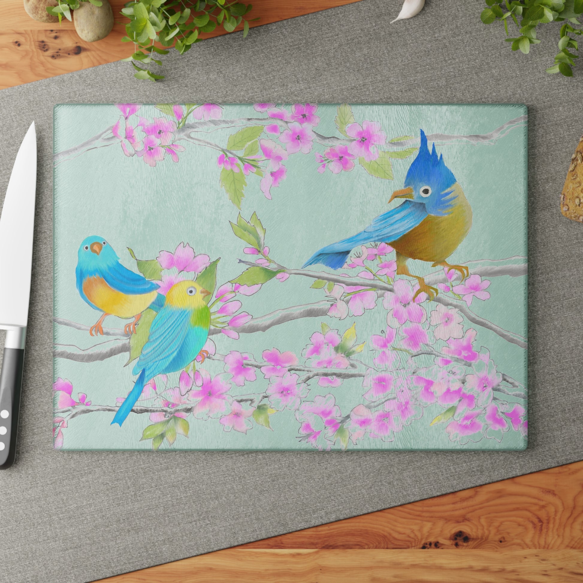 Periwinkles Design – “Cherry Chirp” Glass Cutting Board: A Song of Color & Kitchen Charm 🍒🎶