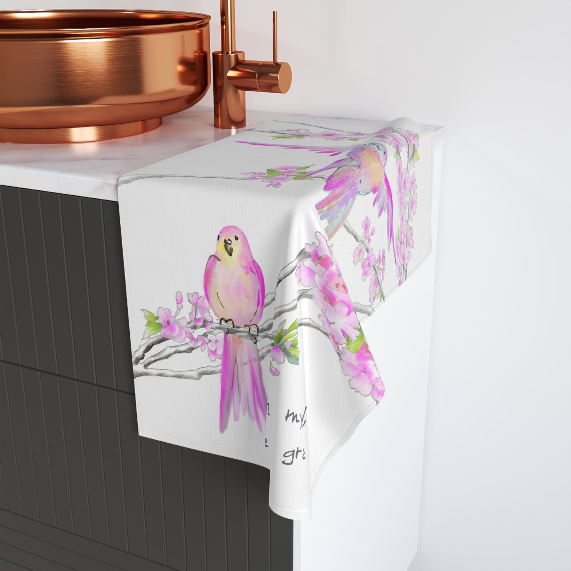 Cherry Chirp Hand Towel Oh my soul Be grateful