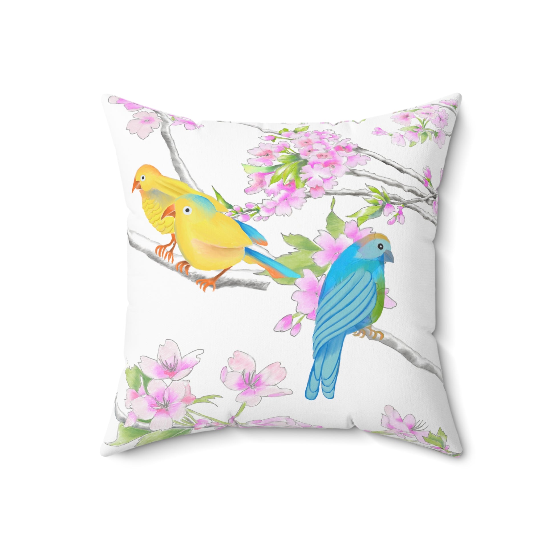 Cherry Chirp Spun Polyester Square Pillow, Multi-color Birds