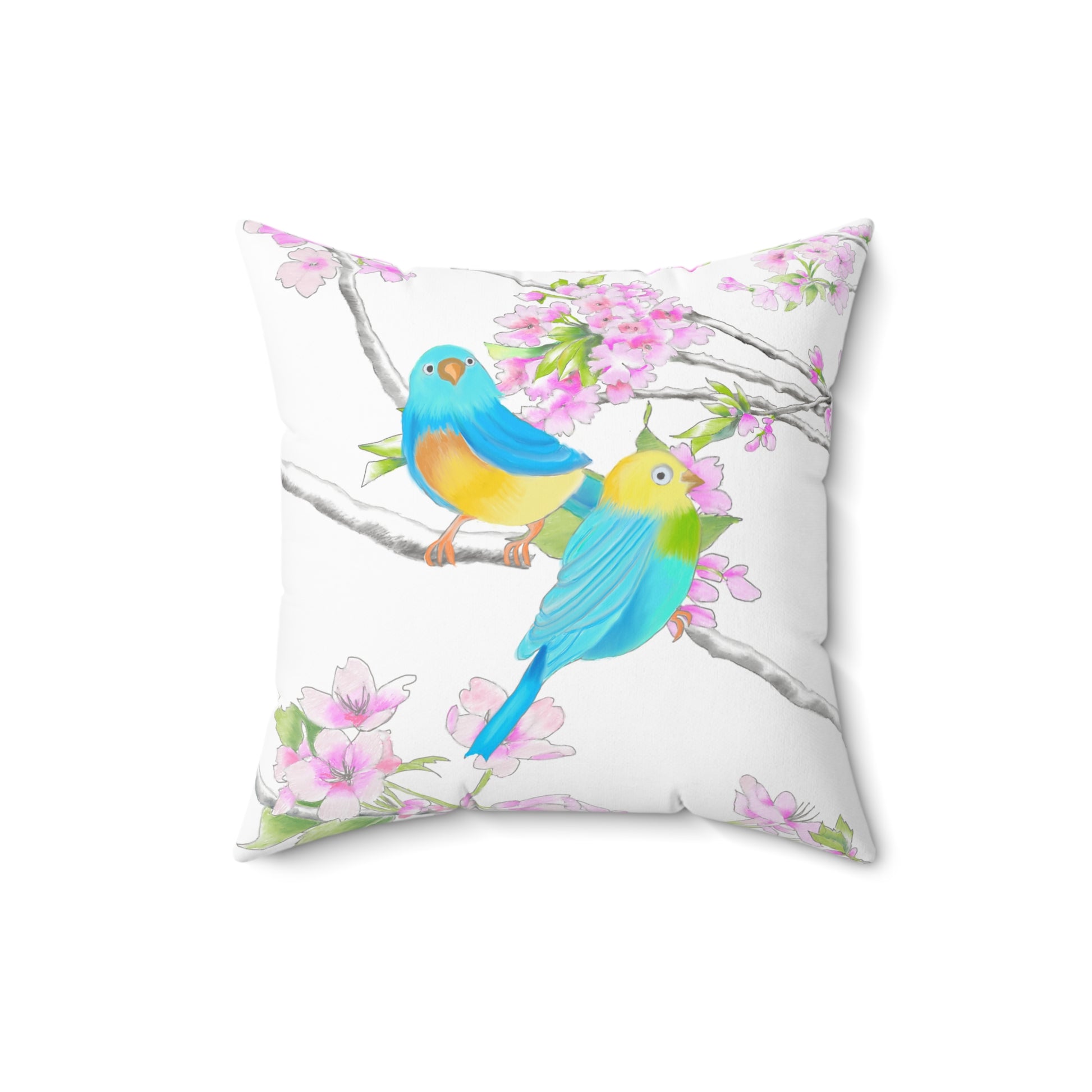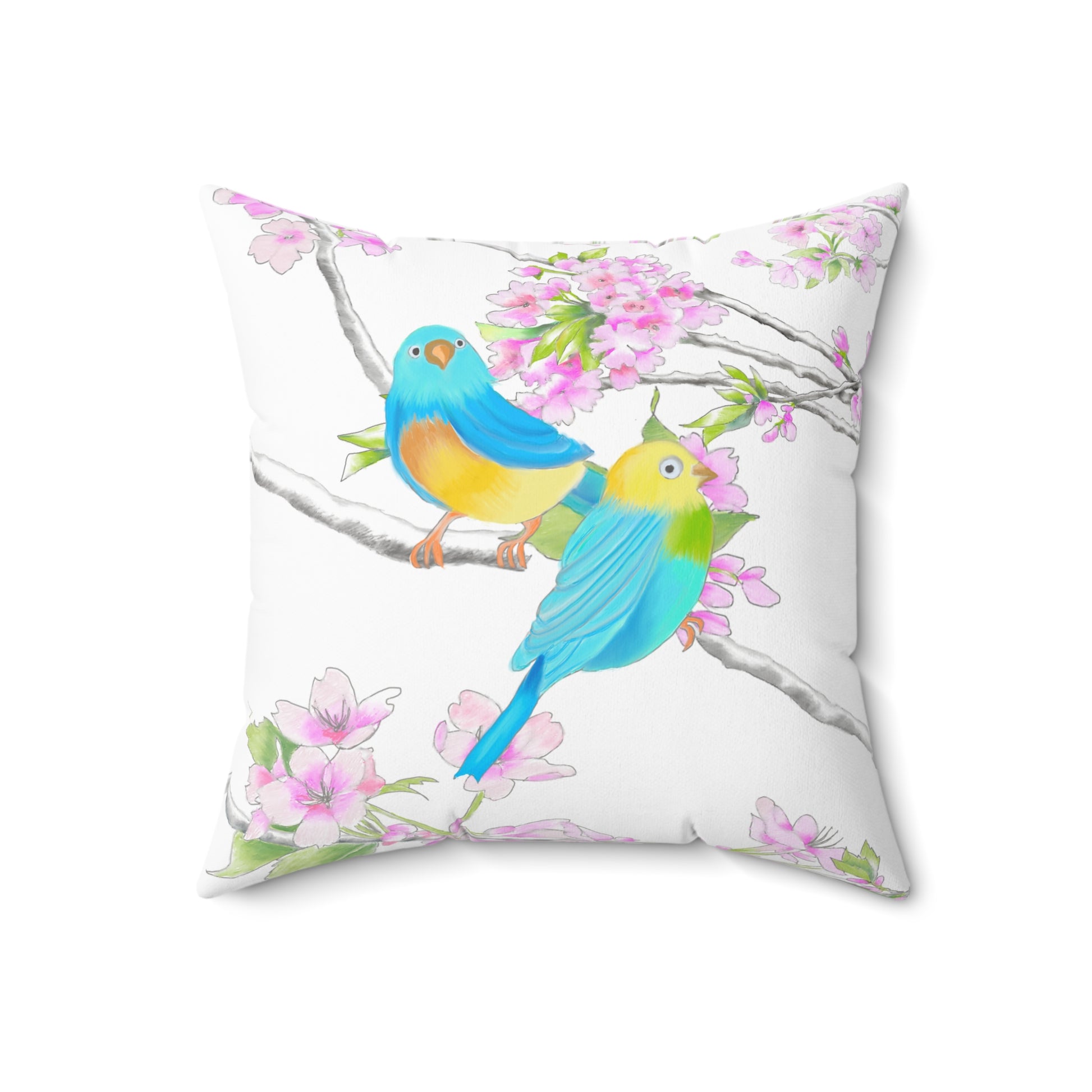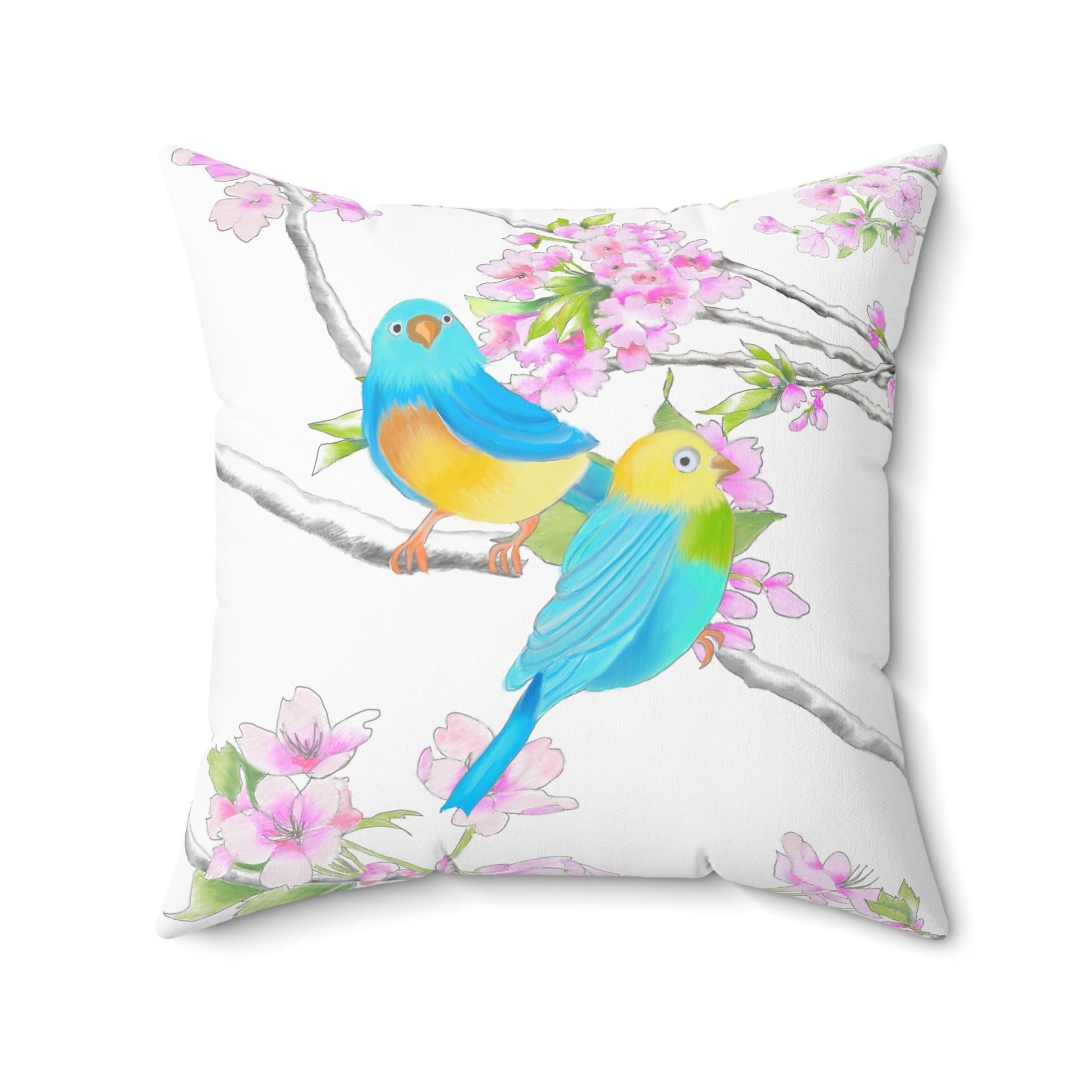 Cherry Chirp Spun Polyester Square Pillow Yellow, Blue Birds
