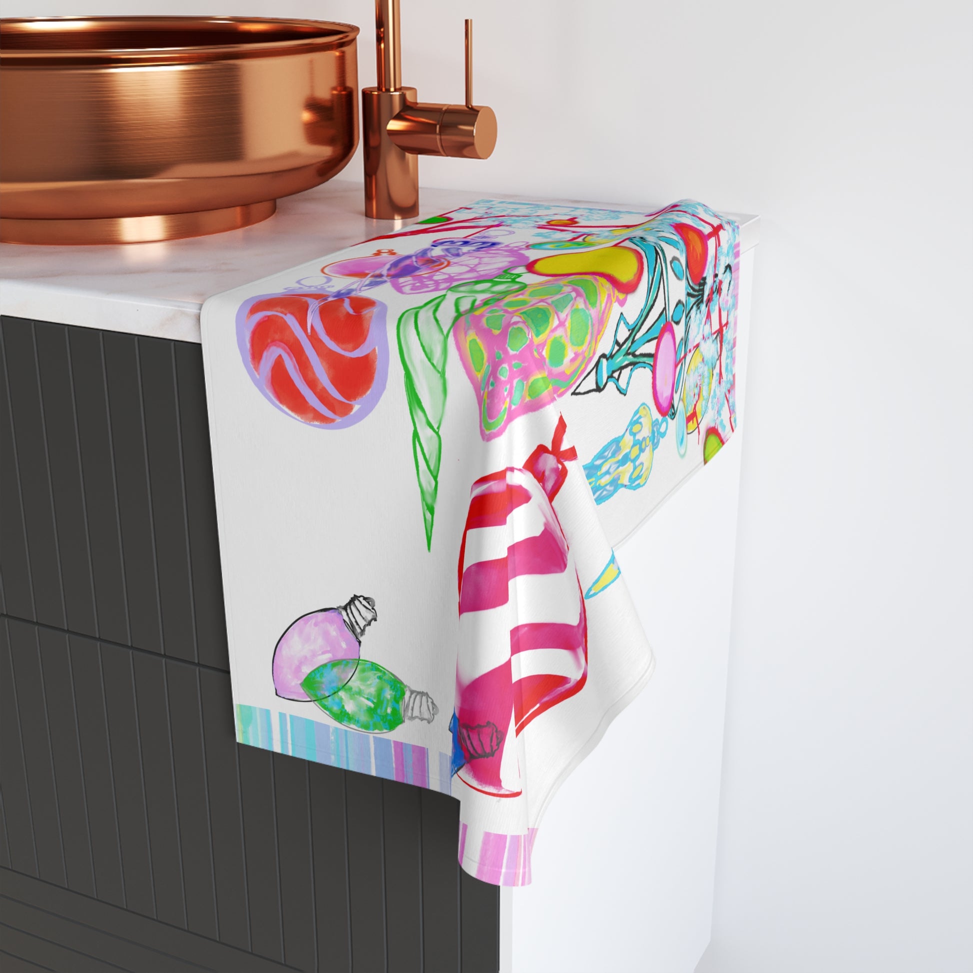 Deck your space with joy! This soft, chic hand towel features a watercolor Christmas tree branch bustling with ornaments, hand-painted by Joel Borst. Perfect for kitchens, bathrooms, or gifting—because every corner deserves a little holiday sparkle. 🎄✨