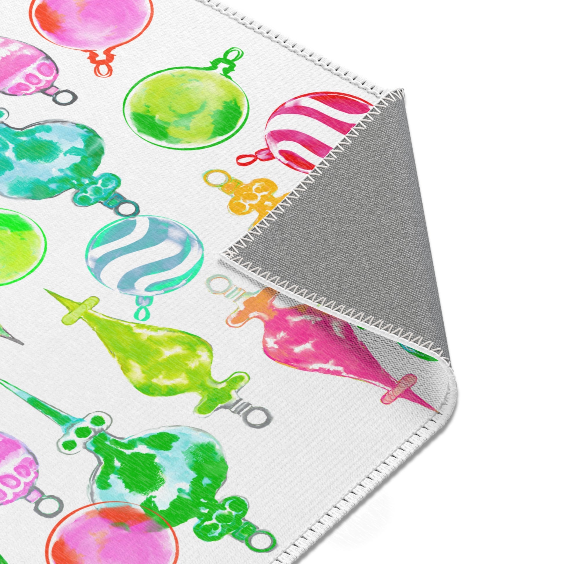 Let the Dancing Ornaments Christmas Rug bring holiday magic to your home, one watercolor ornament at a time. ✨❤️💚