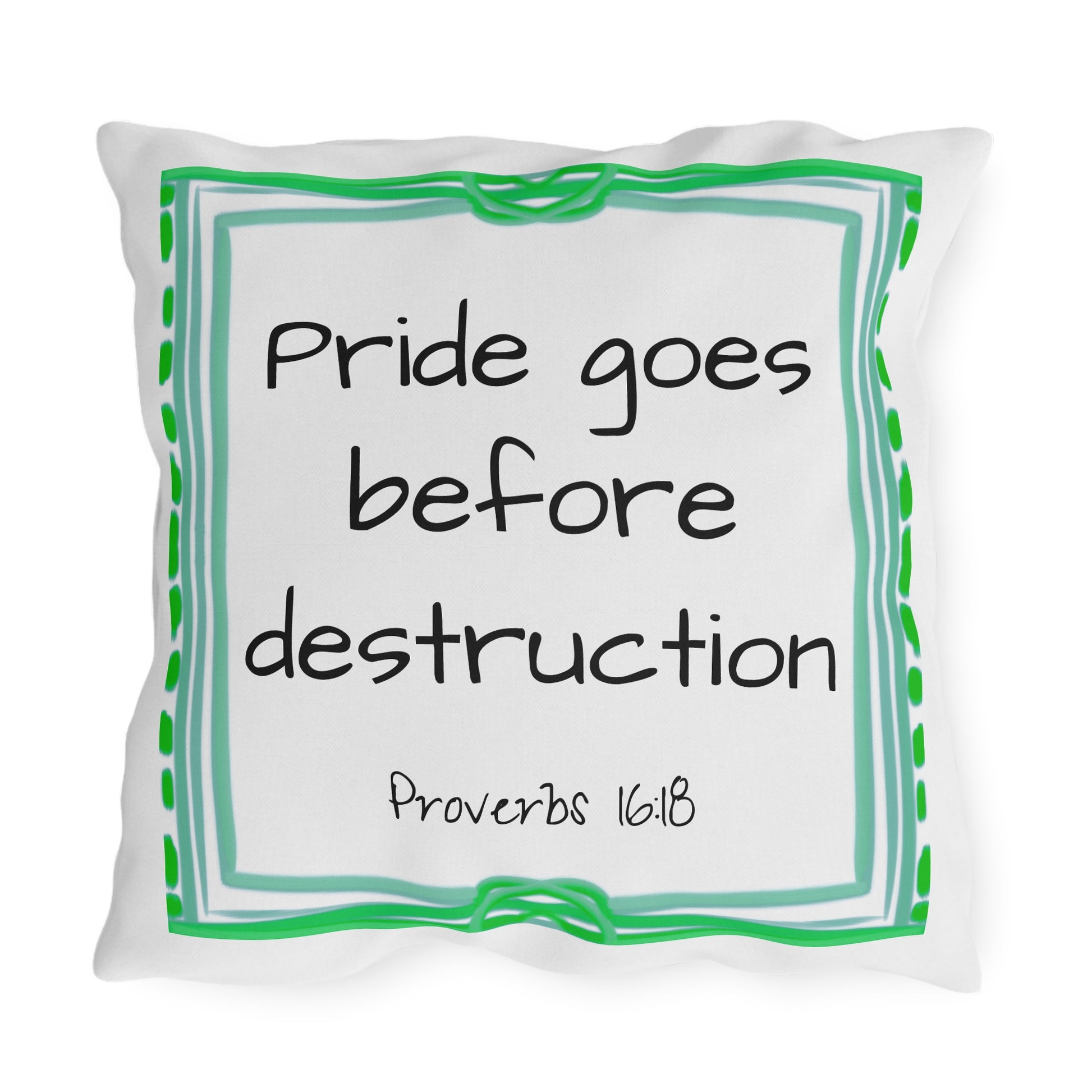 Chroma Outdoor Pillow Green "Pride goes before destruction"