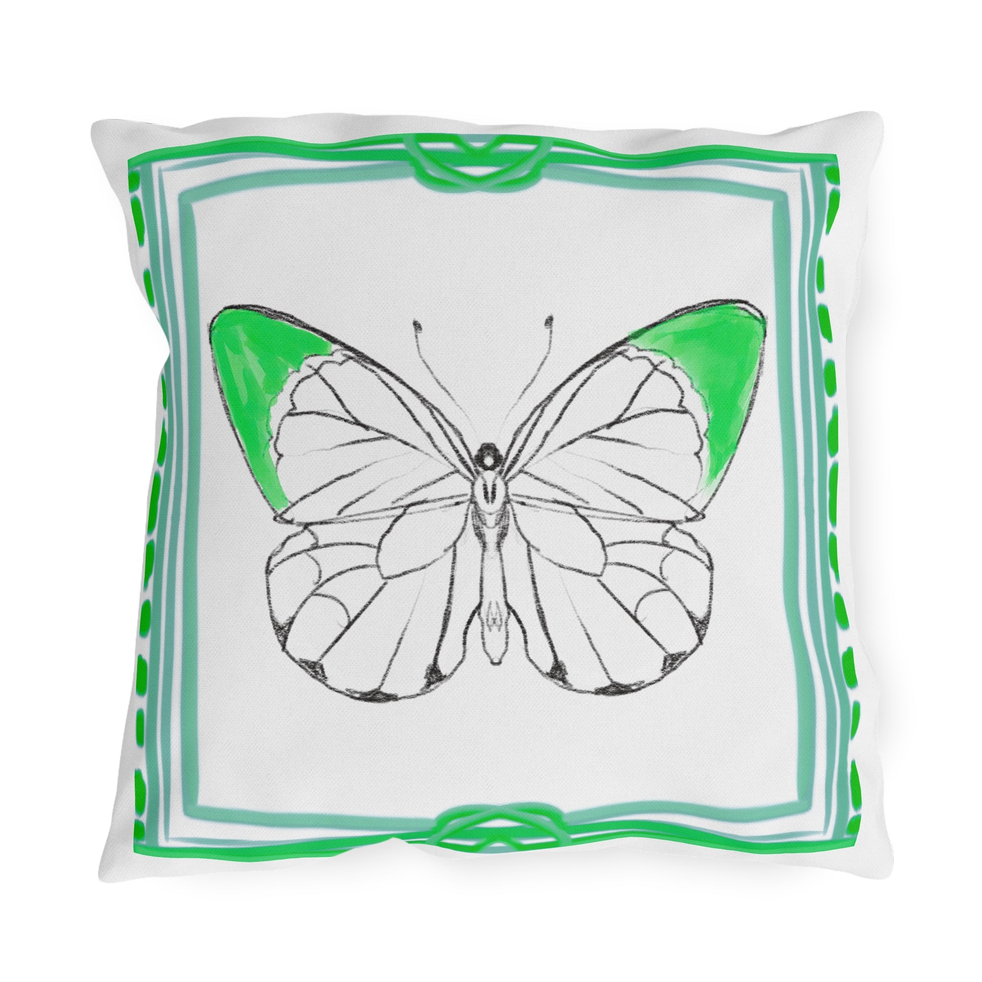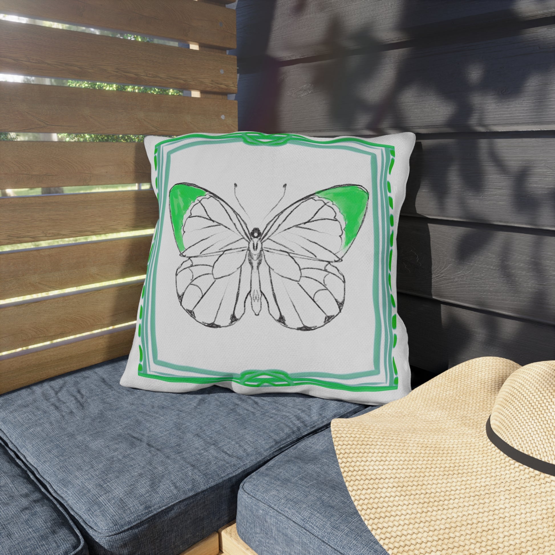 The simple beauty of a hand-drawn butterfly brings a breath of peace to your outdoor space. Whether resting on a porch swing, nestled into a garden chair, or placed by the door to greet you with joy, this pillow offers both charm and encouragement.