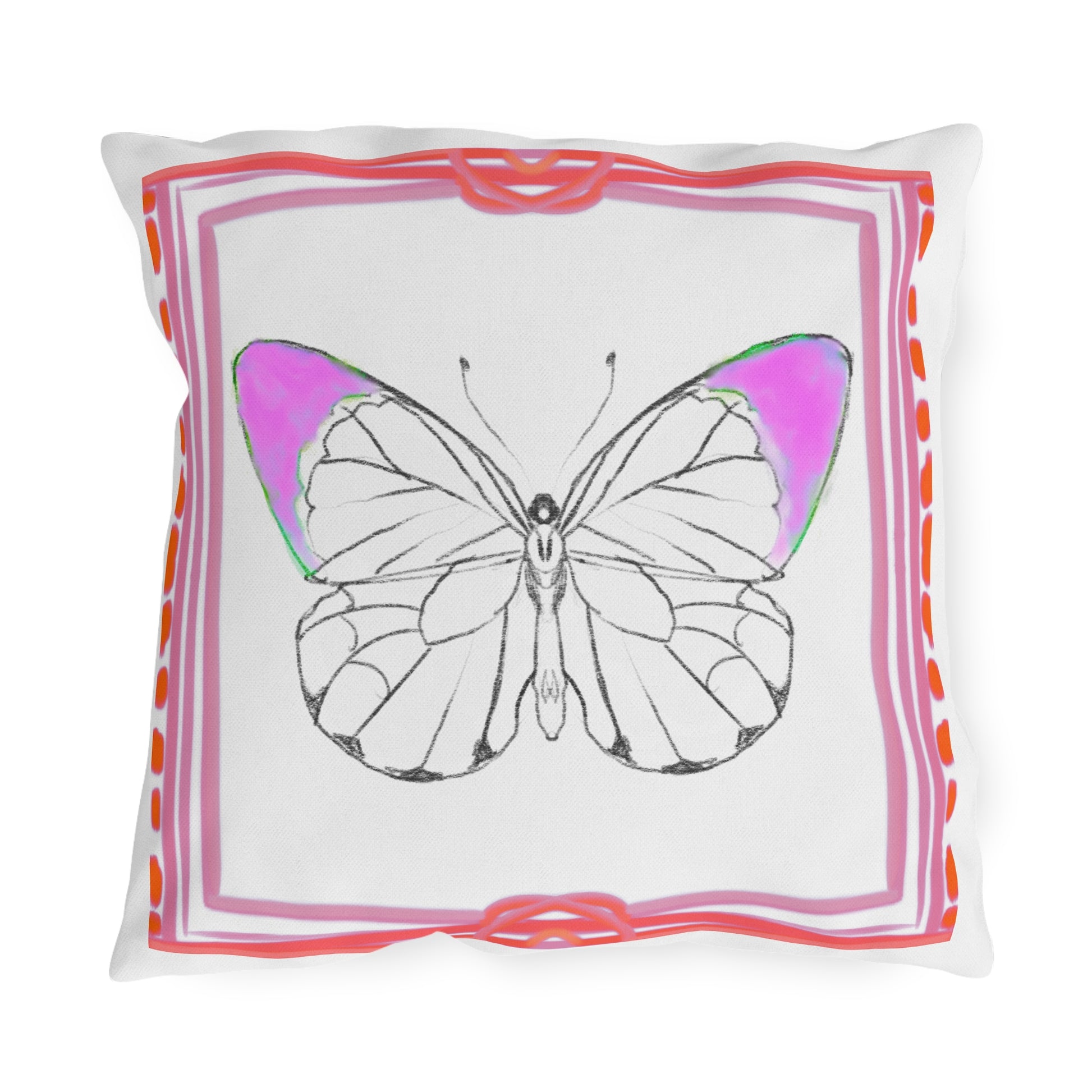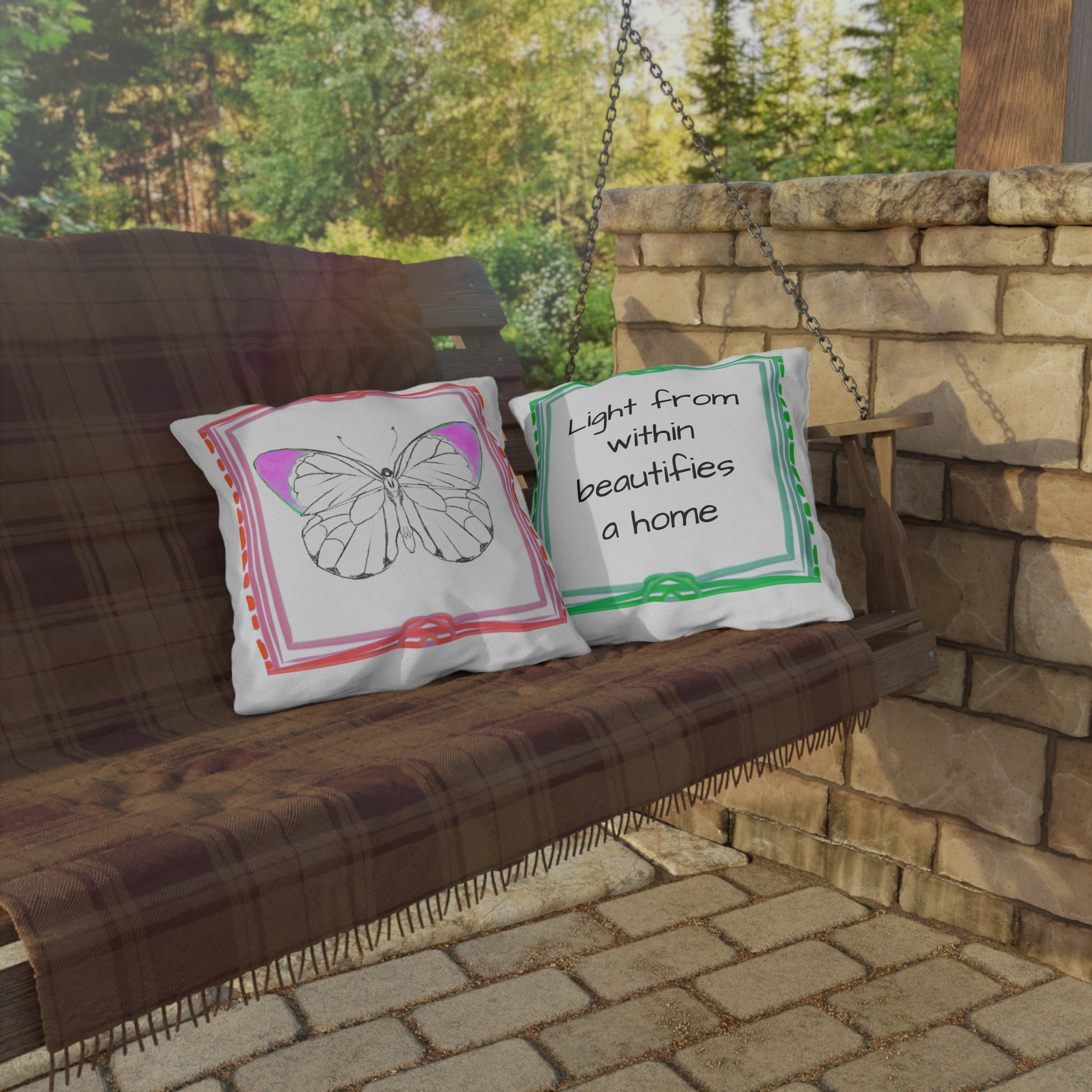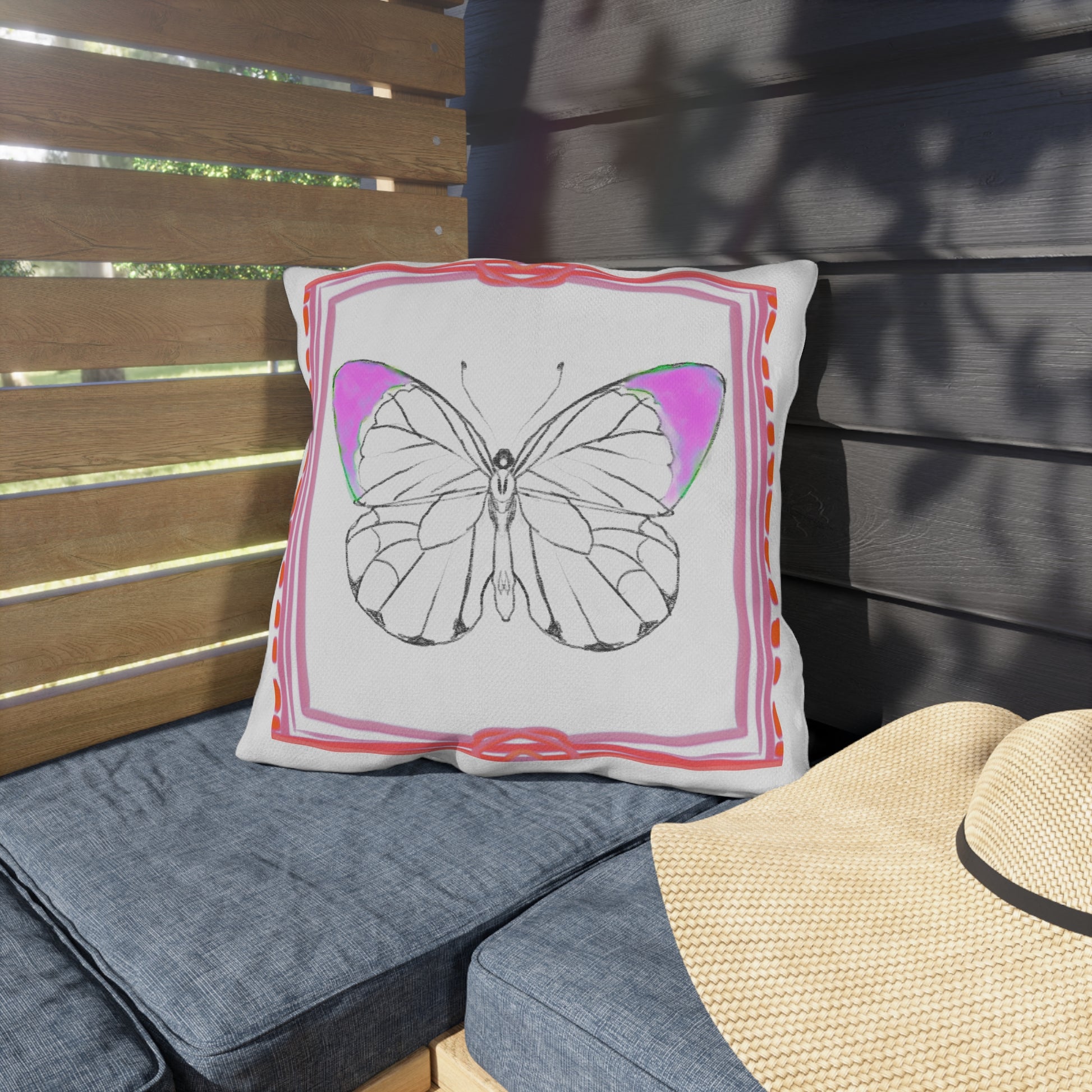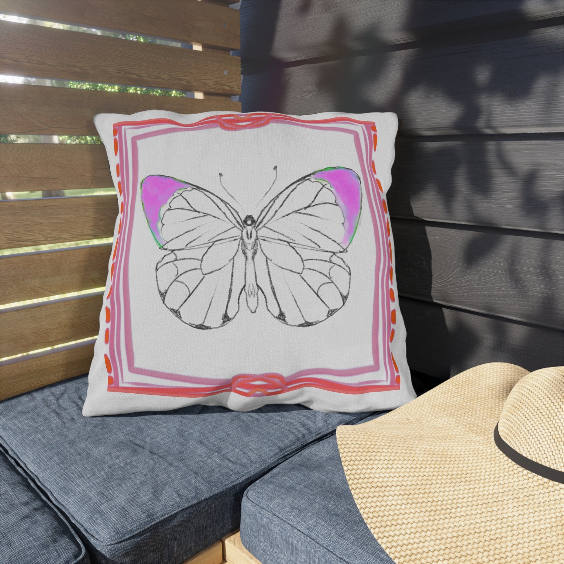 The simple beauty of a hand-drawn butterfly brings a breath of peace to your outdoor space. Whether resting on a porch swing, nestled into a garden chair, or placed by the door to greet you with joy, this pillow offers both charm and encouragement.