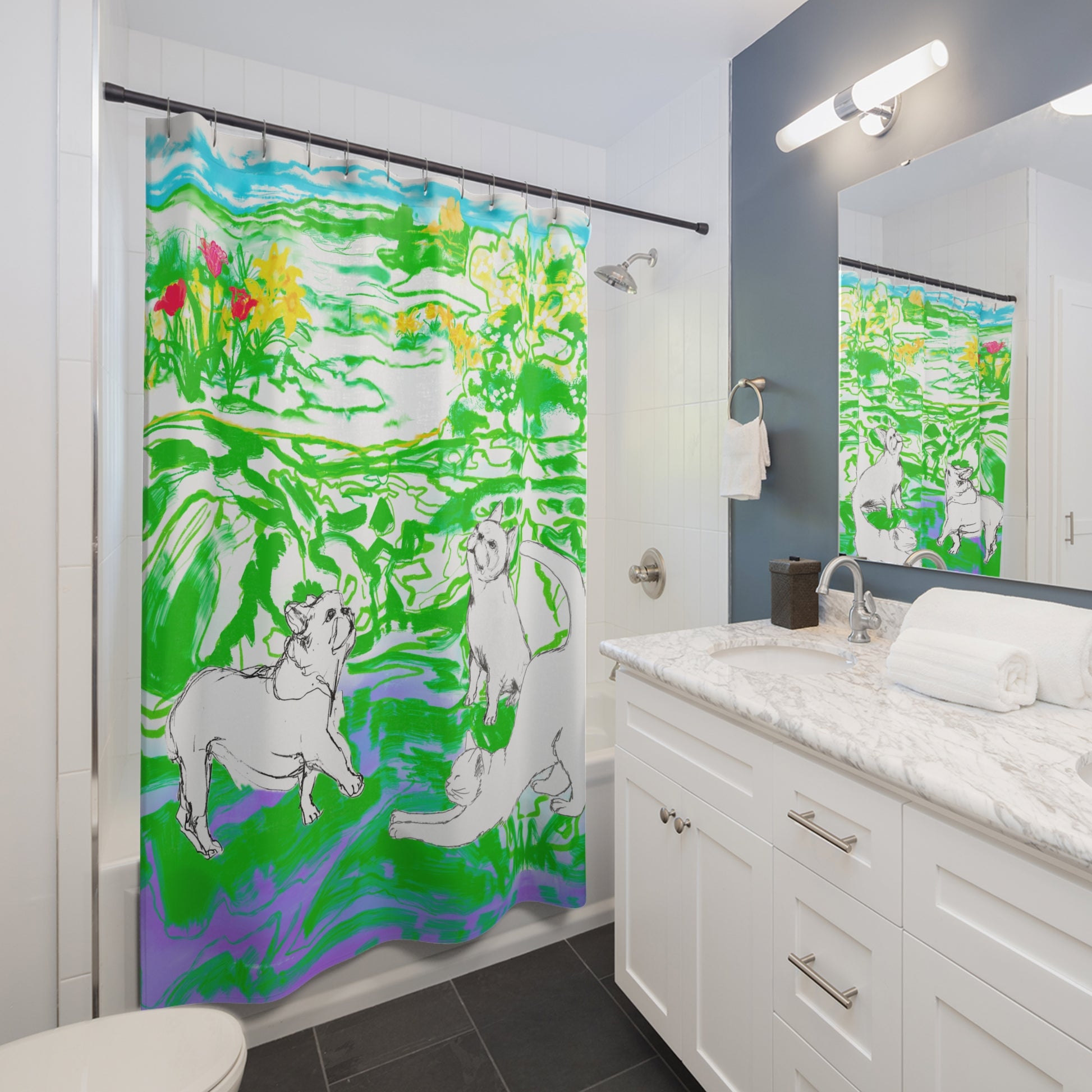 Colorful Cats and Dogs Shower Curtains