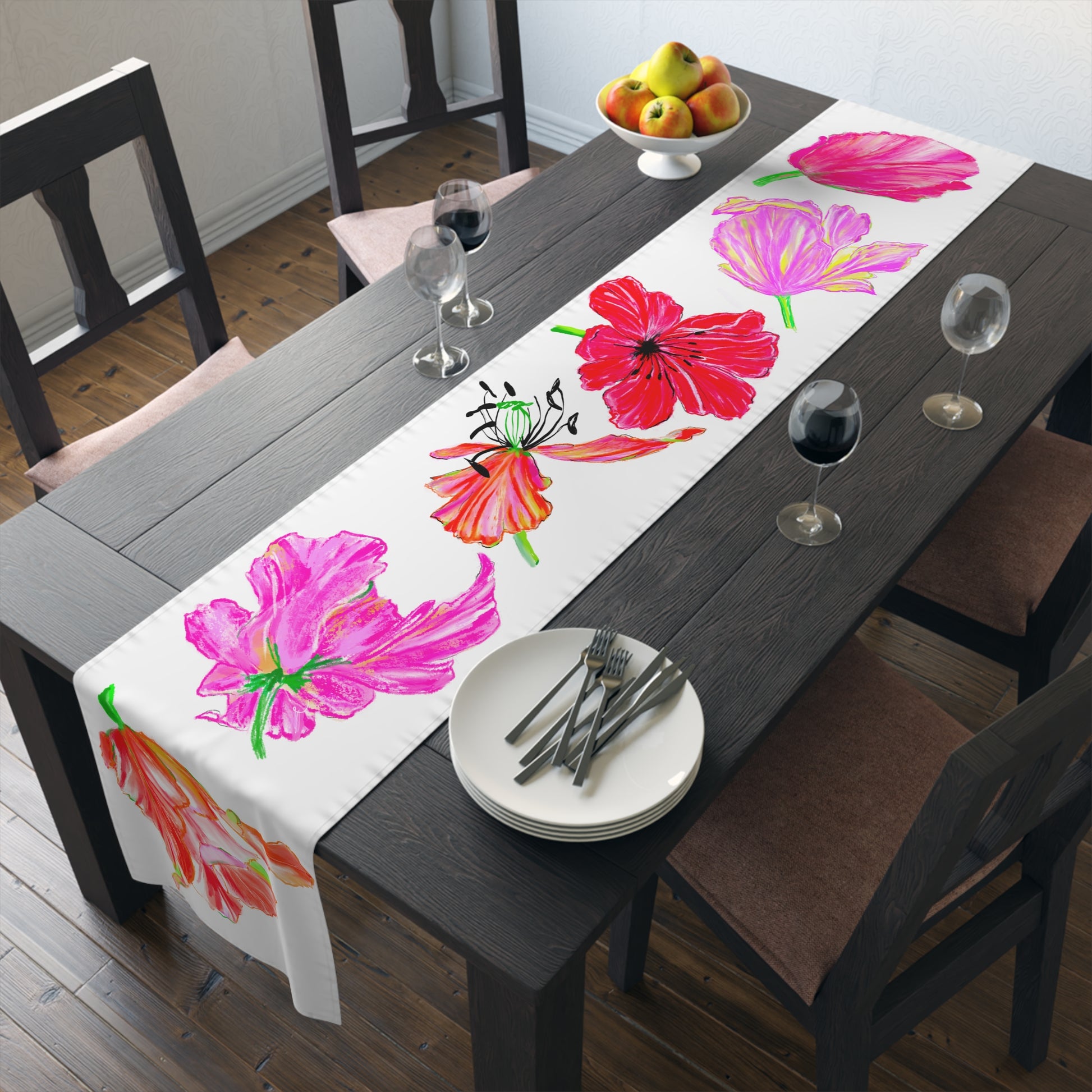 The beauty of a table runner is that it can stay in place even when you're not dining—allowing you to enjoy the breathtaking charm of tulips every single day. Whether you're setting up for a casual breakfast, a lively gathering, or simply embracing the pleasure of good design, this runner is the perfect way to celebrate color and creativity.