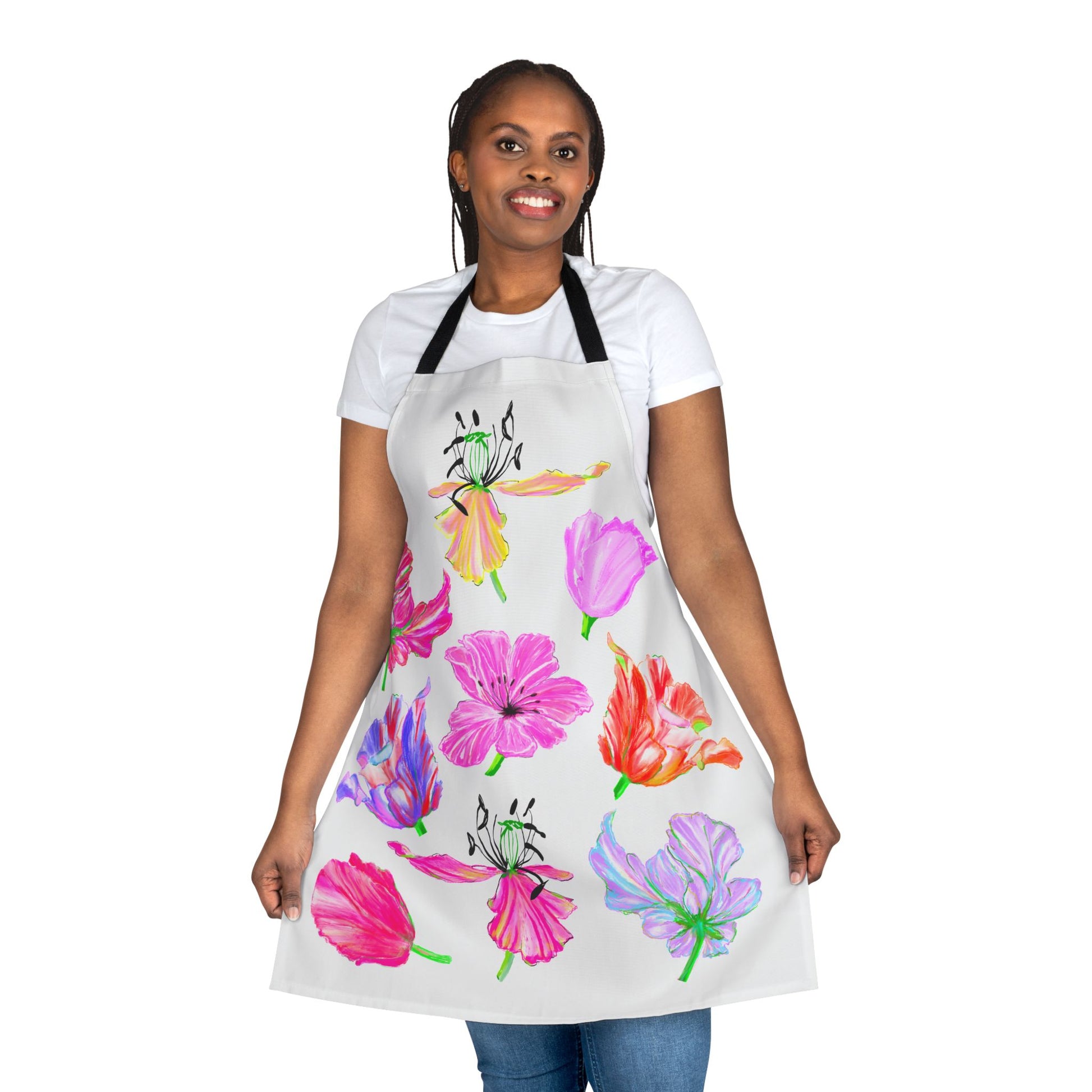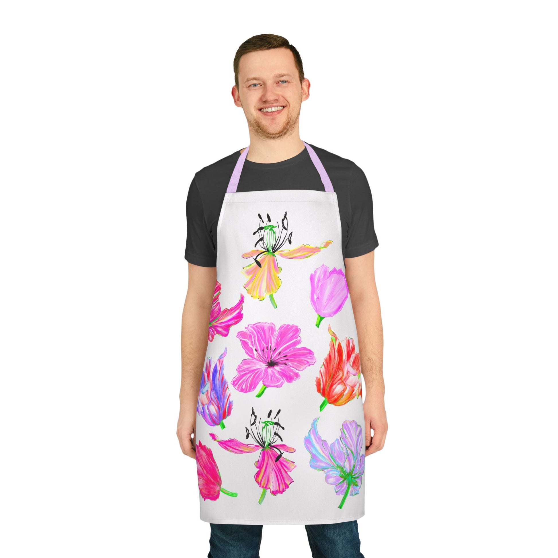 Whether for yourself or a fellow flower fanatic, this apron adds charm to every moment. Let the tulips twirl, the cake rise, and the joy flow.