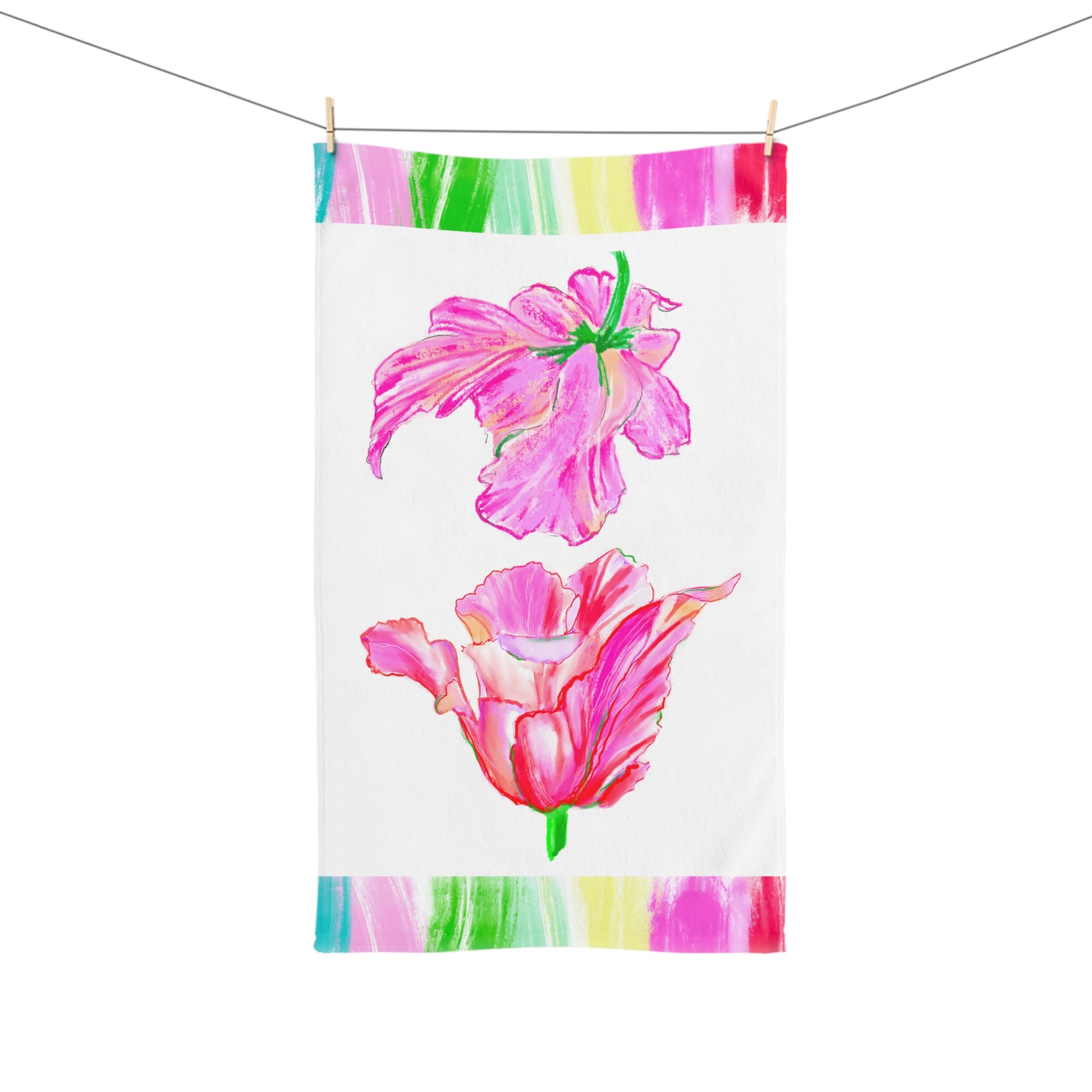 Add a cheerful pop of color to your bathroom or kitchen with this hand-drawn tulip towel, inspired by the joy of a morning stroll through blooming fields—gathering your favorite tulips to carry a bit of sunshine home. Made to delight the eye and uplift the heart, this towel is the perfect blend of practical and poetic—a soft, functional canvas for colorful living.