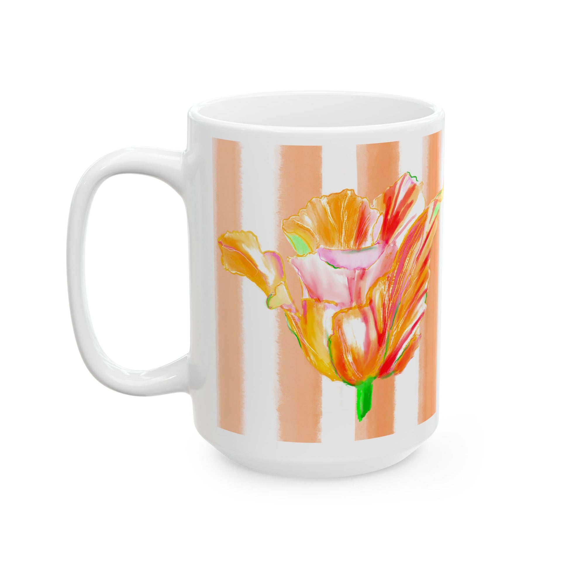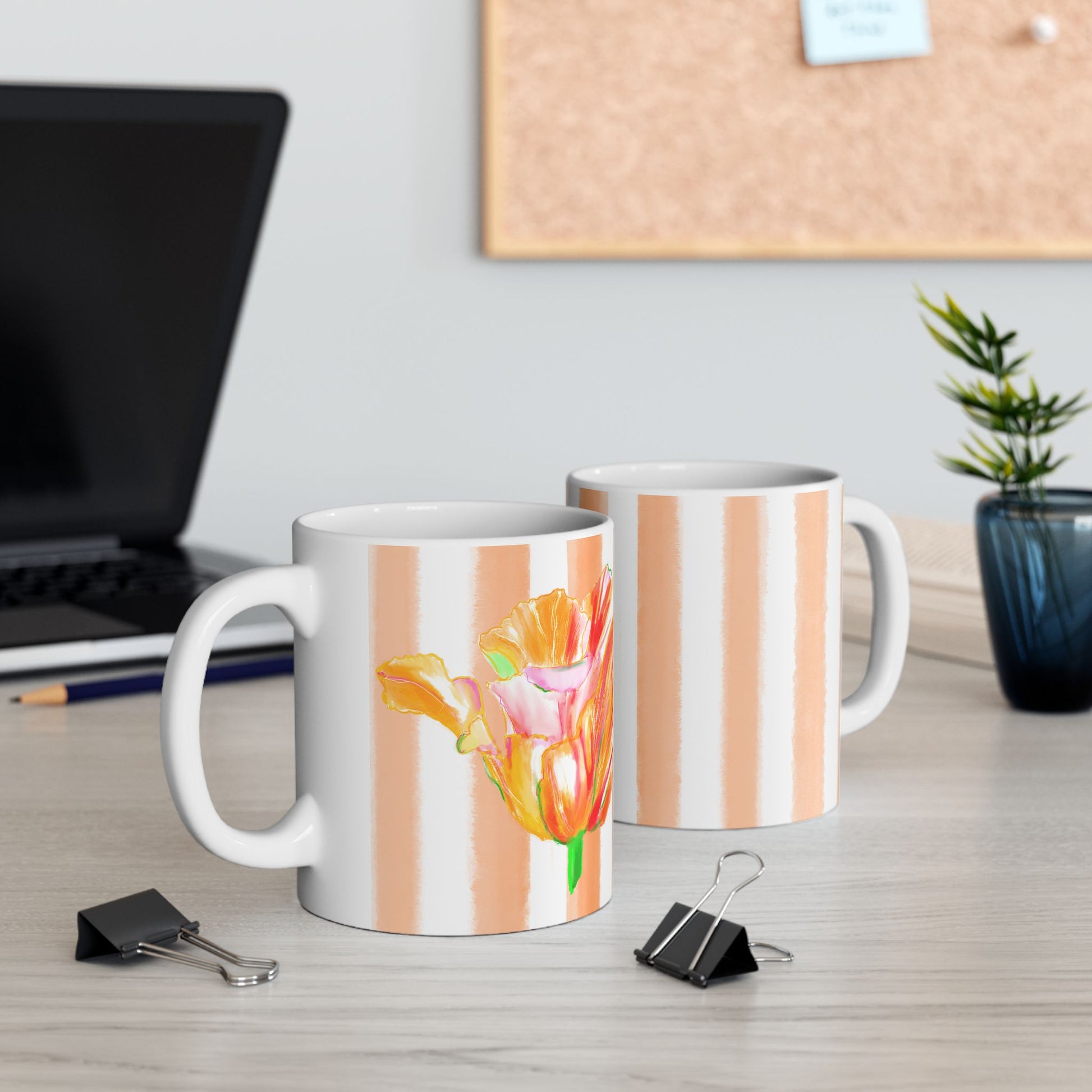 š· Periwinkles Design ā āStripes & Tulipsā Ceramic Mug