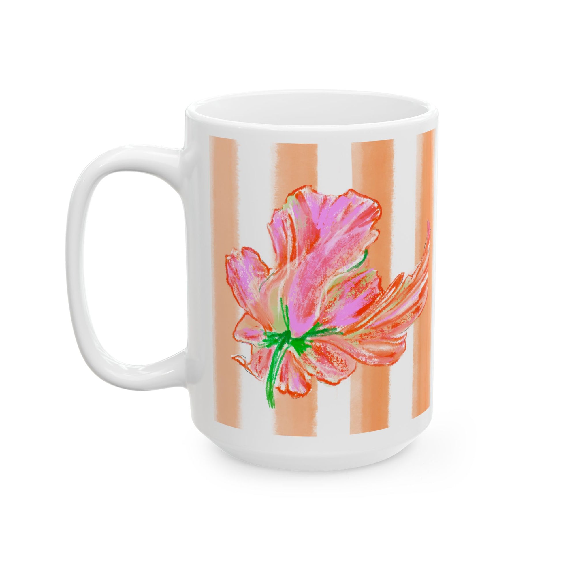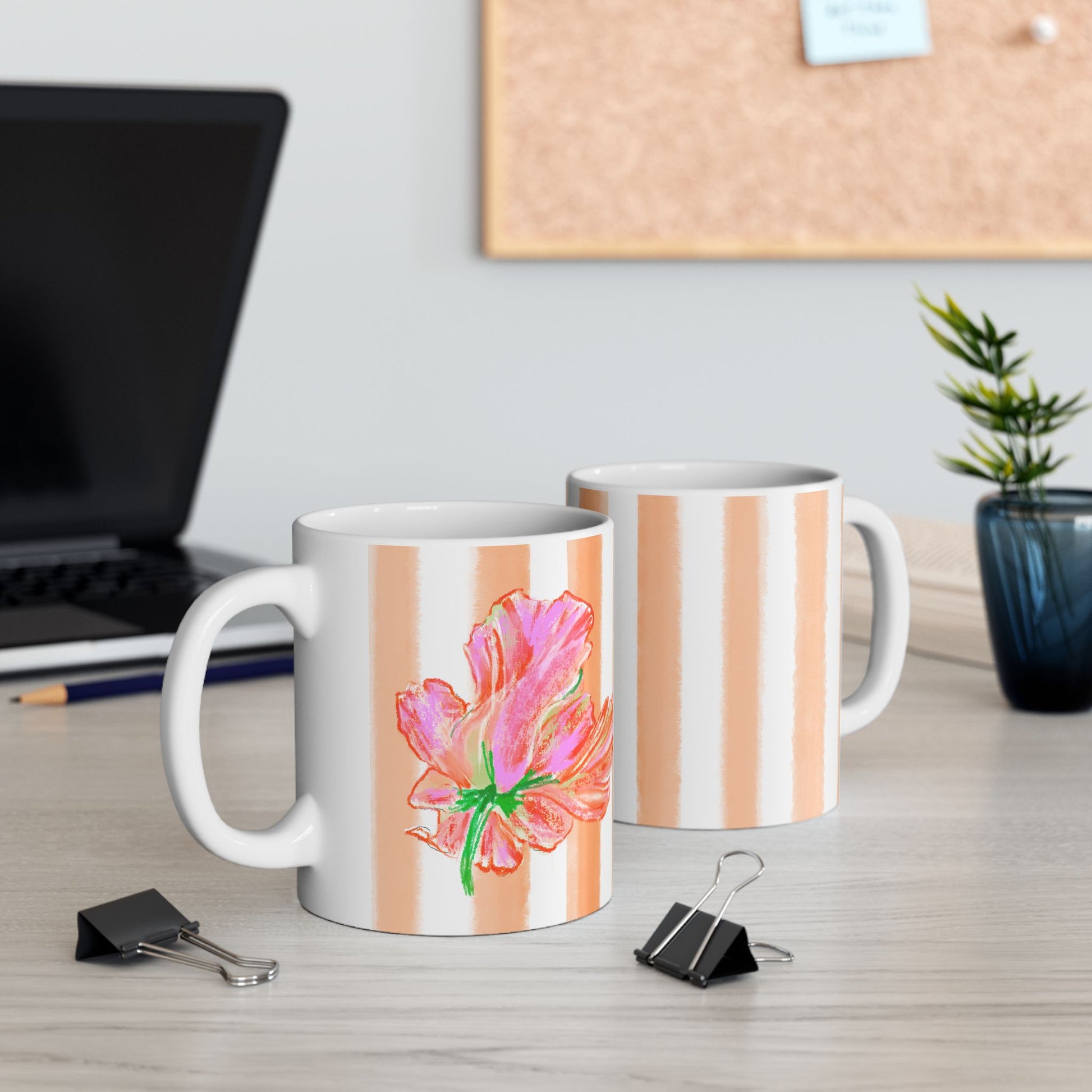š· Periwinkles Design ā āStripes & Tulipsā Ceramic Mug