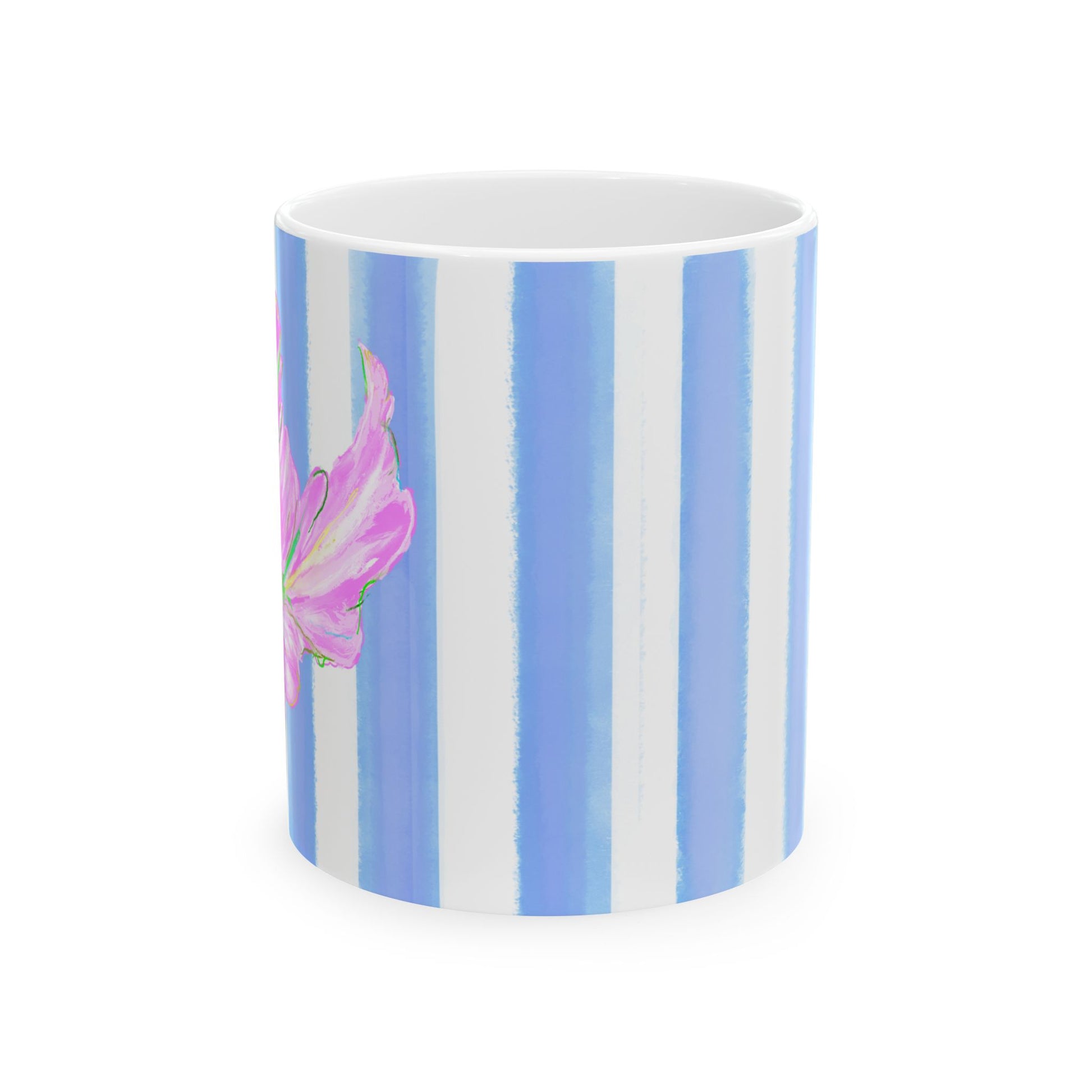 š· Periwinkles Design ā āStripes & Tulipsā Ceramic Mug