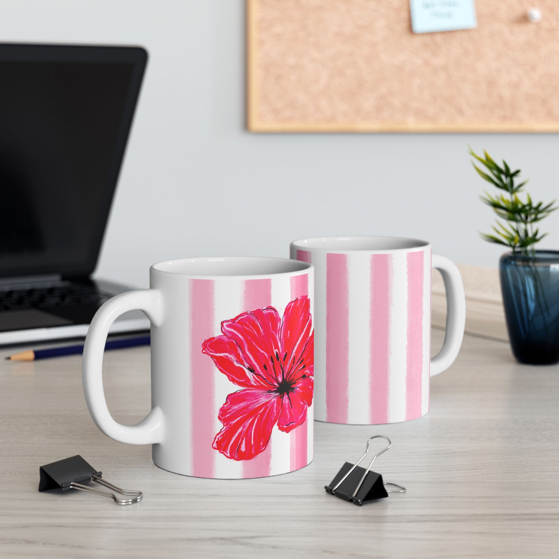 š· Periwinkles Design ā āStripes & Tulipsā Ceramic Mug