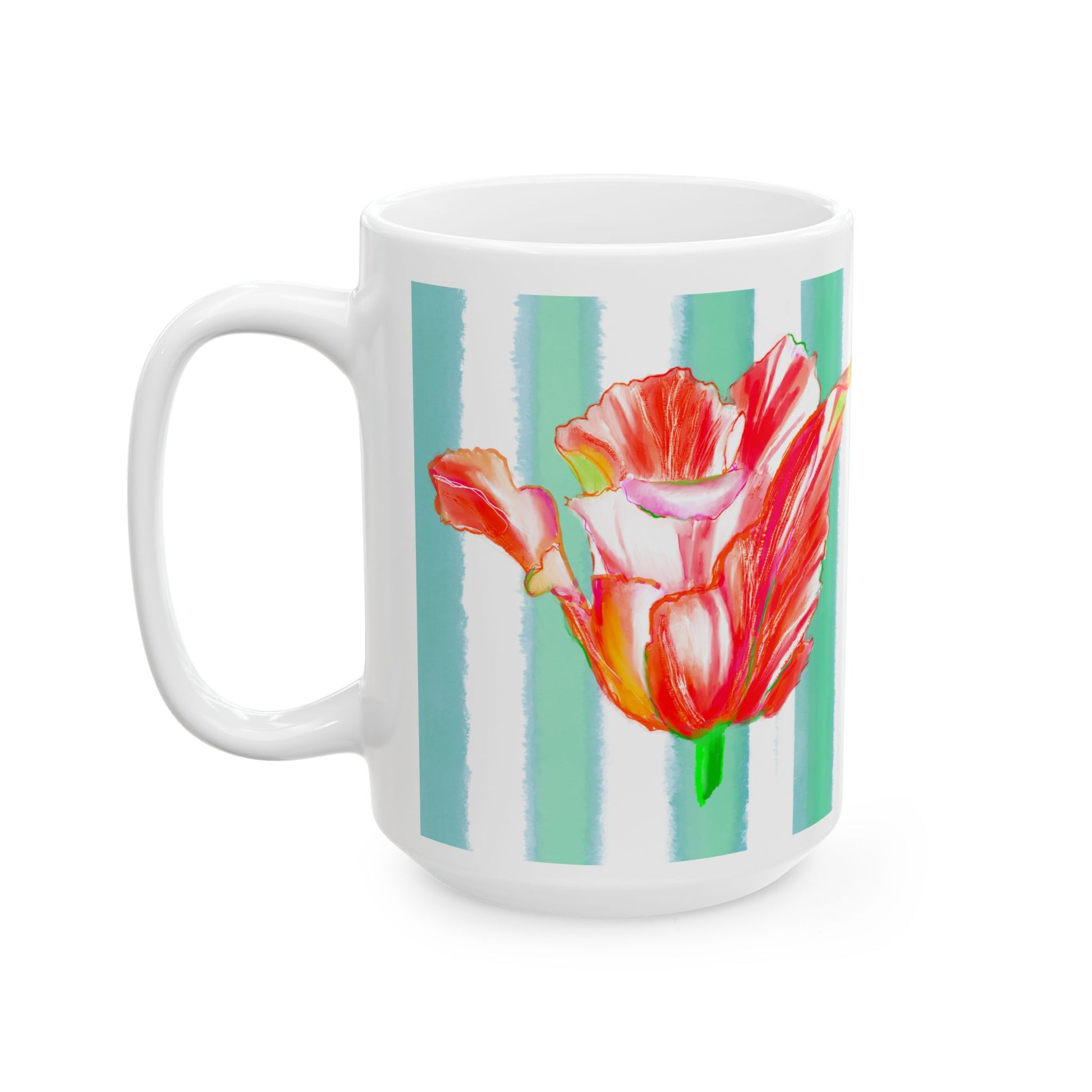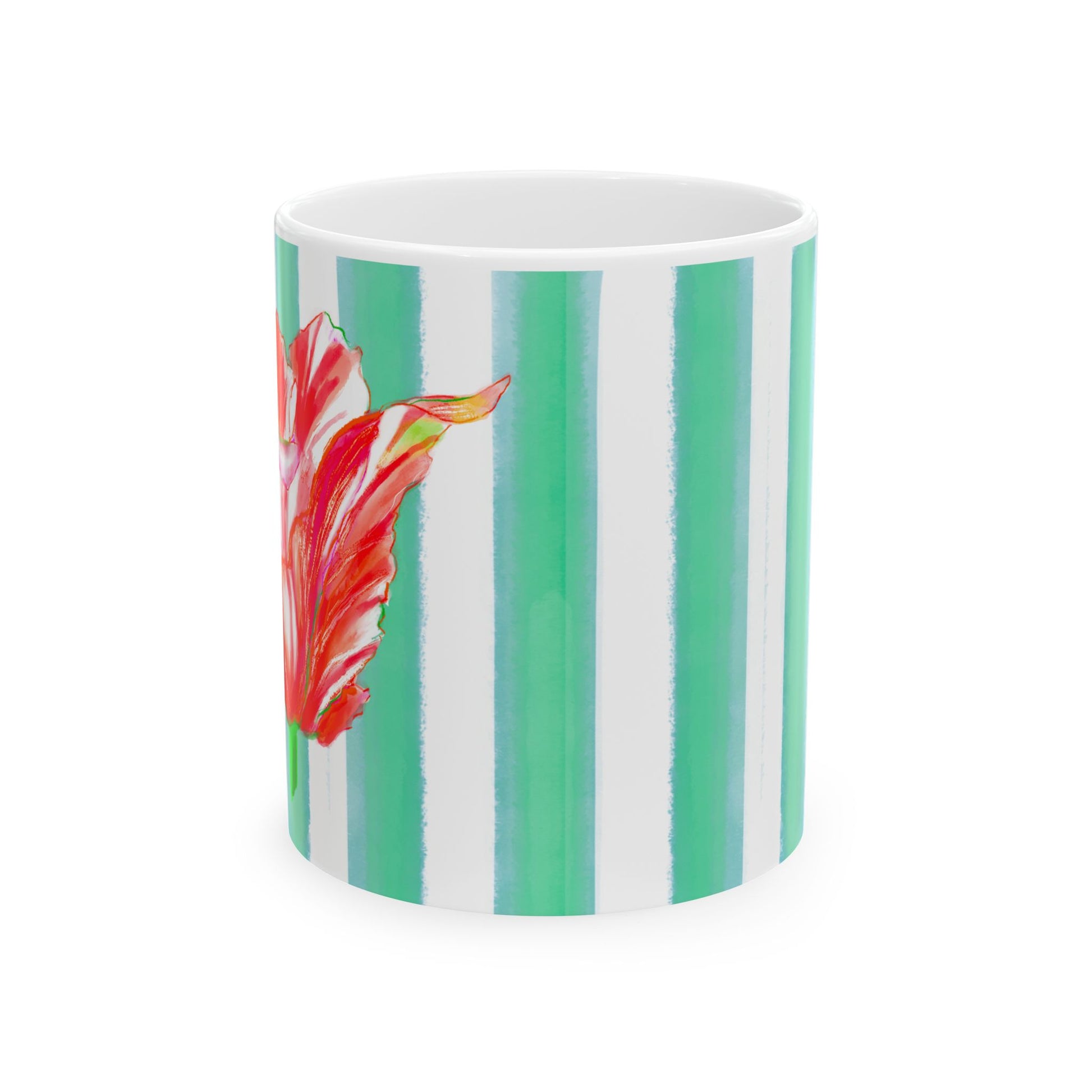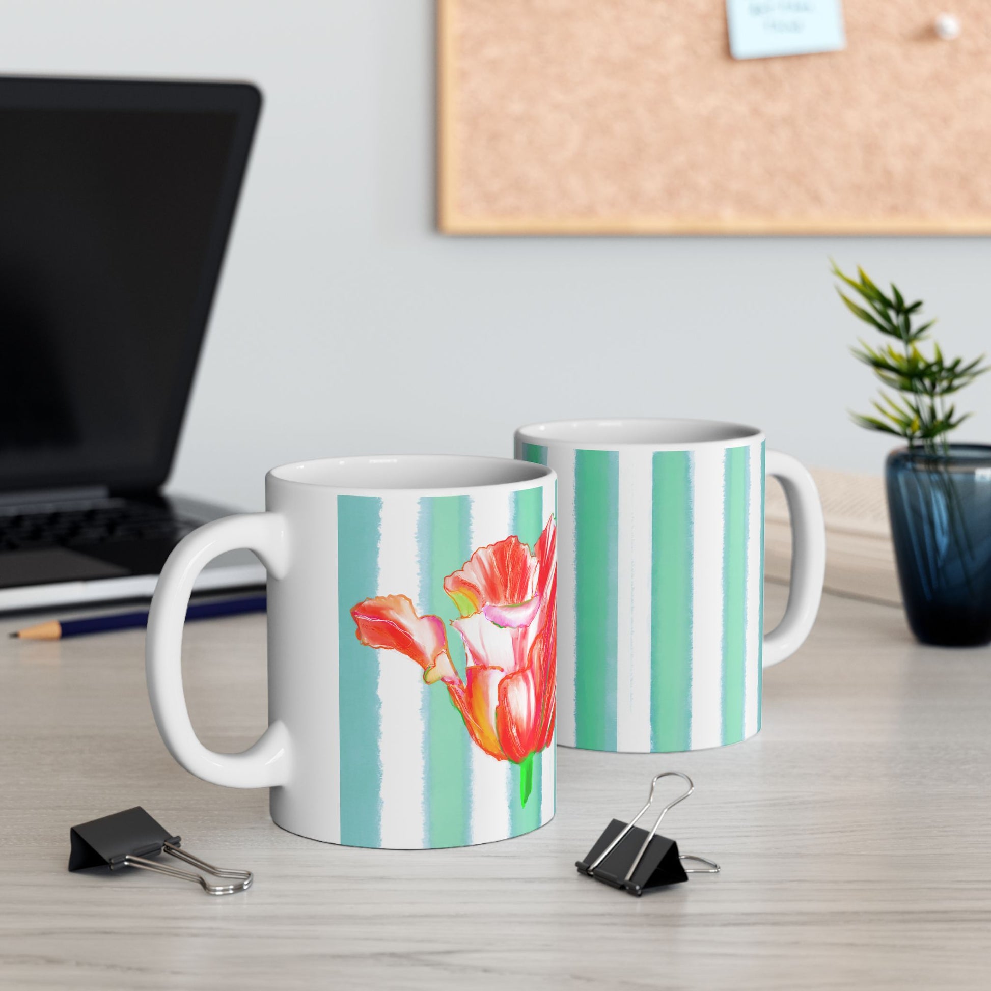 š· Periwinkles Design ā āStripes & Tulipsā Ceramic Mug