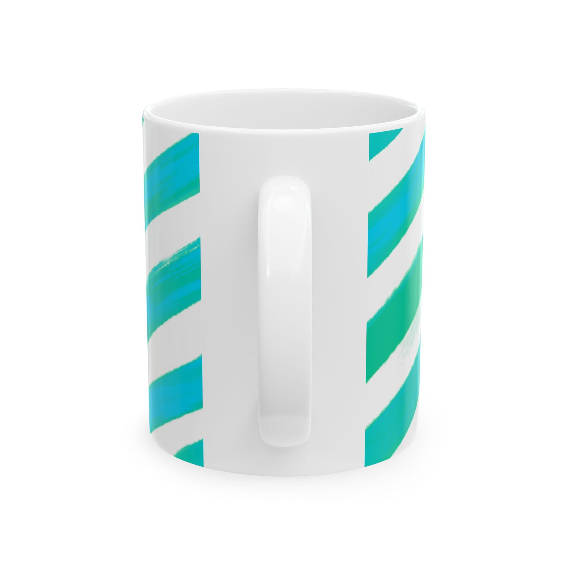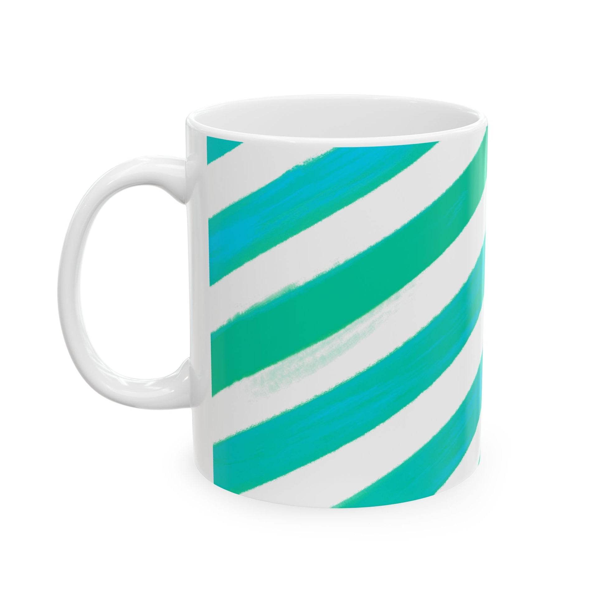 Diagonal Stripe Ceramic Mug in Aqua Green, 11oz