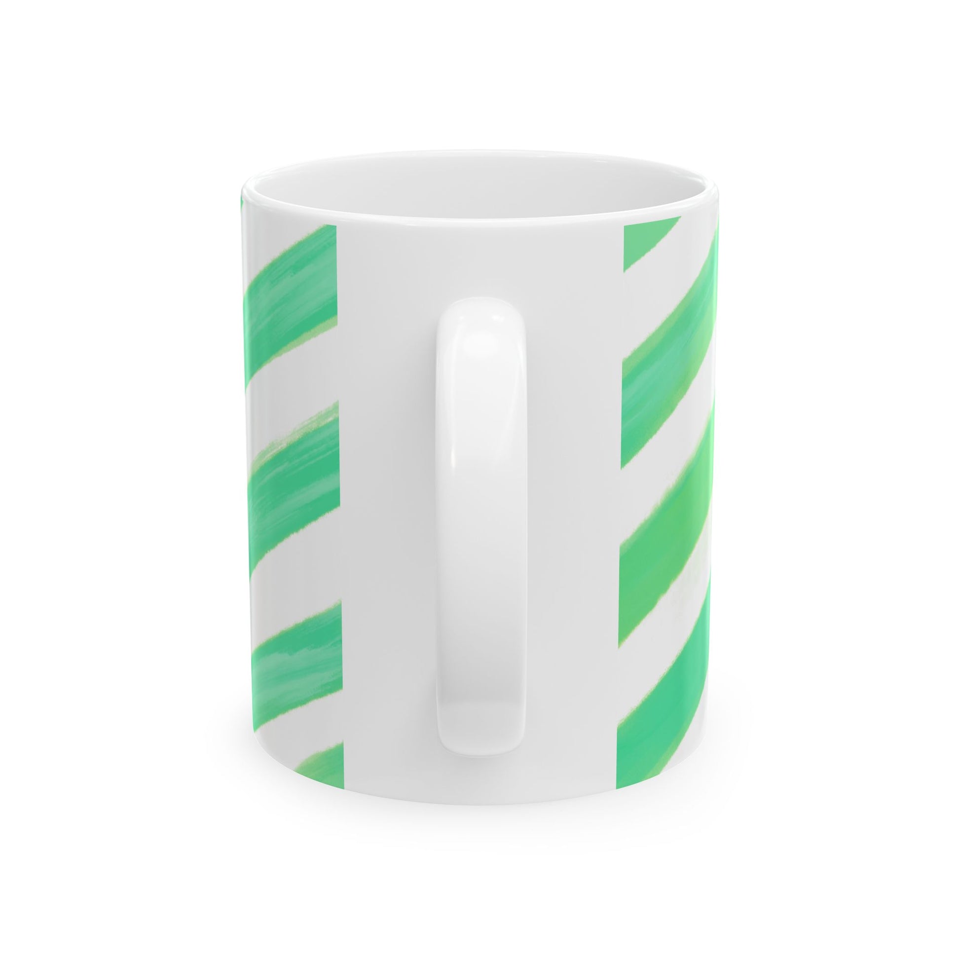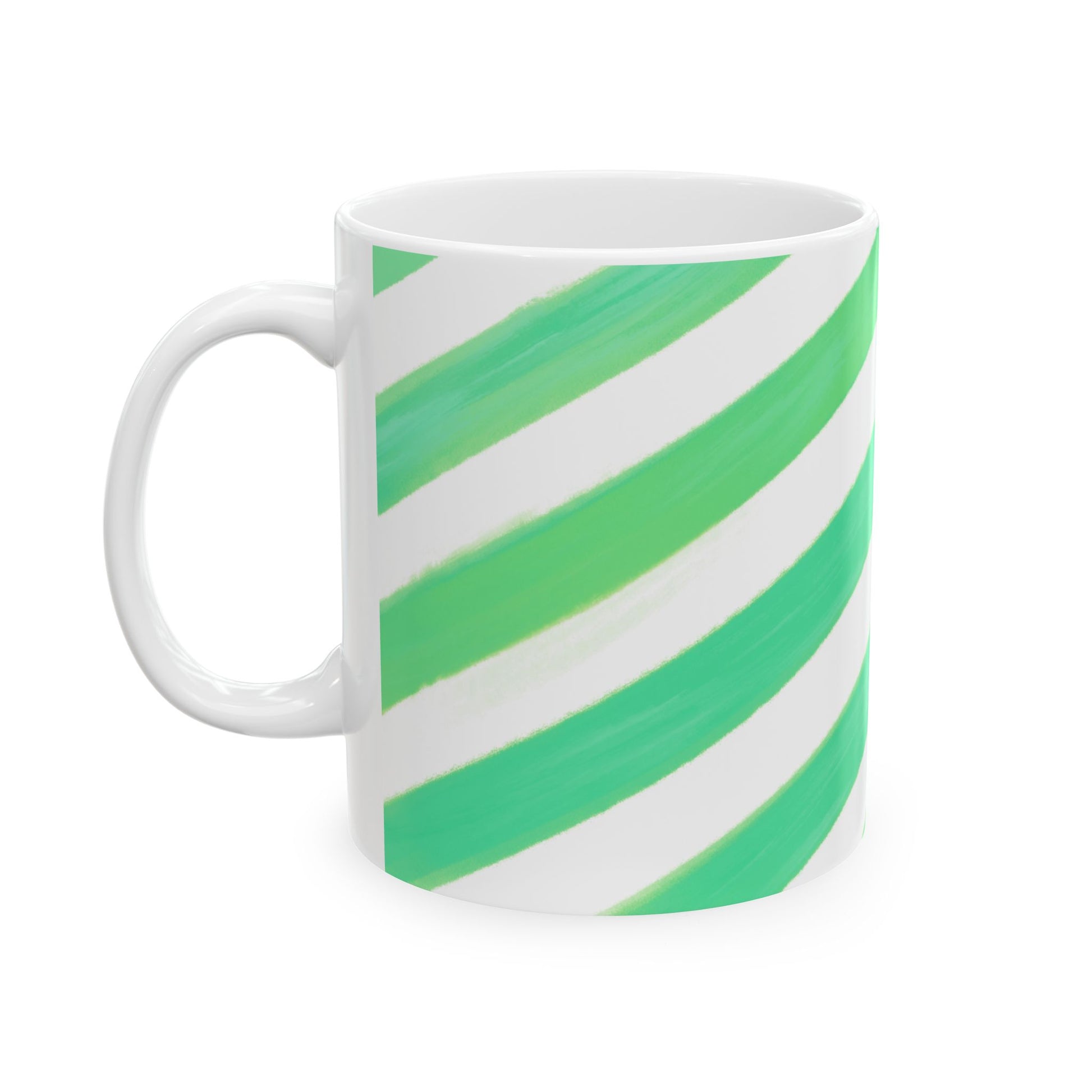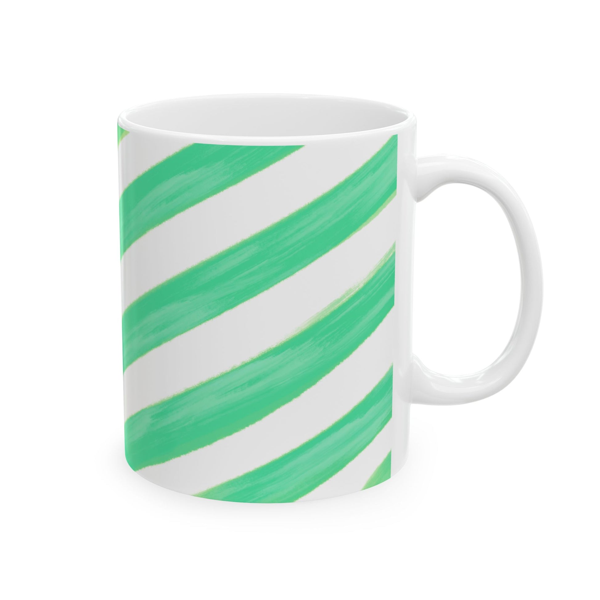 Diagonal Stripe Ceramic Mug in Fresh Green, 11oz