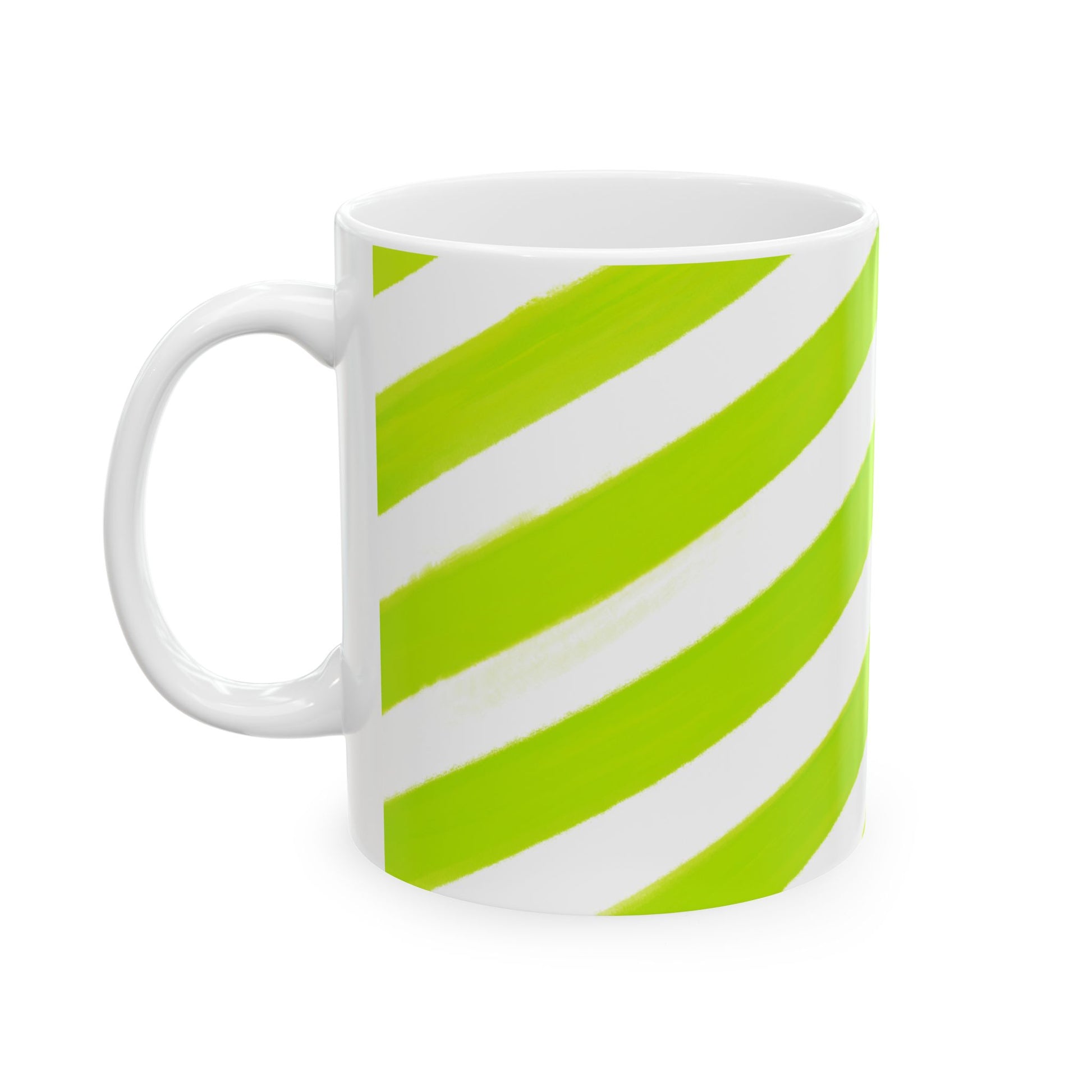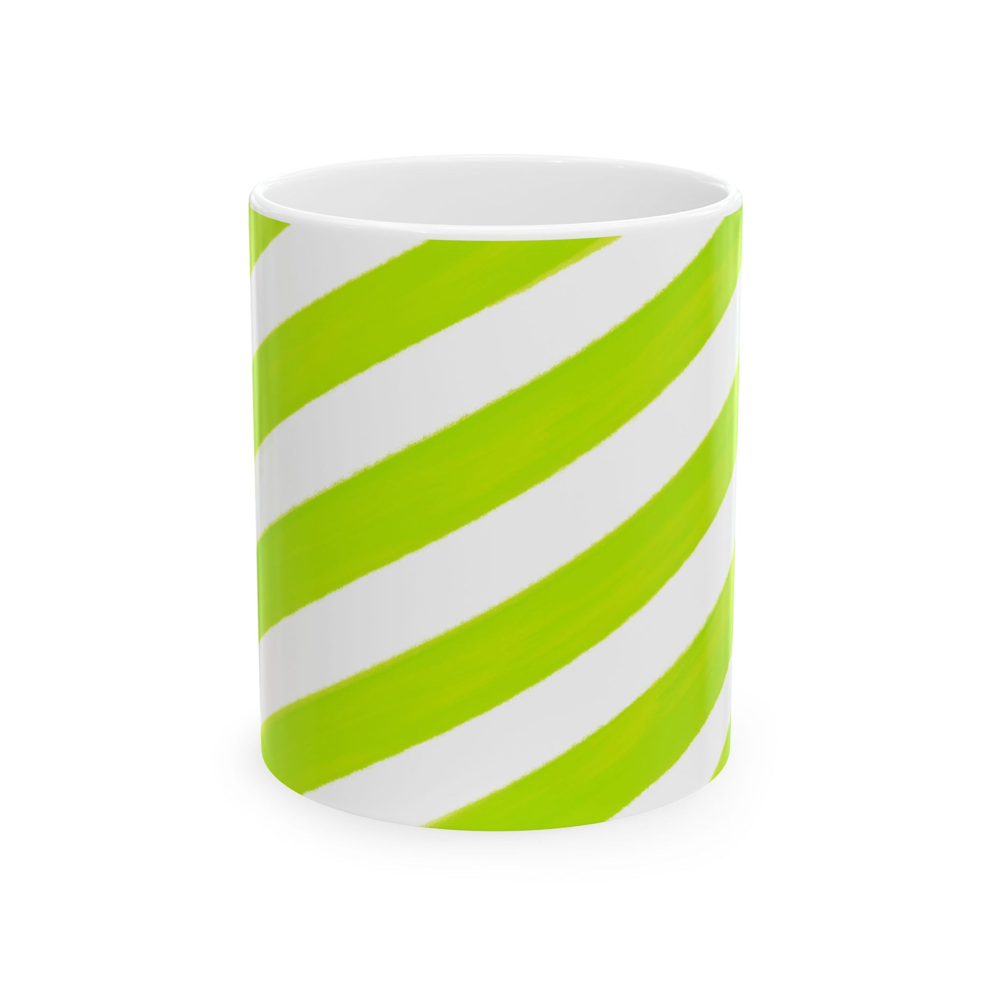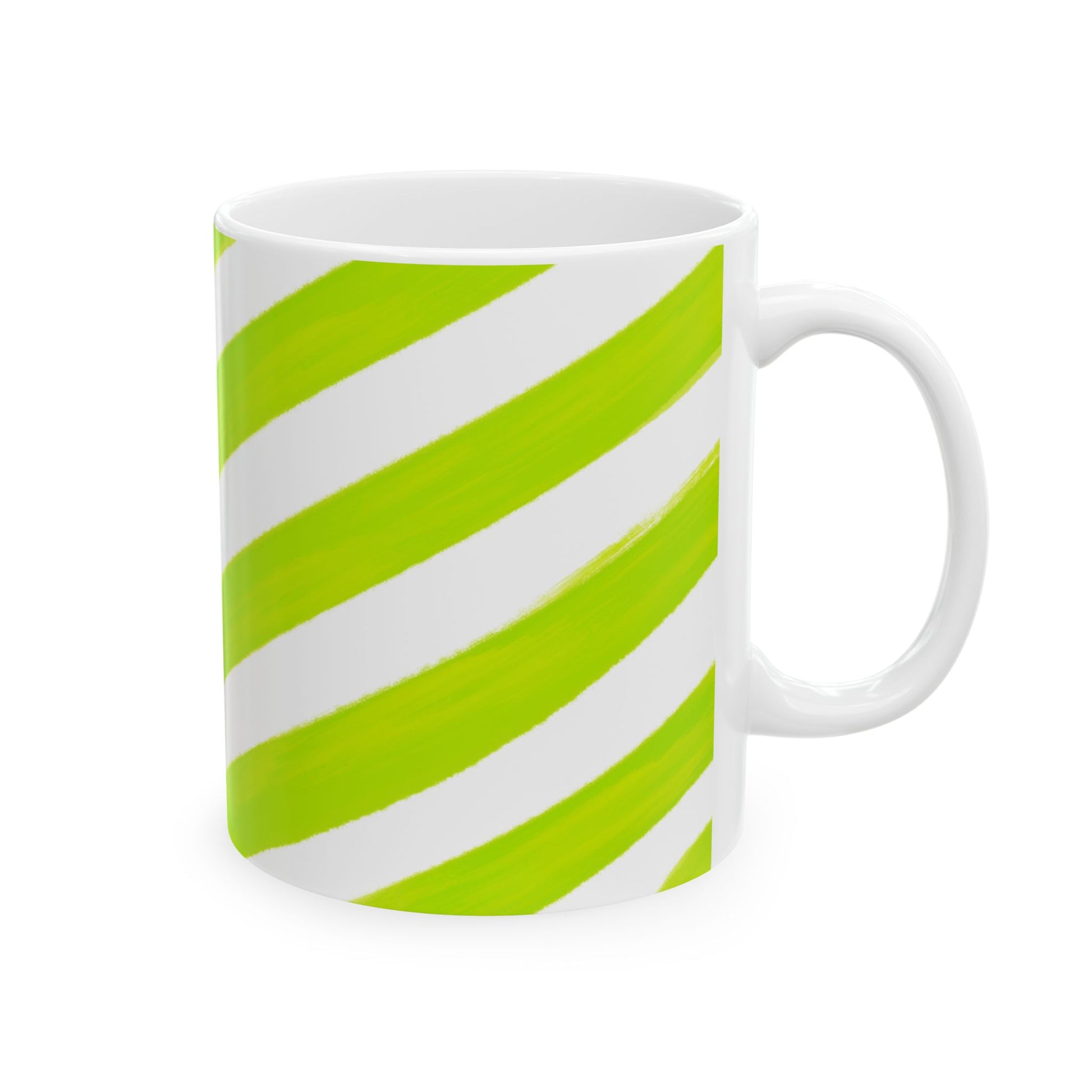 Diagonal Stripe Ceramic Mug in Lime Green, 11oz