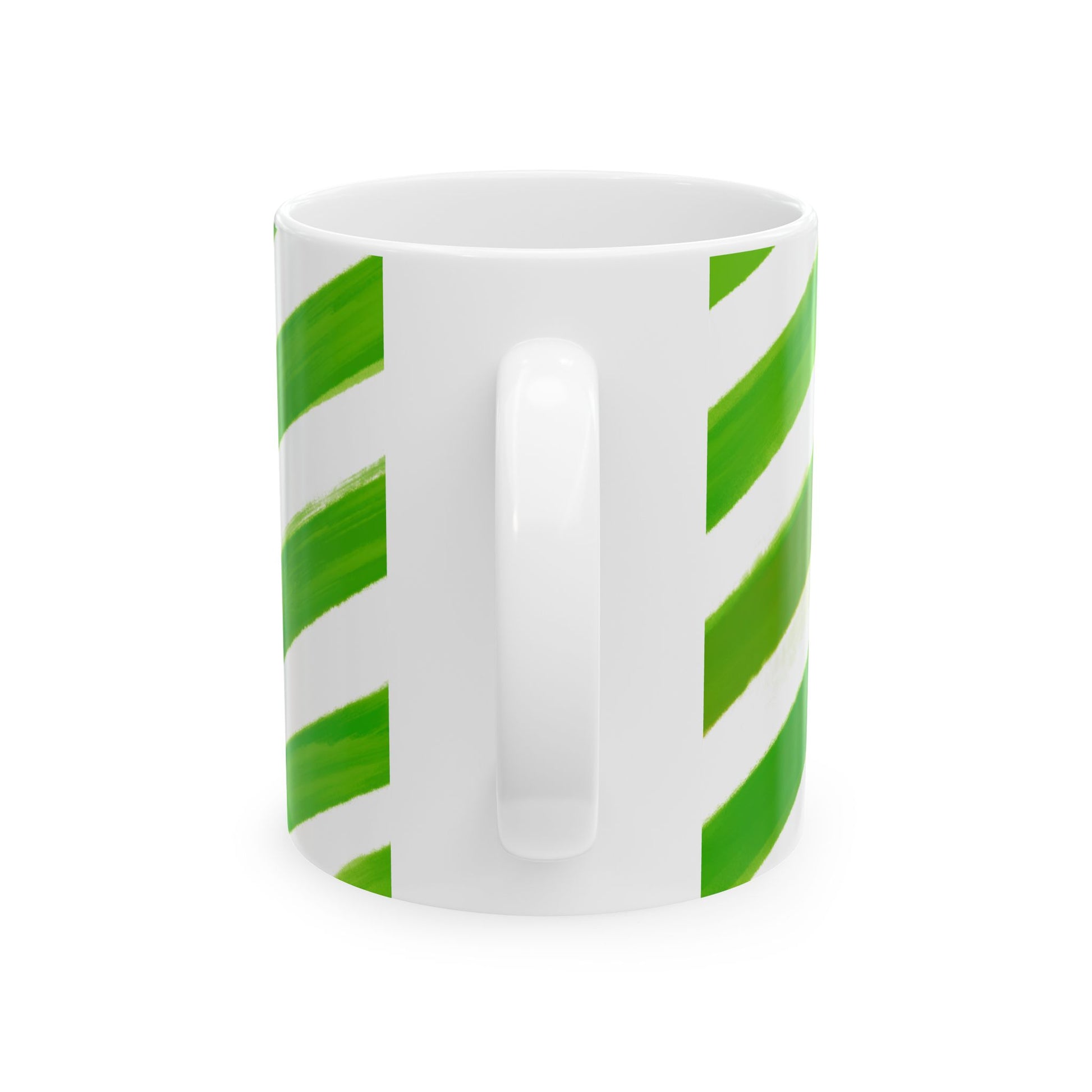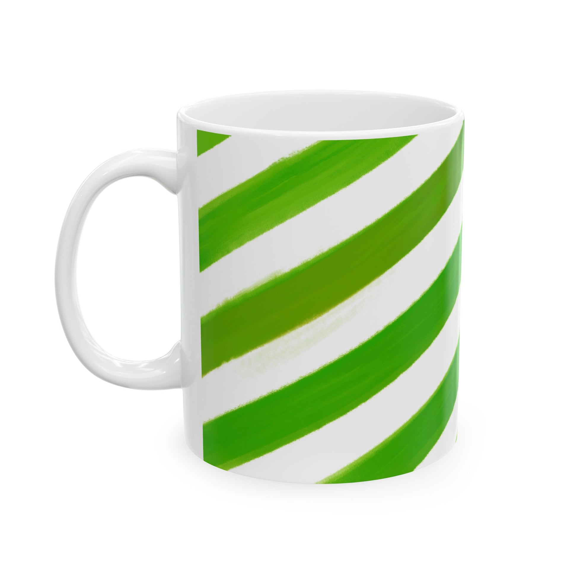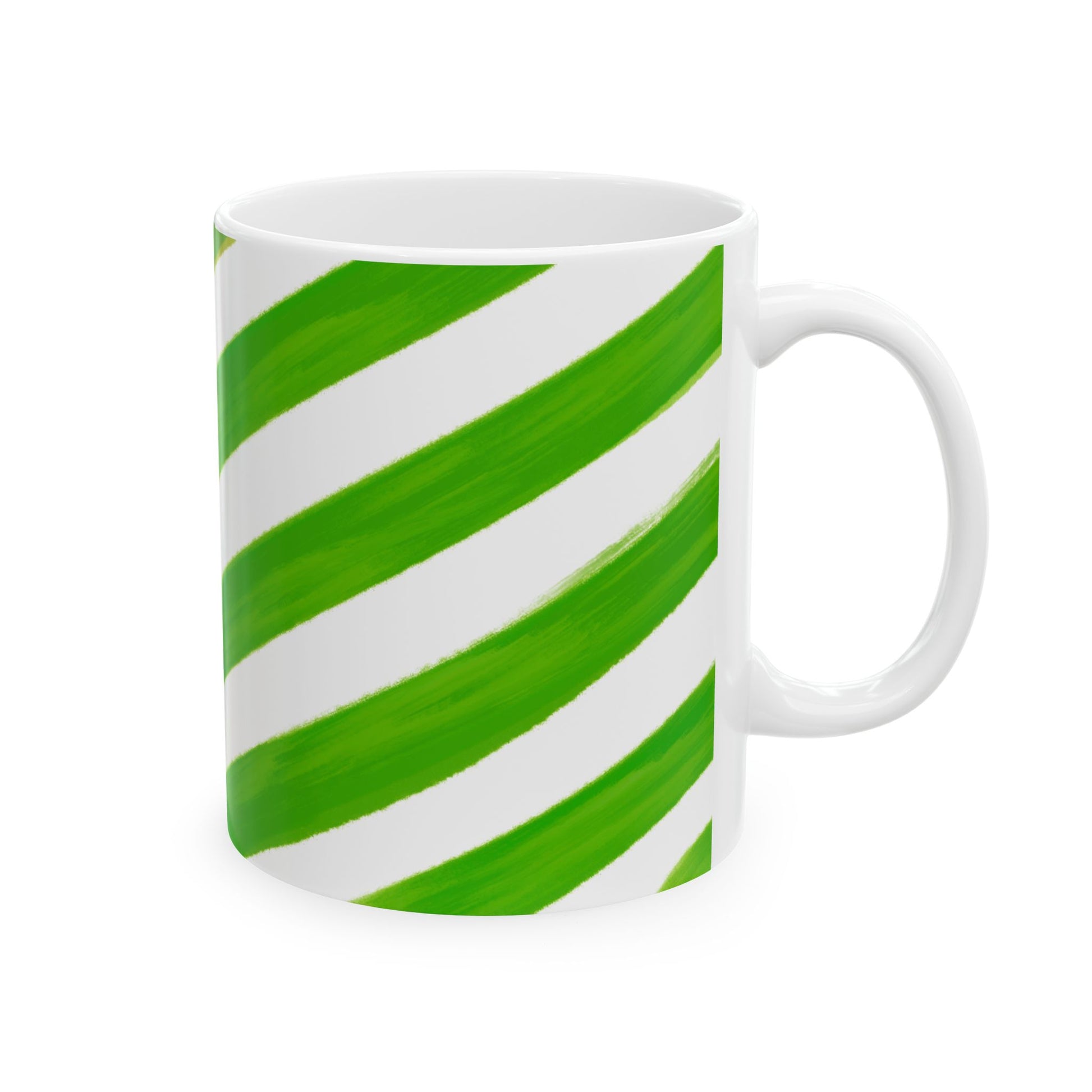 Diagonal Stripe Ceramic Mug in Medium Green, 11oz