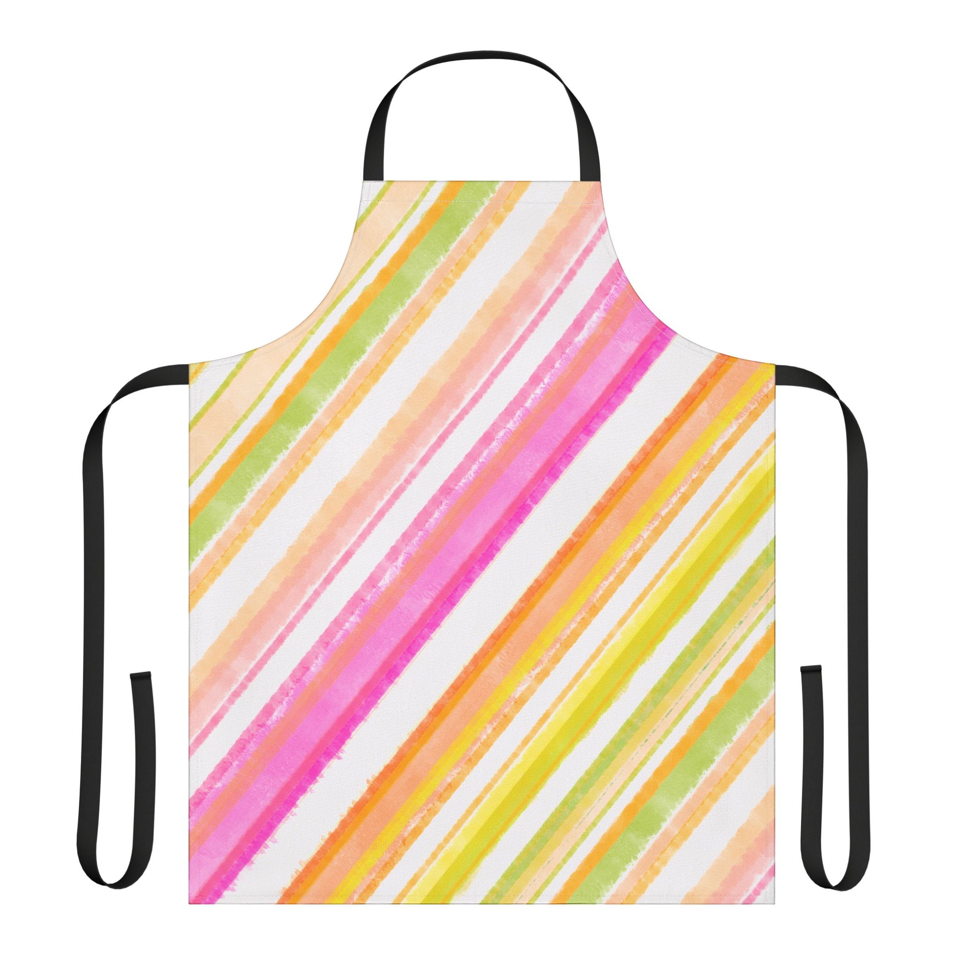 🎨 Periwinkles Design – “Joyful Stripes” Apron: Colorful Charm for the Kitchen Host 💛🍽️