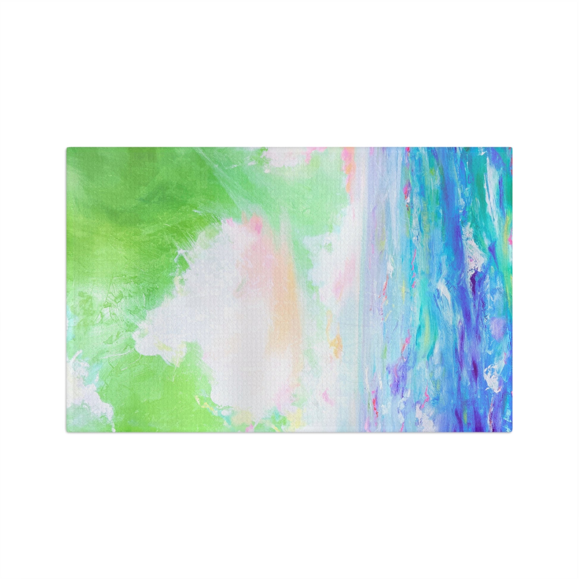 These tea towels, featuring original art by Laurie Hoogland for Periwinkle Design, capture the beautiful joy of a colorful sky reflected on joyful waters. Both functional and artful, they make everyday tasks brighter and more inspiring. Made from a premium blend of 85% micro-polyester and 15% polyamide, these towels are durable, quick-drying, and soft to the touch—ideal for drying dishes or adding a vibrant accent to your kitchen décor.