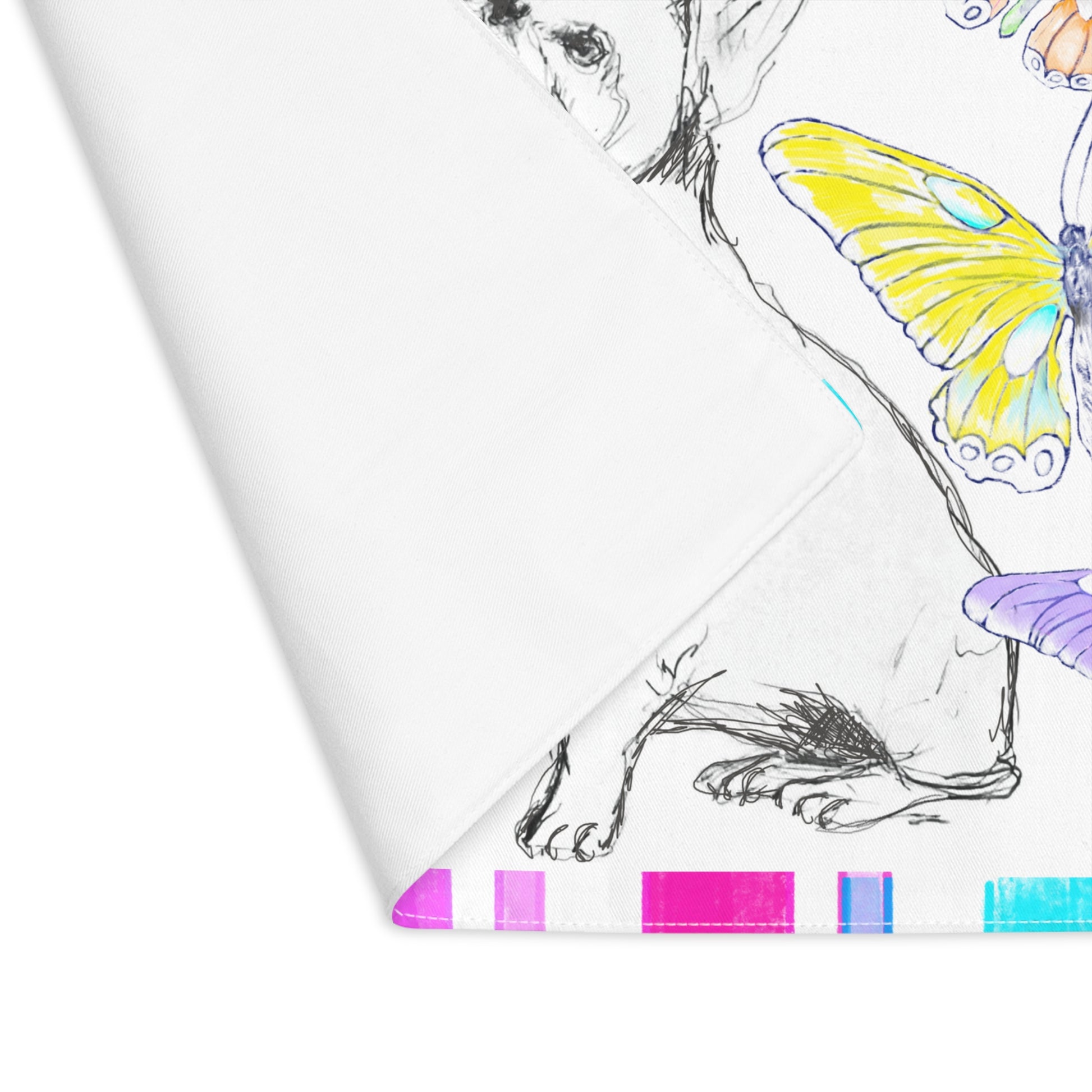 Calling all dog lovers and color enthusiasts—set your table with joy! These charming placemats, featuring Laurie’s delightful sketches of her granddogs and Joel’s fluttering butterflies, are little works of art made to spark smiles at every meal. Whether you're hosting a cheerful potluck, sharing a cozy breakfast, or simply wanting to brighten up your everyday table, these cotton placemats bring a playful spirit and heartfelt warmth to your home.