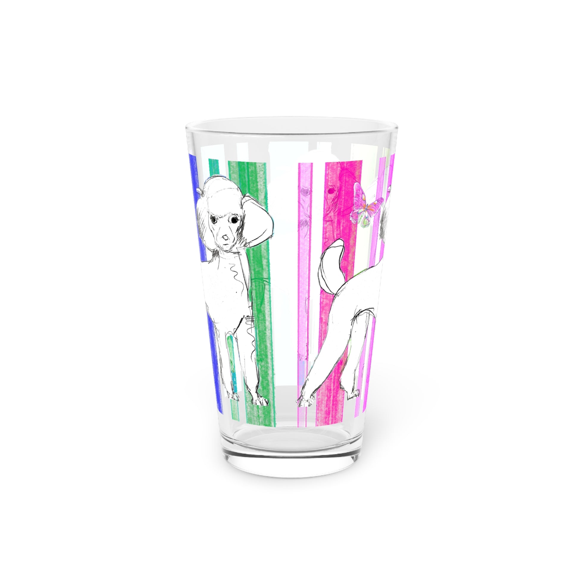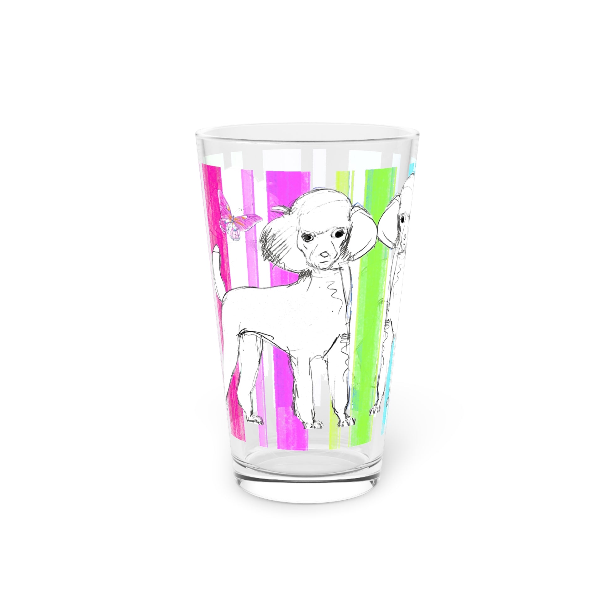 Dogi Butterfly Flutter Pint Glass in Multi-color, 16oz. Poodle