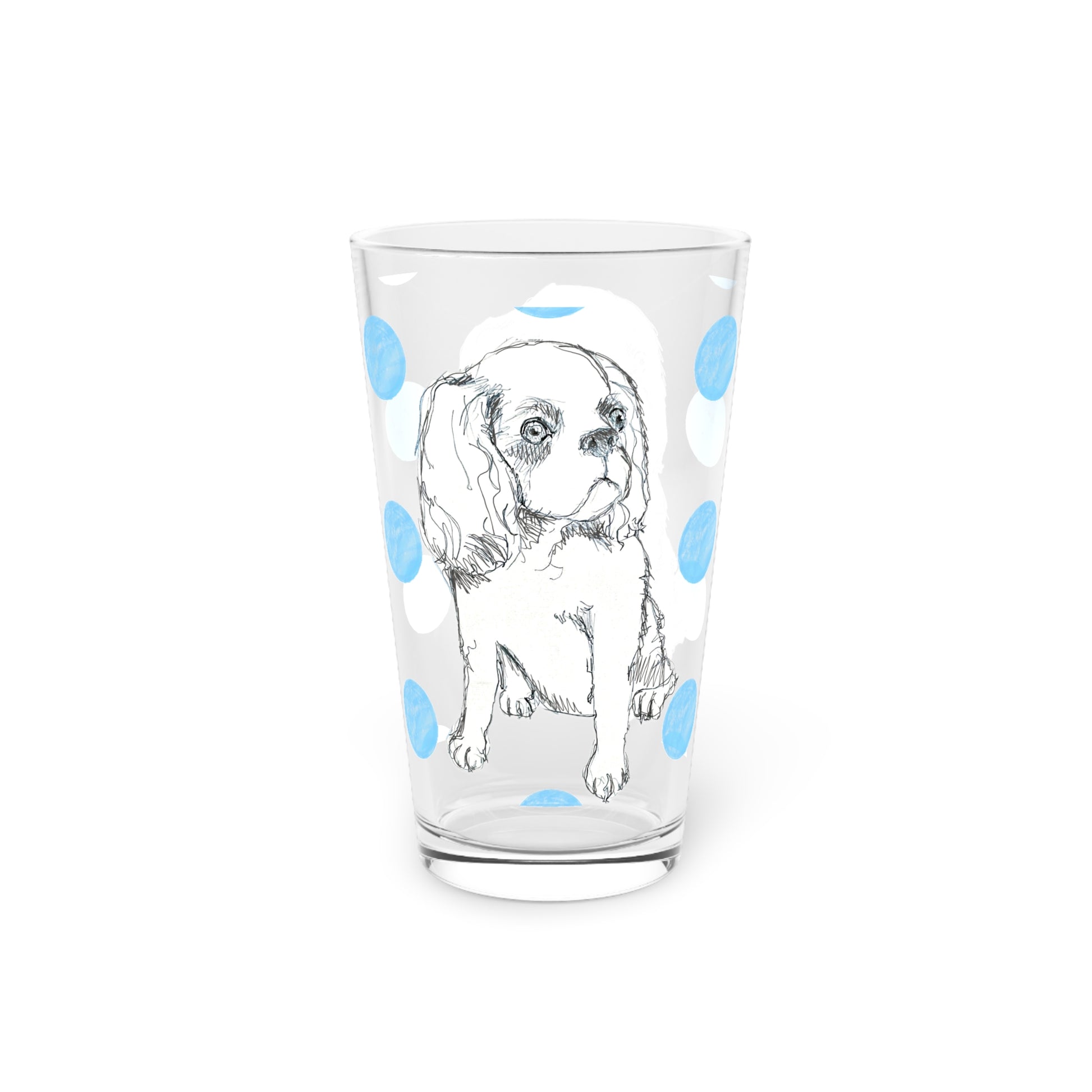 Dogi Fun and Polka Dots Pint Glass in Aqua, Cocker Spaniel, 16oz