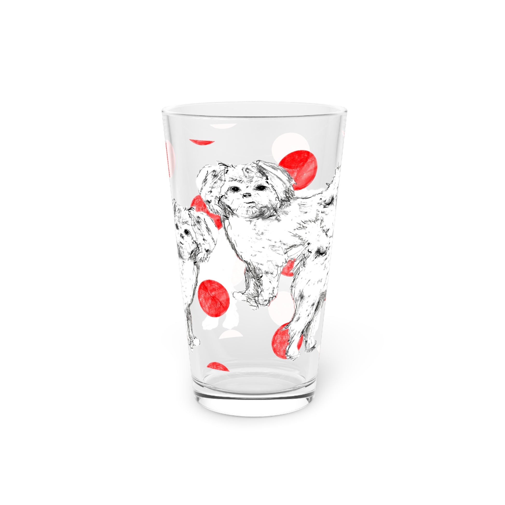 Dogi Fun and Polka Dots Pint Glass in Red, Shih Tzu, 16oz