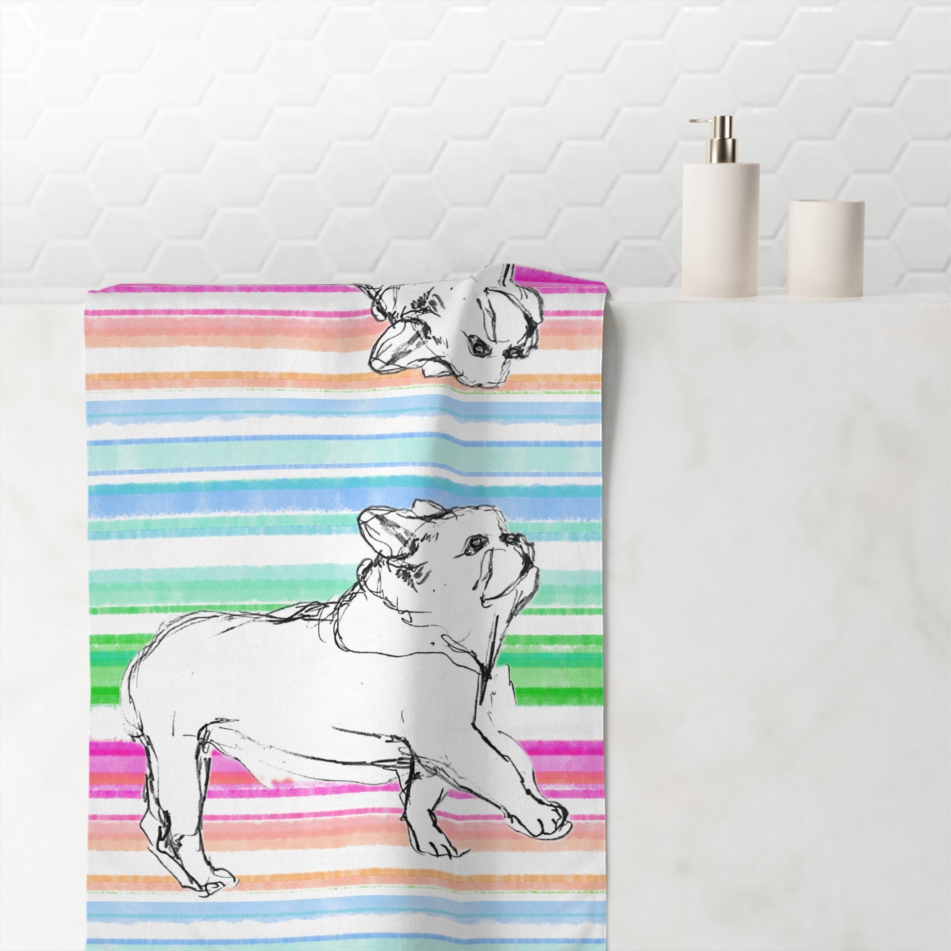 Dogi Fun, Bulldog with stripe Mink-Cotton Towel