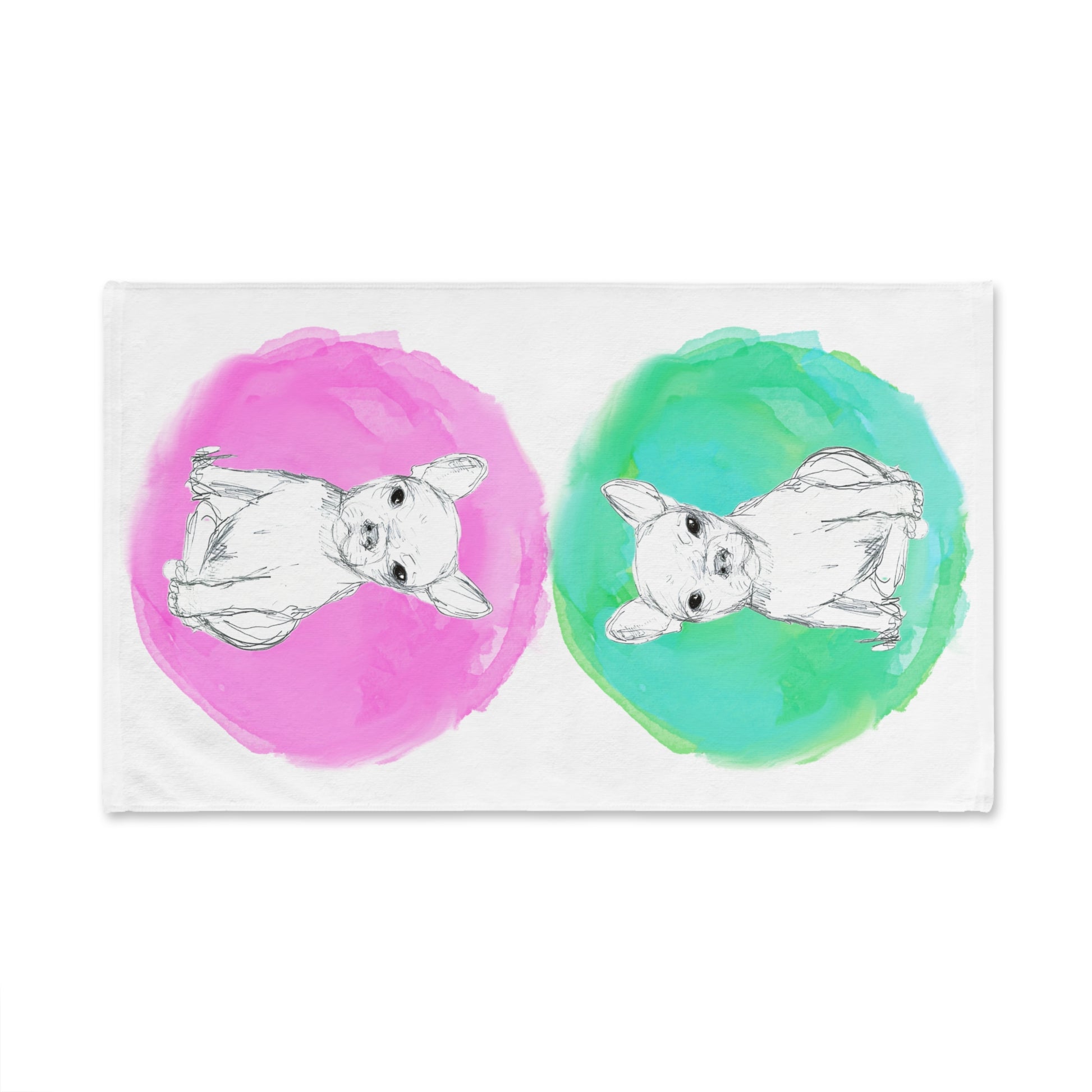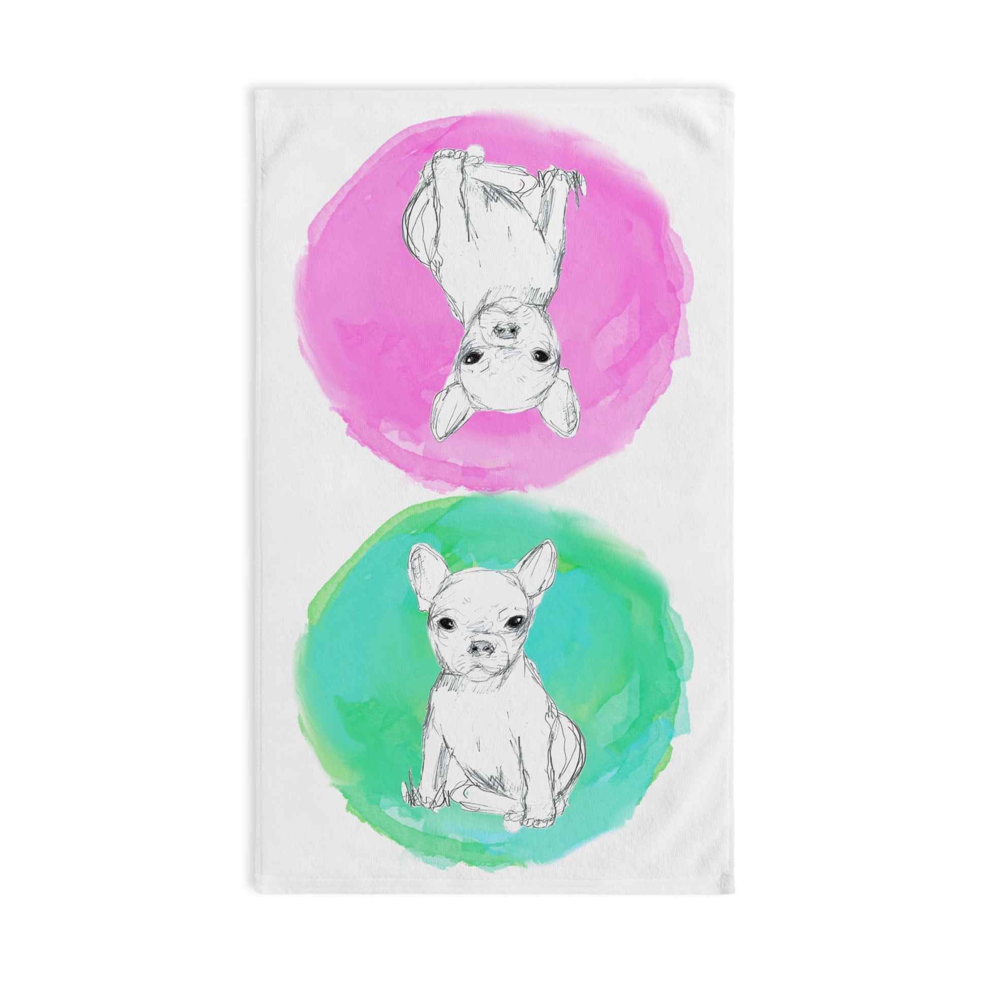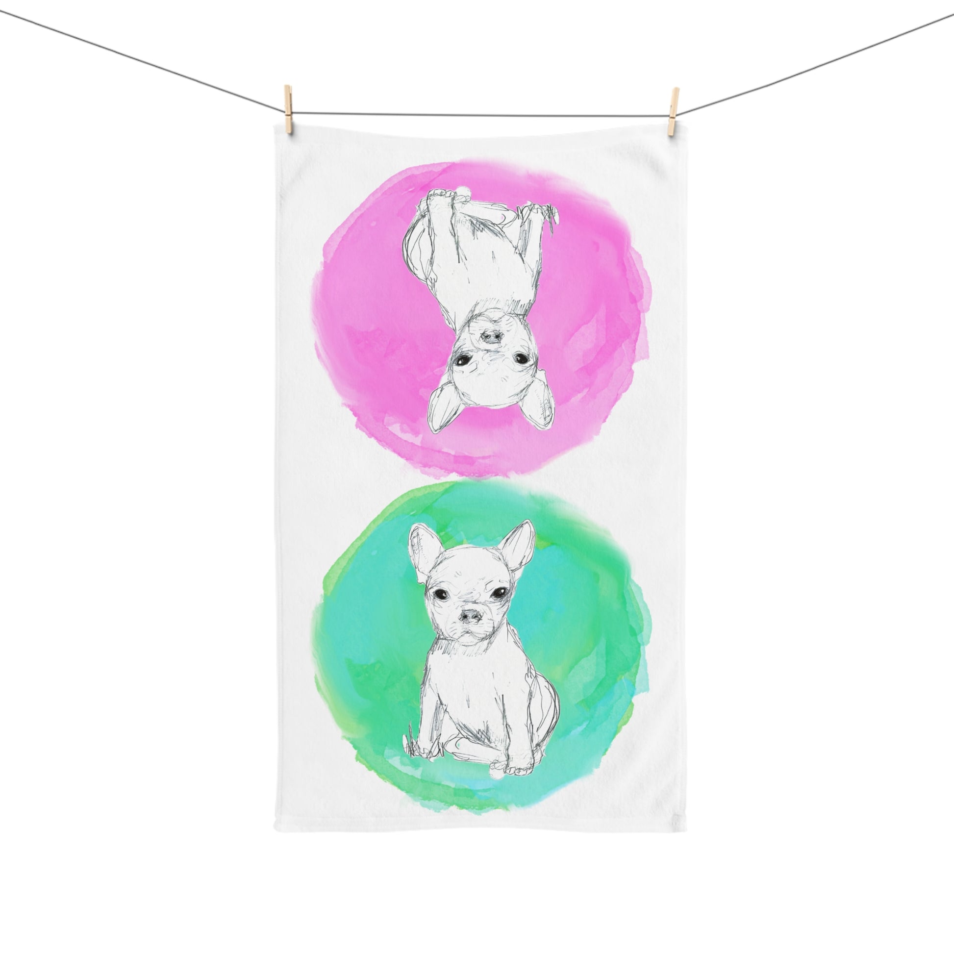 Dogi Fun Circles and Chihuahuas Hand Towel in Raspberry and Aqua-Green