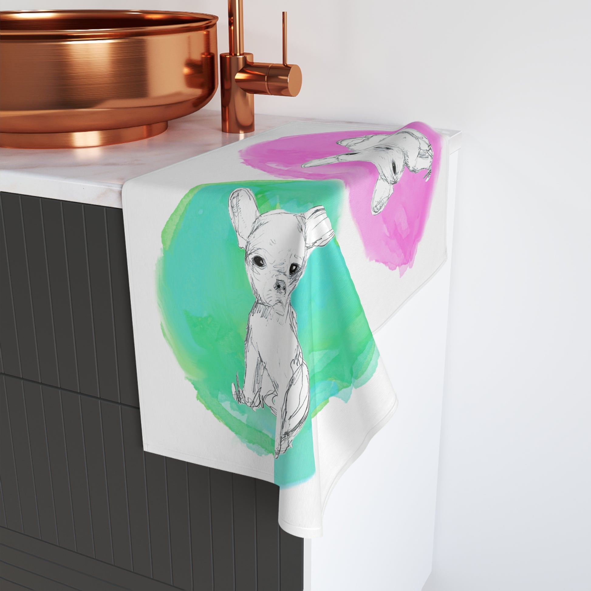 Add a playful pop of personality to your space with this whimsically hand-drawn towel from Periwinkles Design! Perfect for dog lovers and art enthusiasts alike, this versatile and artsy towel blends color, creativity, and practicality into one delightful piece. Whether you're drying dishes, brightening up your bathroom, or looking for a fun housewarming gift, this towel is a charming addition to any home.