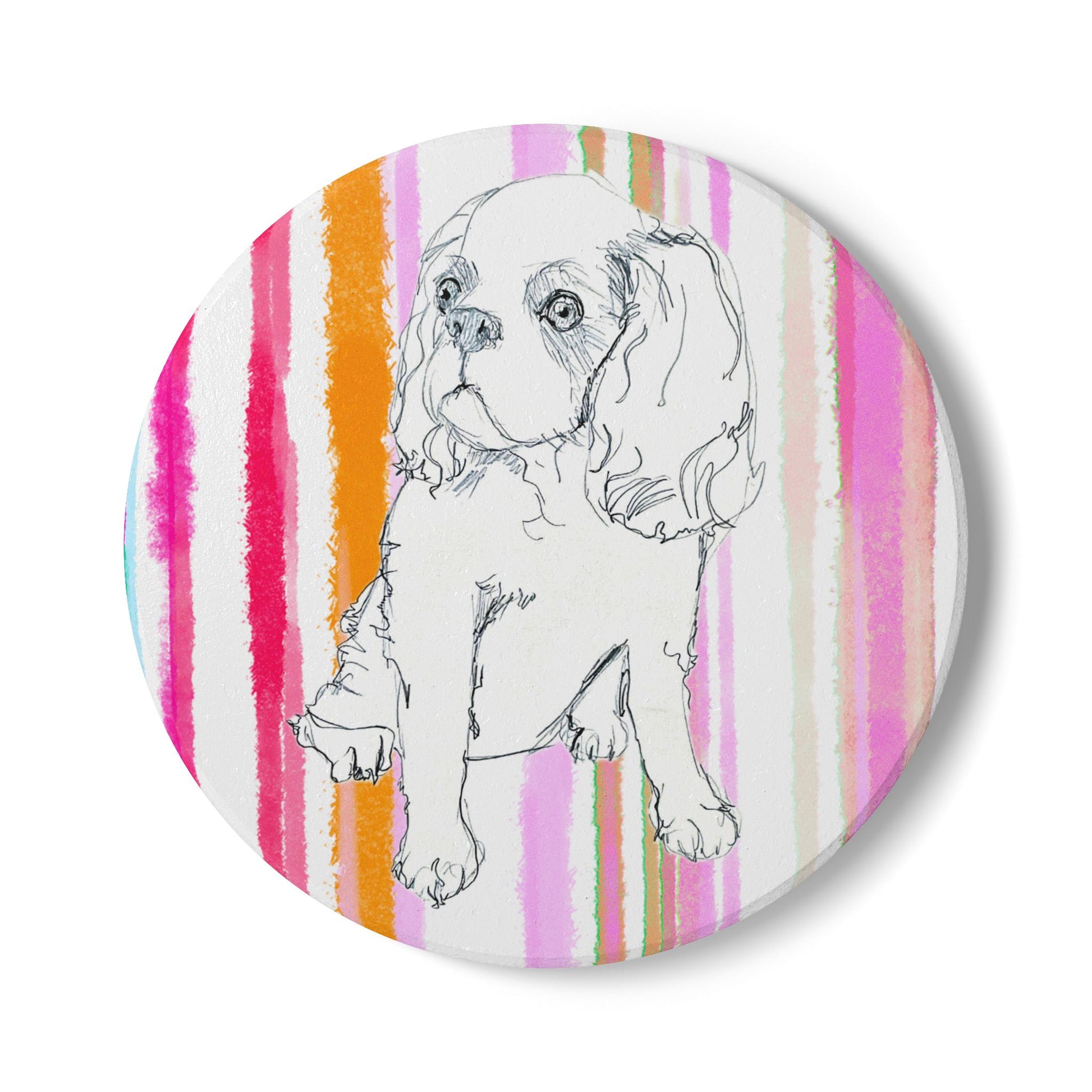 Dogi Fun Cocker Spaniel Doggie Ceramic Coaster in Multi-stripes