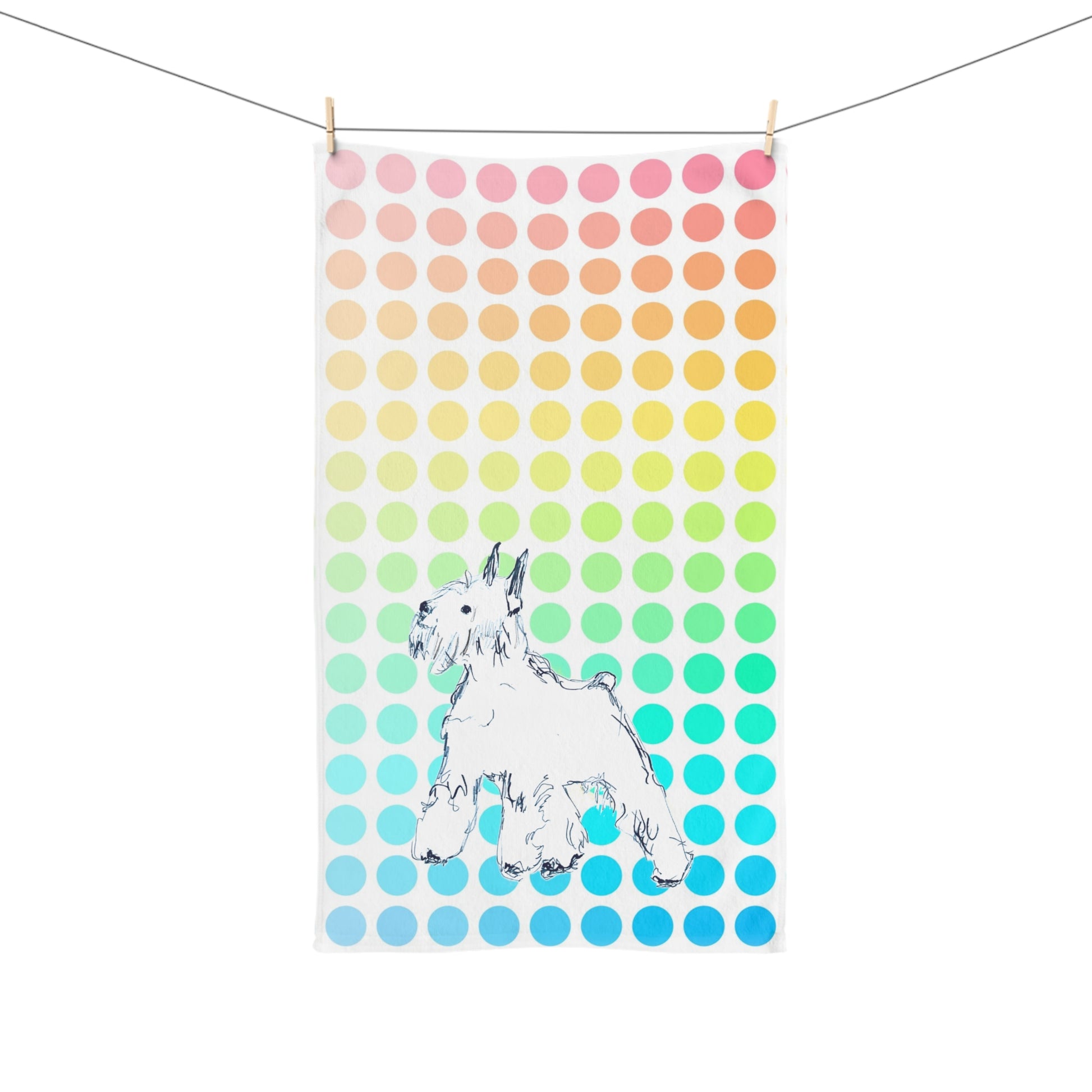 Dogi Fun Hand Towel, Schnauzer with Multi-Color Polka Dots