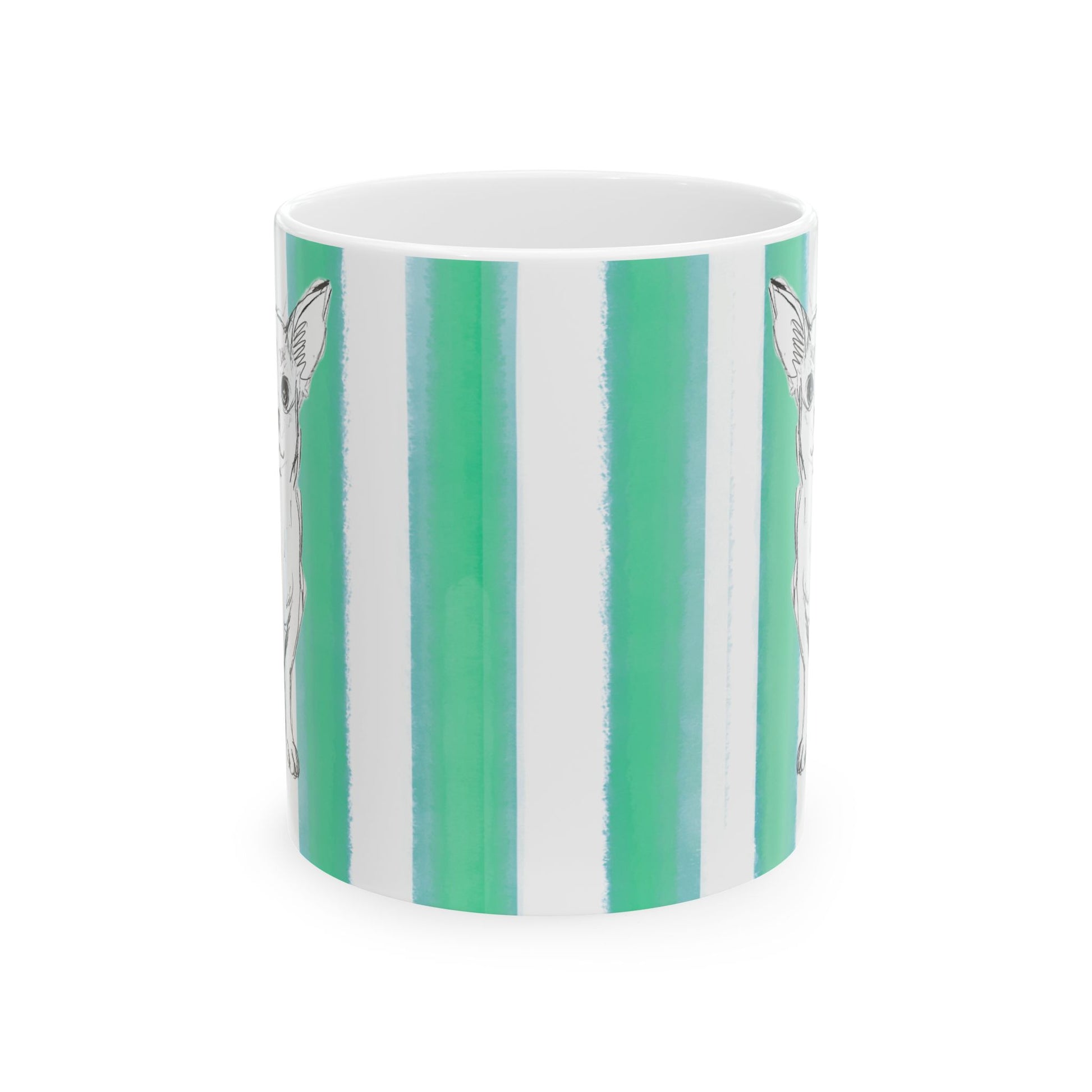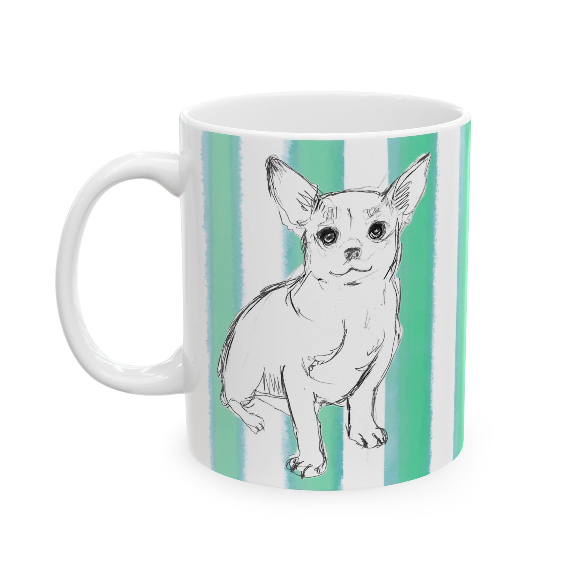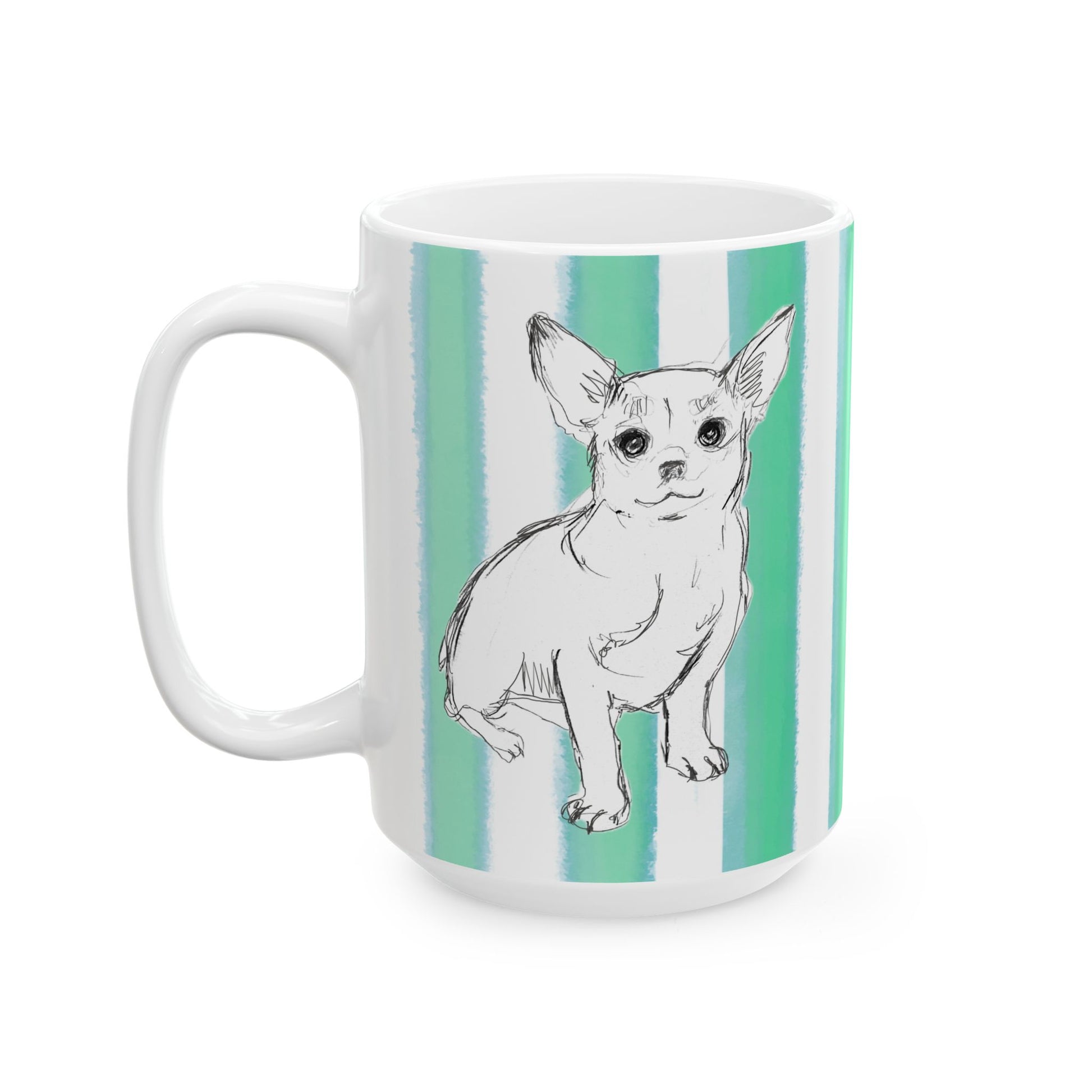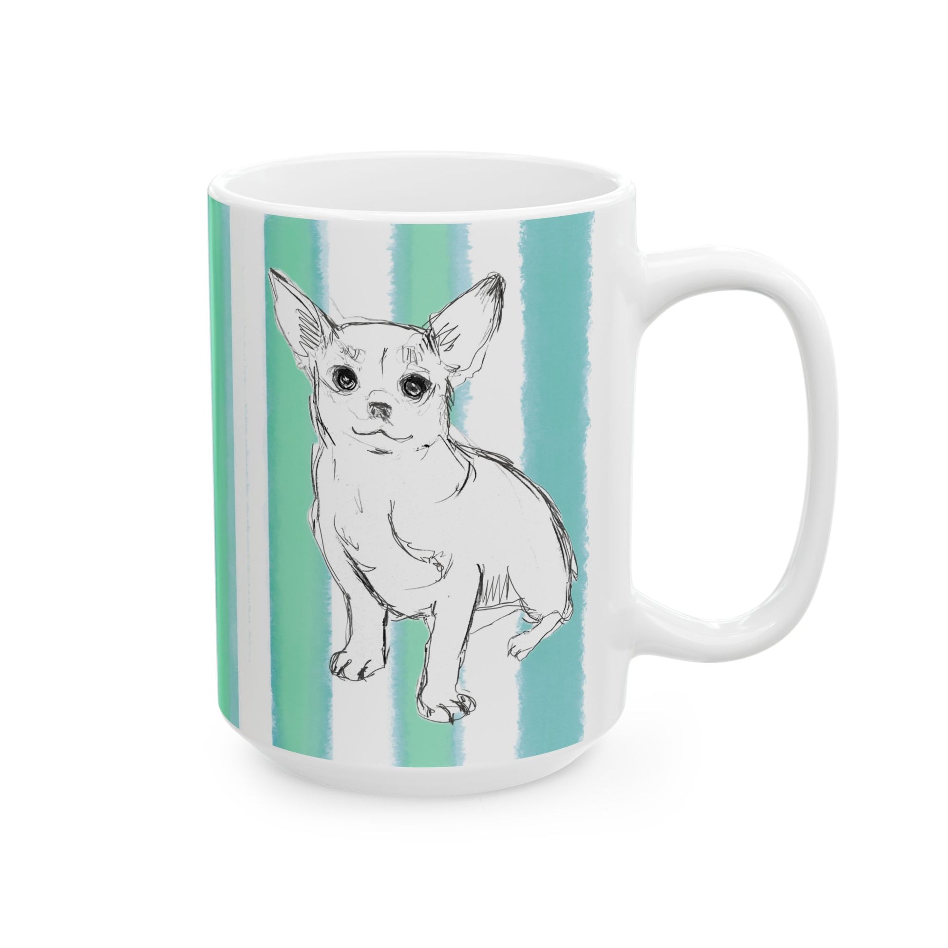 Start your day with more than just a warm drink—start it with a burst of color and the company of a very special pup. These beautifully printed ceramic mugs from Periwinkles Design feature Laurie's art and hand-watercolored rainbow stripes and the sweetest dog you’ll ever meet: Brownie, always ready to brighten your day with his happy face.