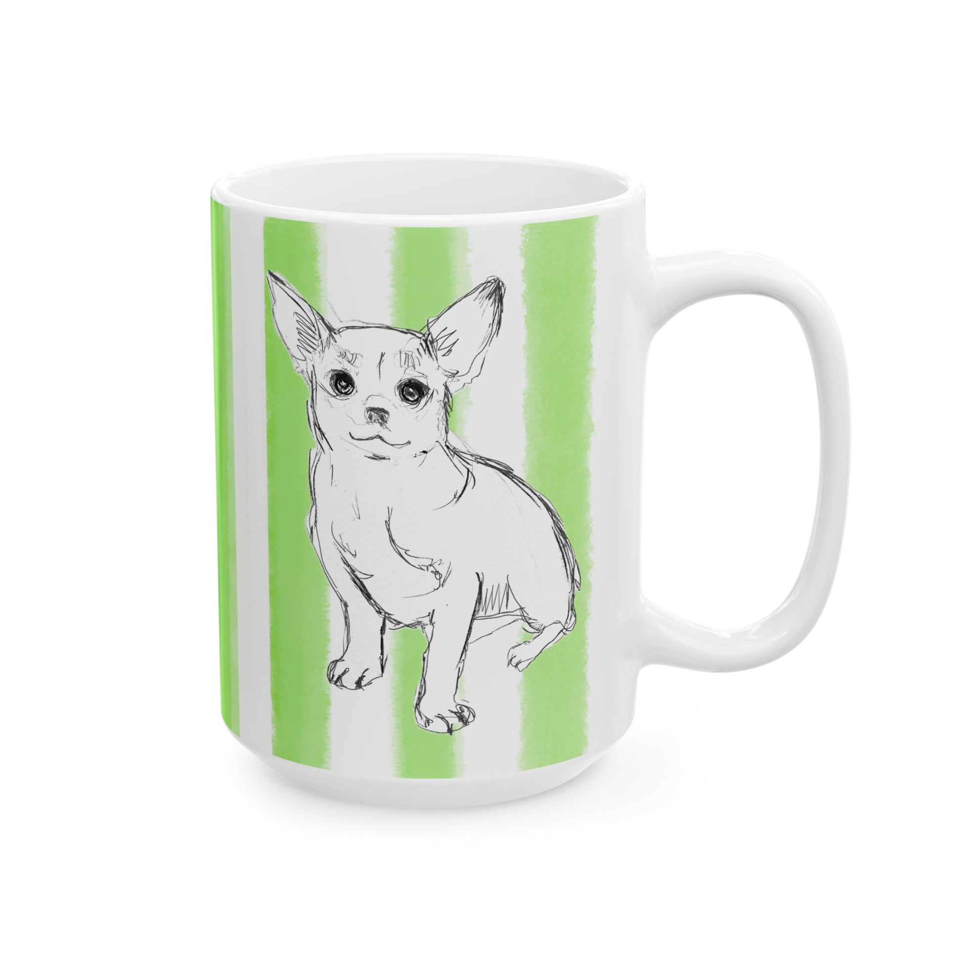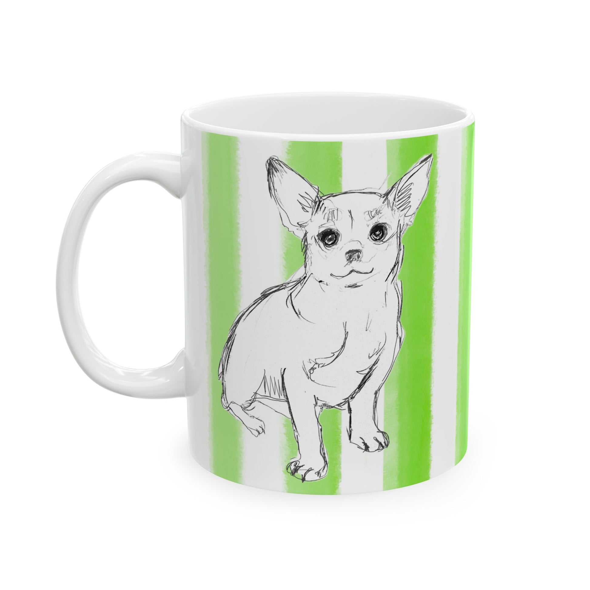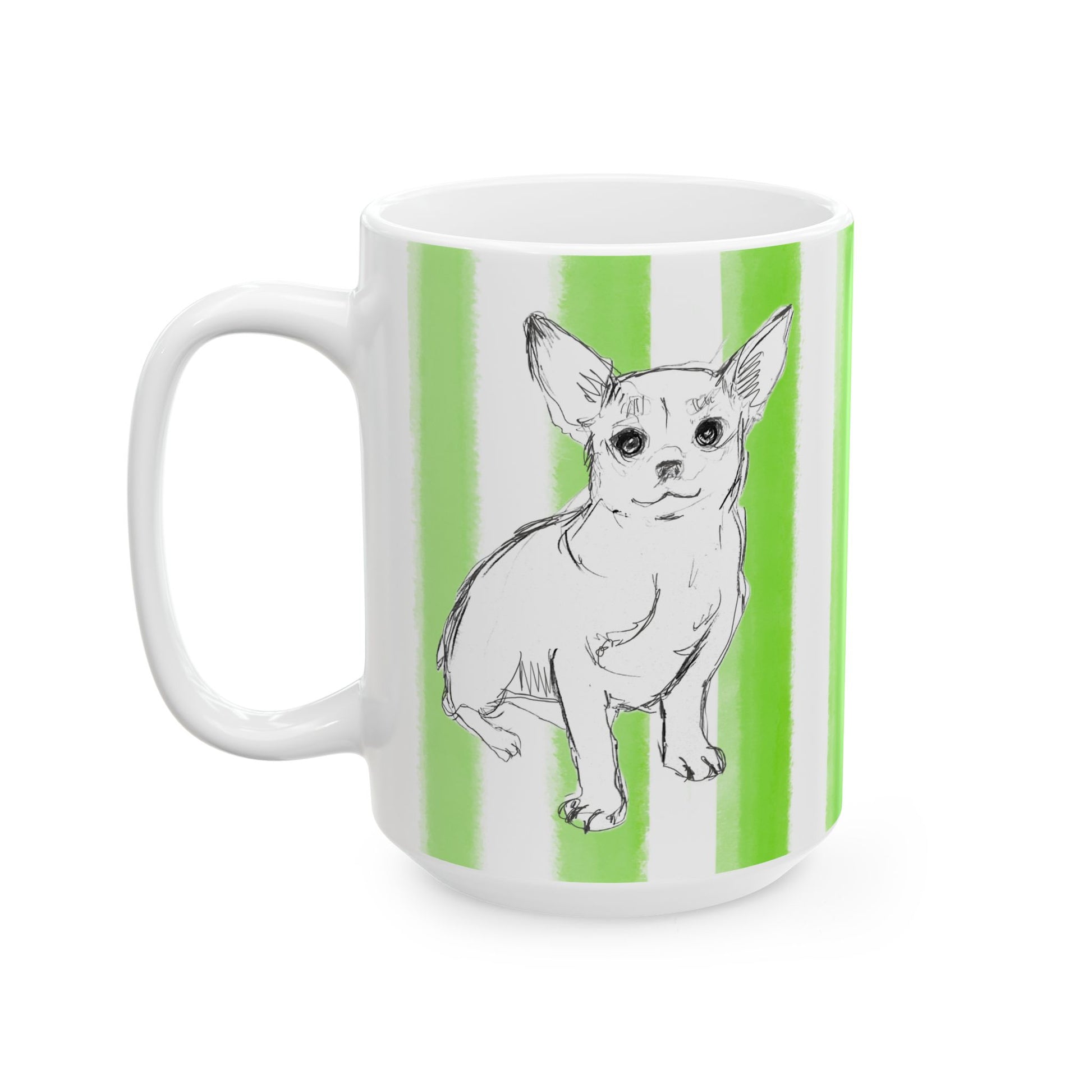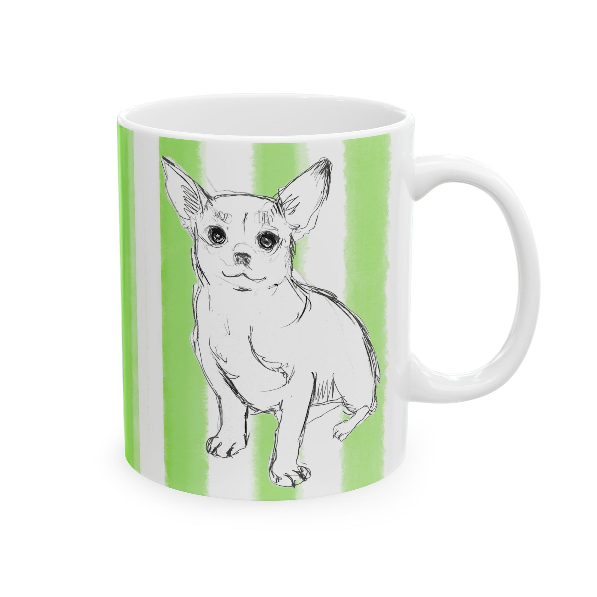Start your day with more than just a warm drink—start it with a burst of color and the company of a very special pup. These beautifully printed ceramic mugs from Periwinkles Design feature Laurie's rendering with hand-watercolored rainbow stripes and the sweetest dog you’ll ever meet: Brownie, always ready to brighten your day with his happy face.